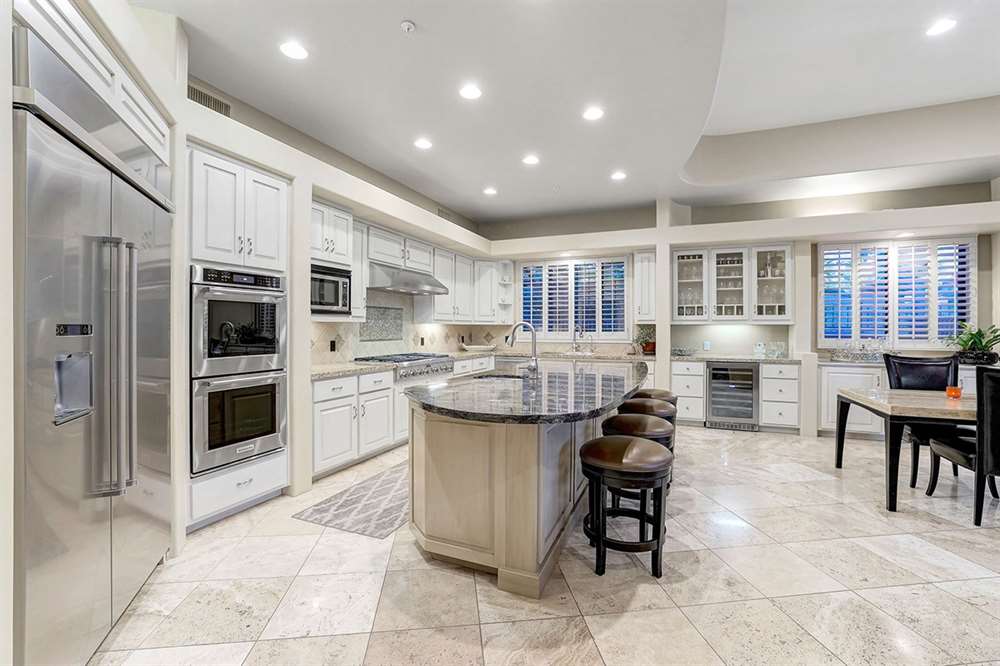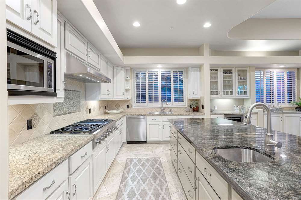 The kitchen features refinished cabinetry, center island with new cabinets and seating, bar area with wine fridge and glass display cabinets, granite counters, all new stainless steel appliances including a gas cooktop and double ovens and a charming kiva fireplace and new windows and slider in the family room. The newly painted exterior has a three car single bay side entry garage, a private courtyard, and a separate entry guest casita.