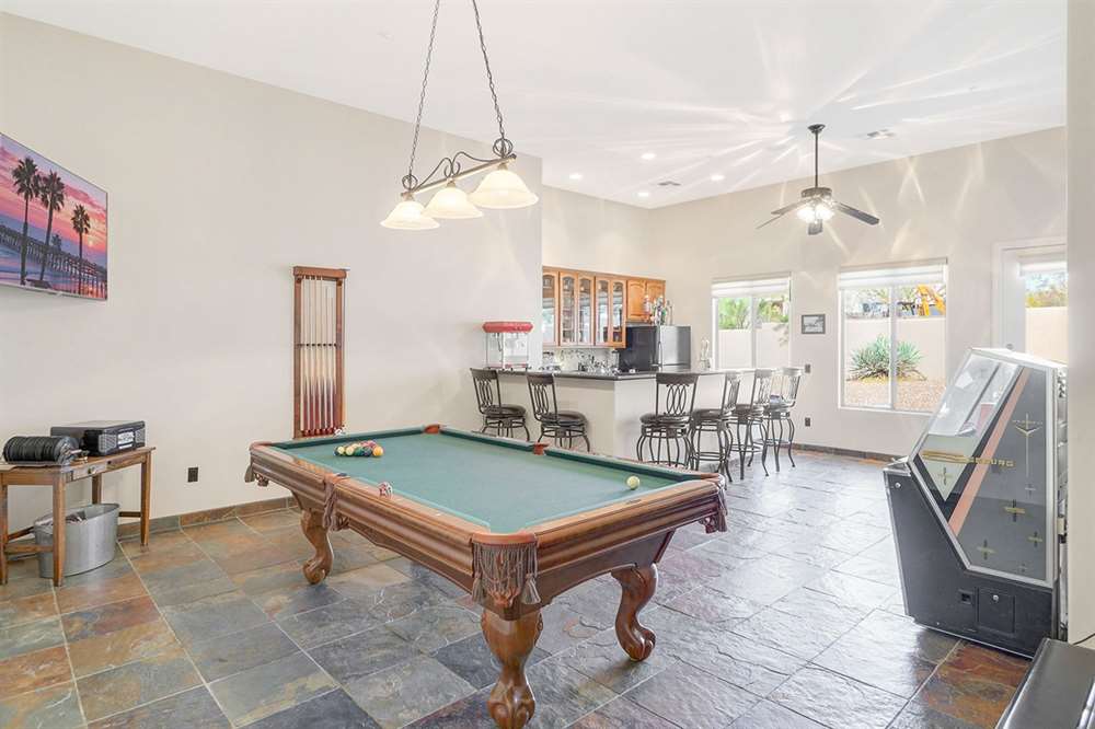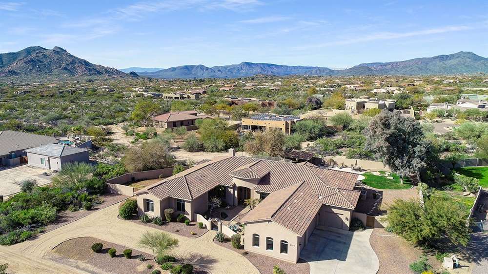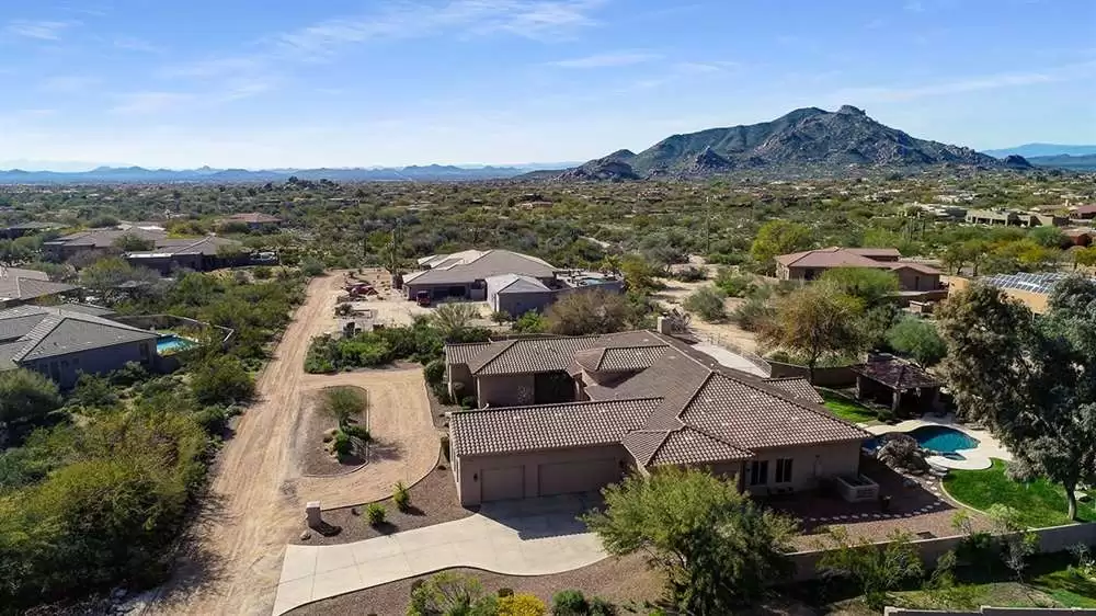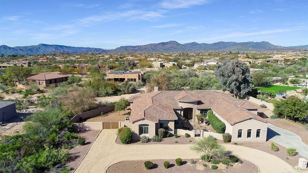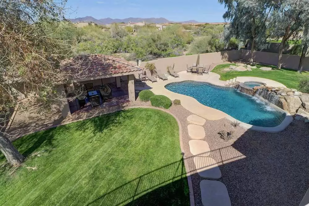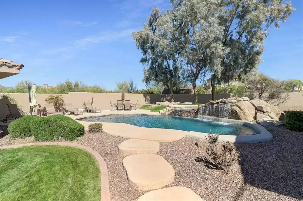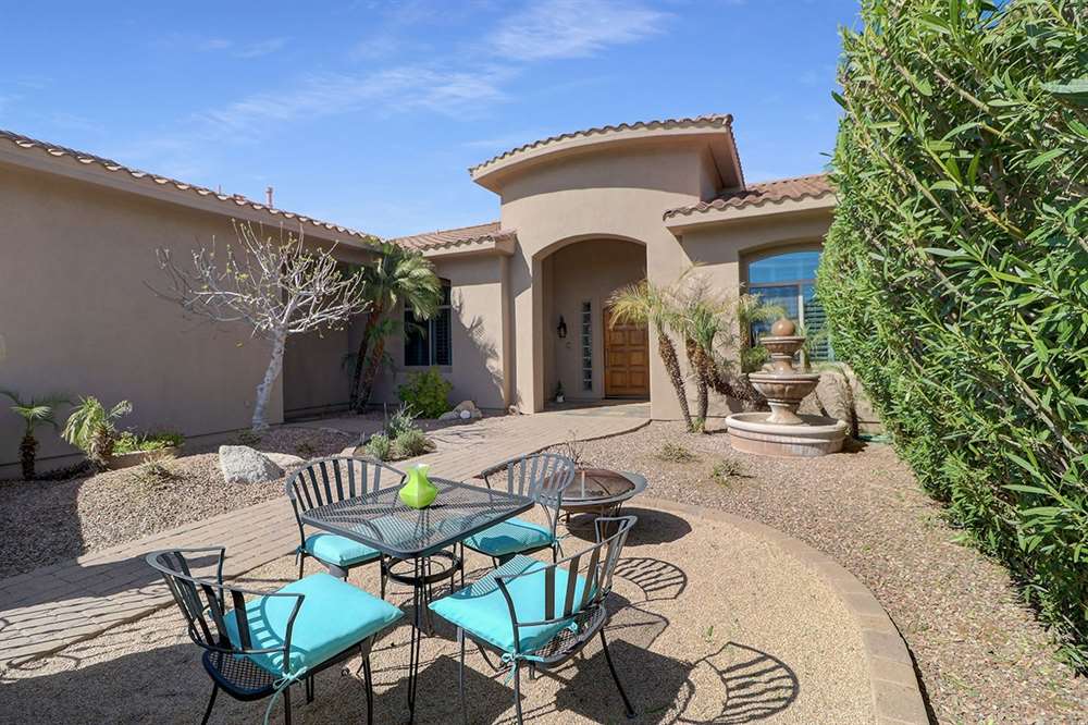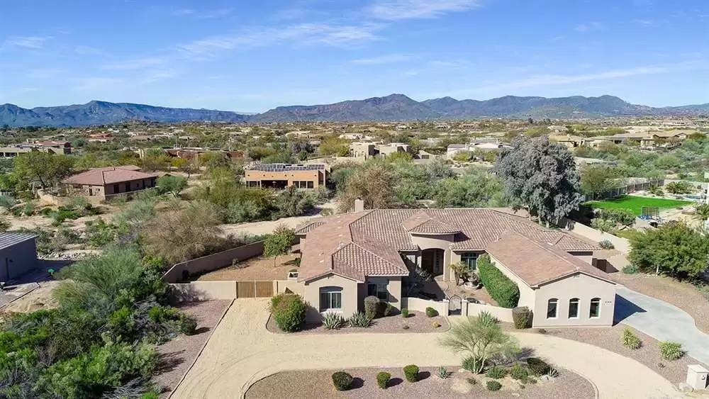 Spacious and private estate home in a non-HOA area allows for easy luxury living and generous outdoor spaces. The resort style backyard has a pool with boulder waterfall feature, covered gazebo with fireplace, large covered patio with built-in barbecue, mature trees including lemon, lime and orange, an irrigated garden area, real grass, view deck with 360-degree views and plenty of additional space for you to bring the toys and imagination!
