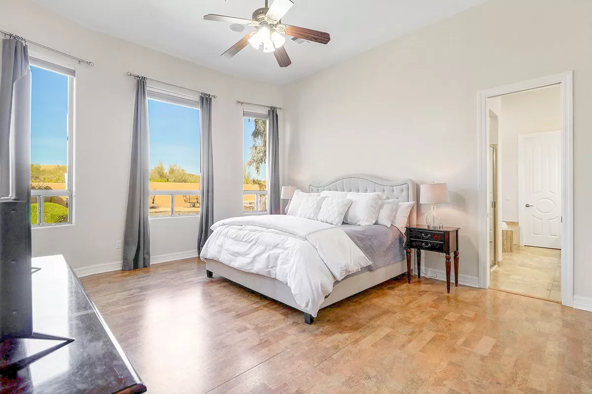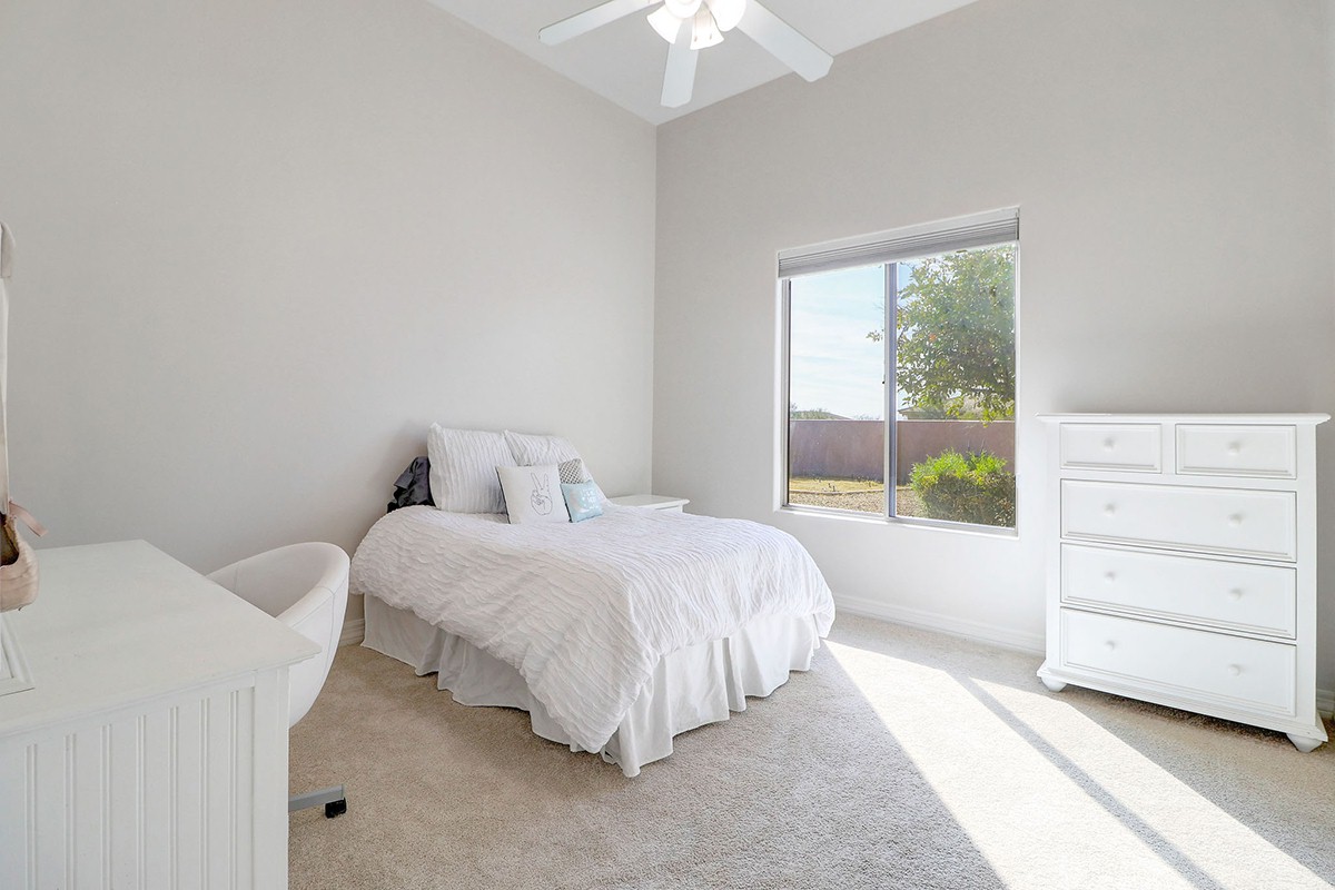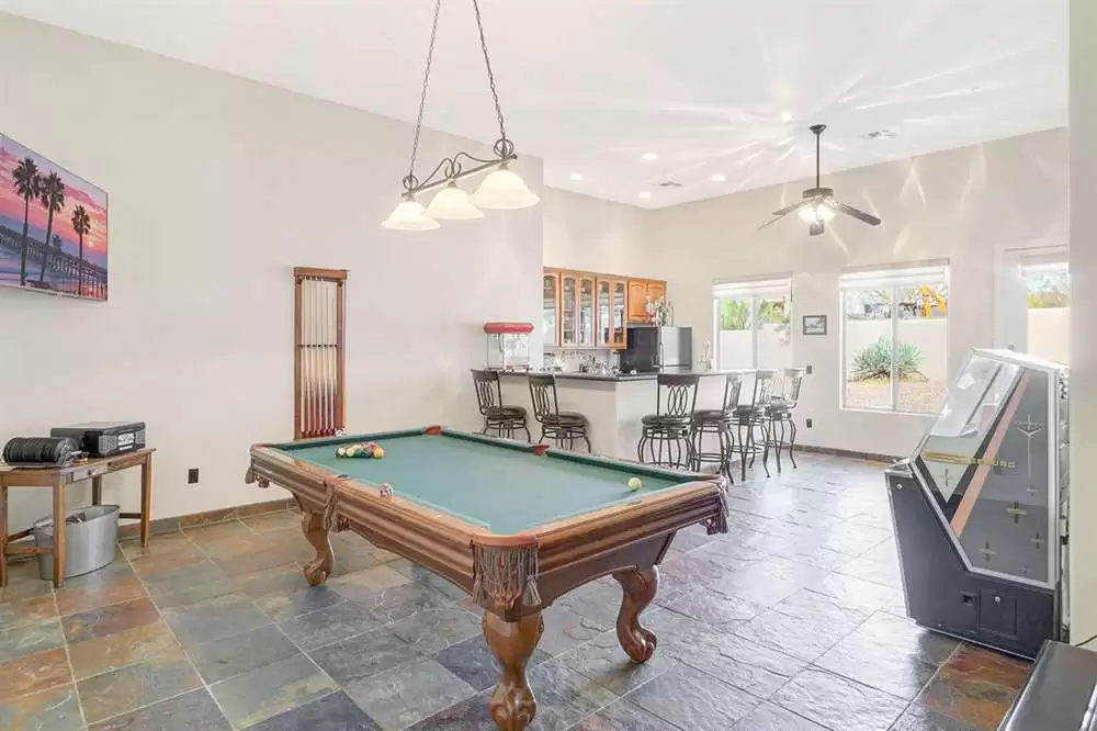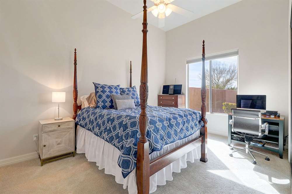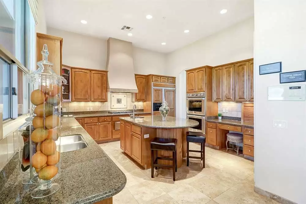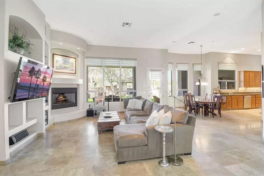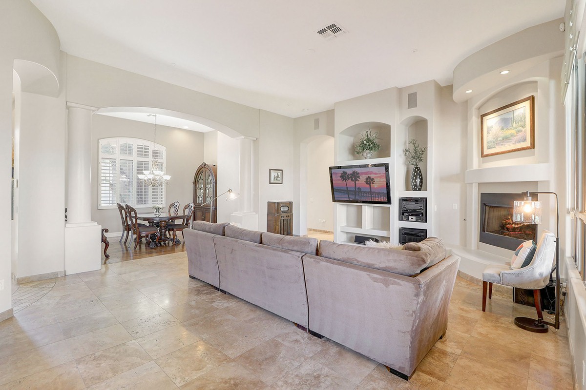 Spacious and private estate home in a non-HOA area allows for easy luxury living and generous outdoor spaces. The resort style backyard has a pool with boulder waterfall feature, covered gazebo with fireplace, large covered patio with built-in barbecue, mature trees including lemon, lime and orange, an irrigated garden area, real grass, view deck with 360-degree views and plenty of additional space for you to bring the toys and imagination!