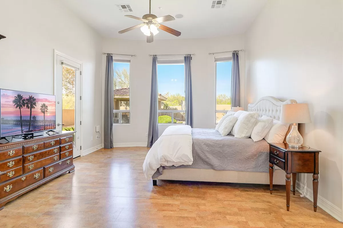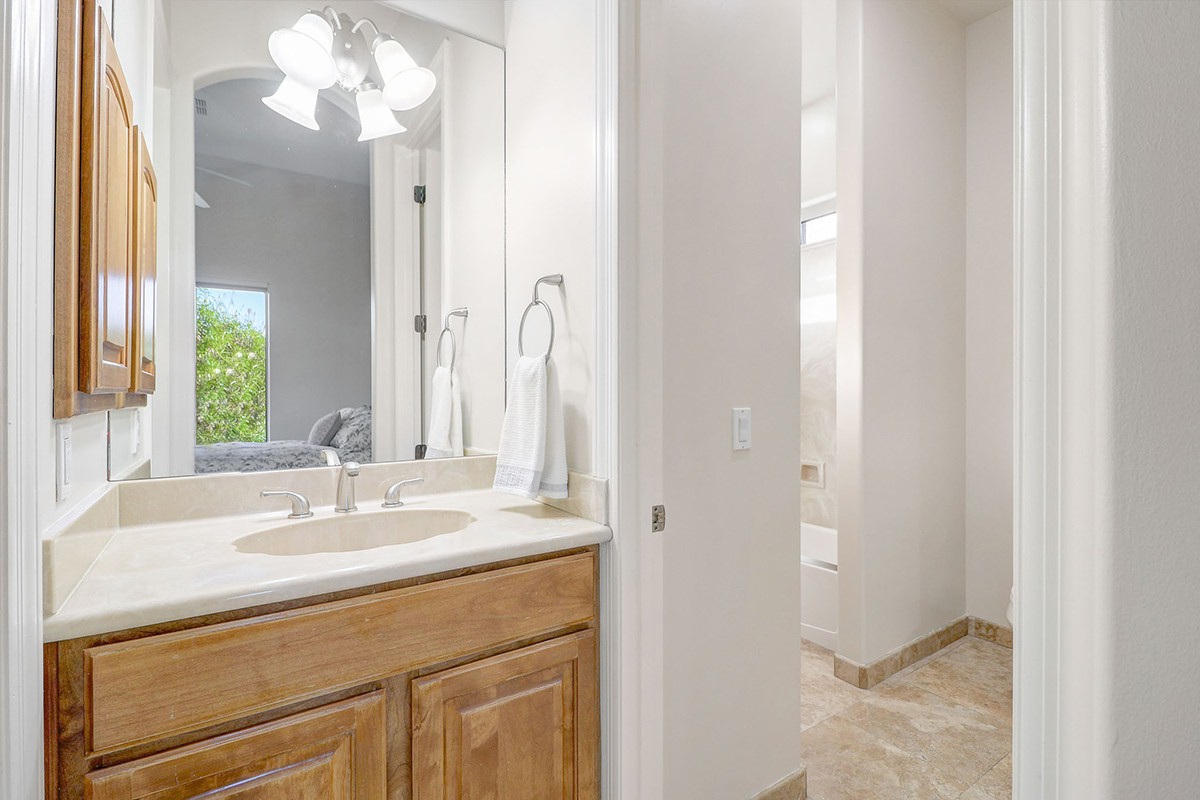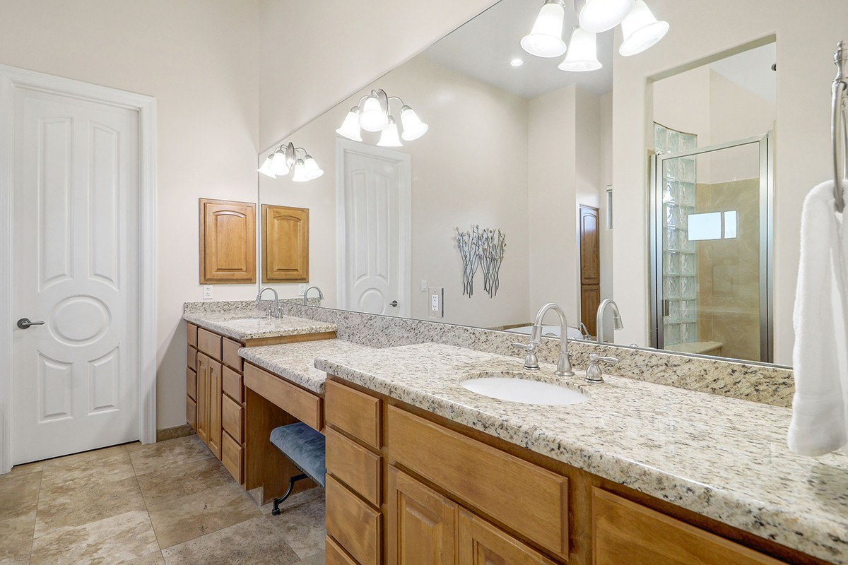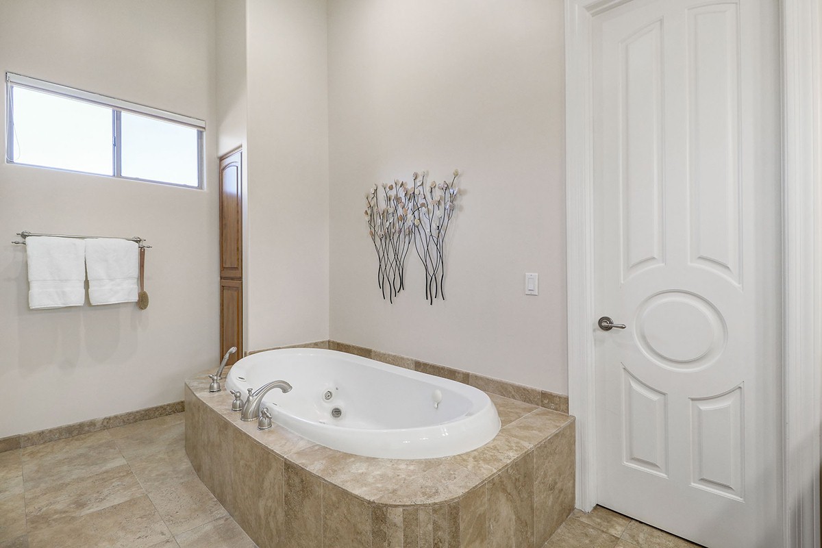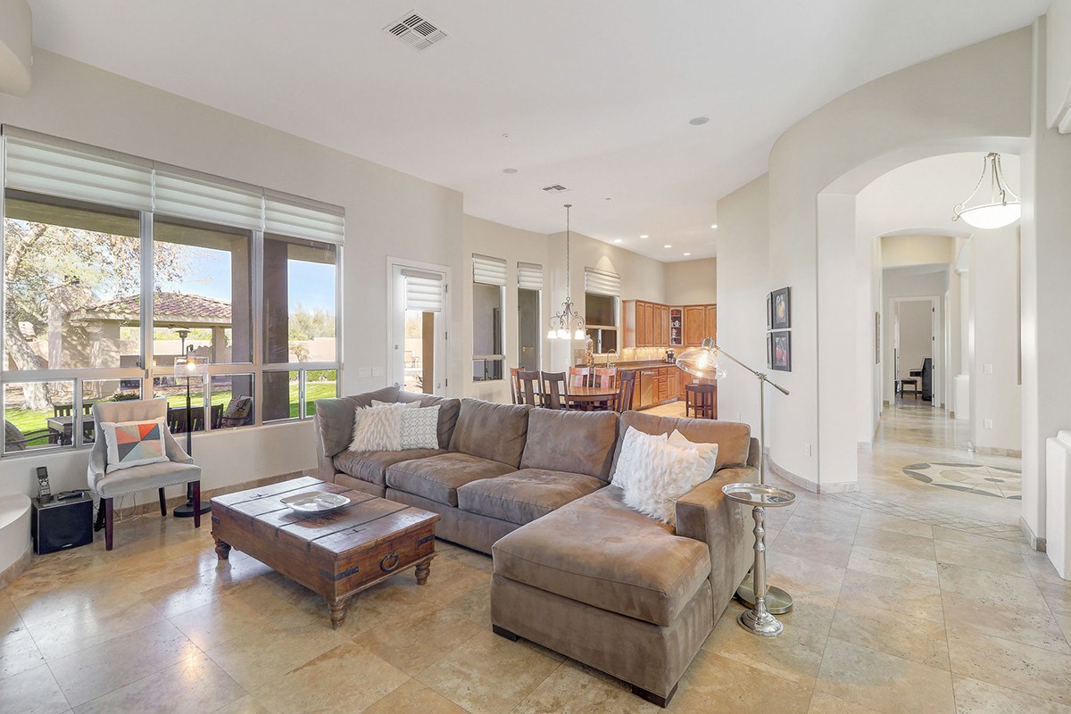 Spacious and private estate home in a non-HOA area allows for easy luxury living and generous outdoor spaces. The resort style backyard has a pool with boulder waterfall feature, covered gazebo with fireplace, large covered patio with built-in barbecue, mature trees including lemon, lime and orange, an irrigated garden area, real grass, view deck with 360-degree views and plenty of additional space for you to bring the toys and imagination!