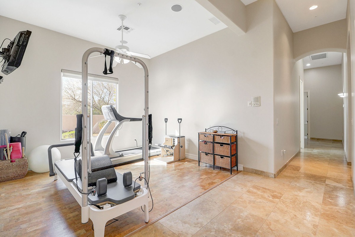 An attached private entry casita has a kitchenette, living area and one bedroom. Two newer HVAC units, large laundry, four car garage with paved drive, half circle drive for guests, gated courtyard, RV gate, recently painted exterior and freshly painted interior make this home move in ready.