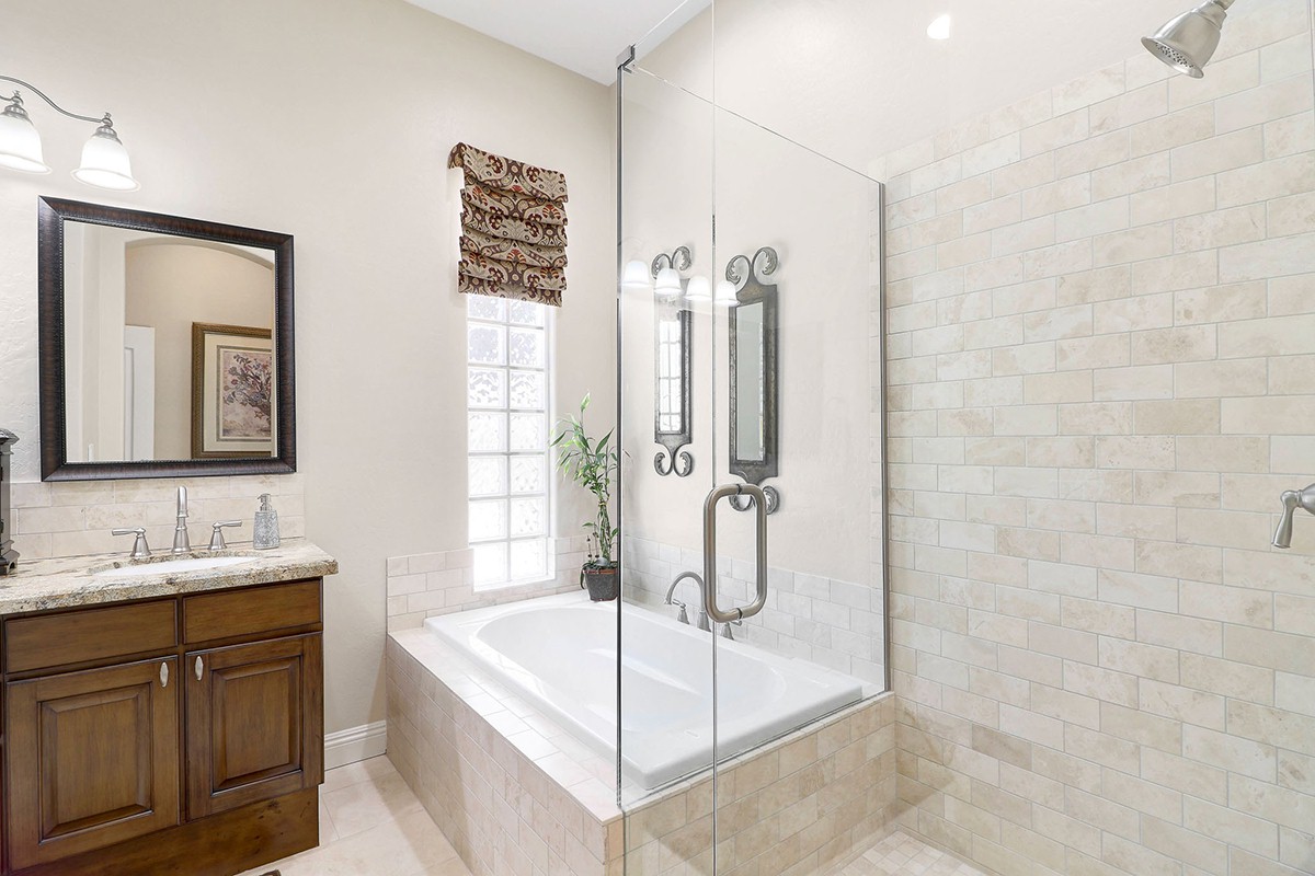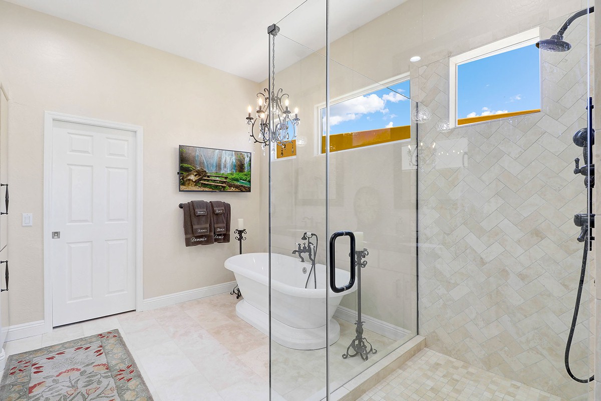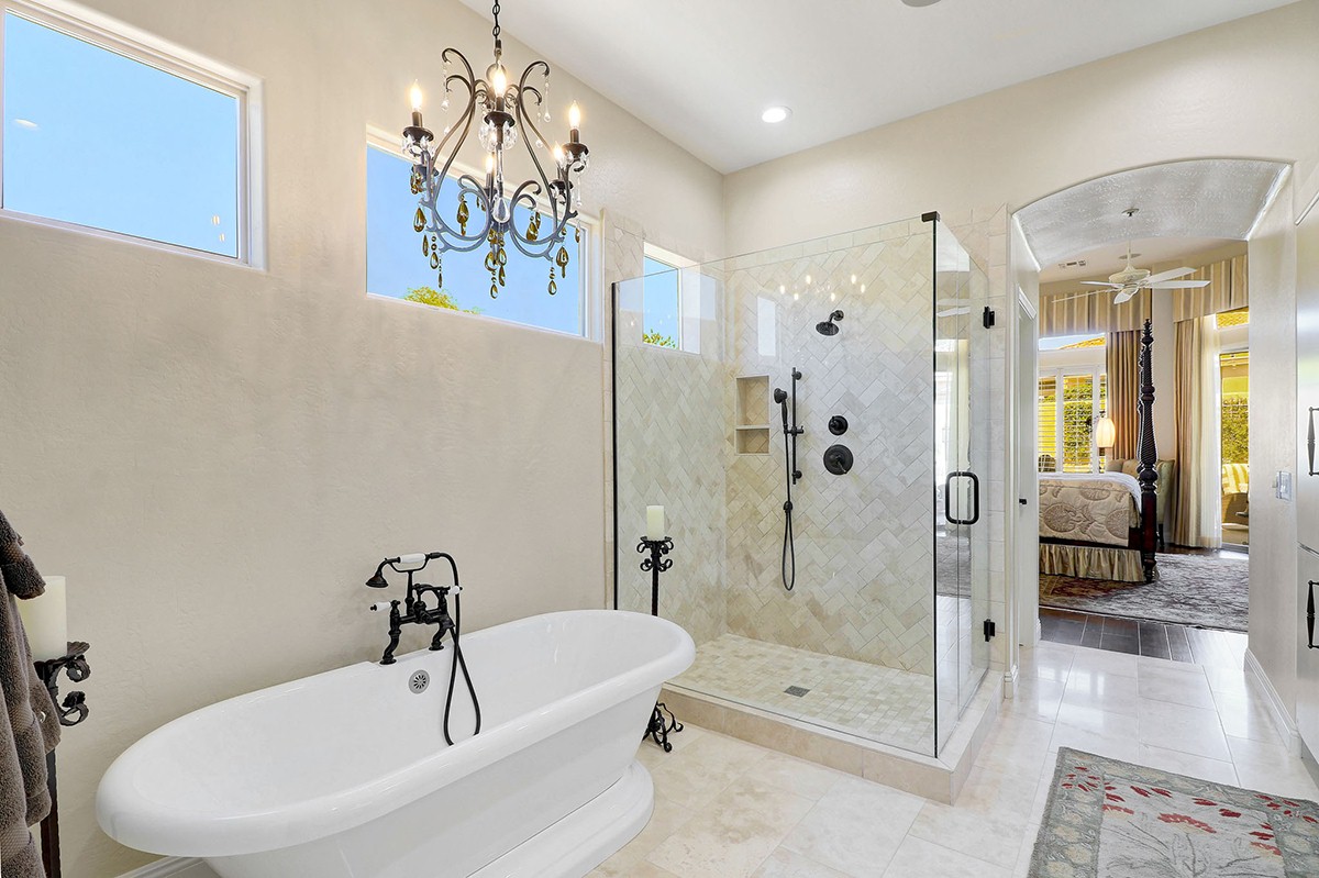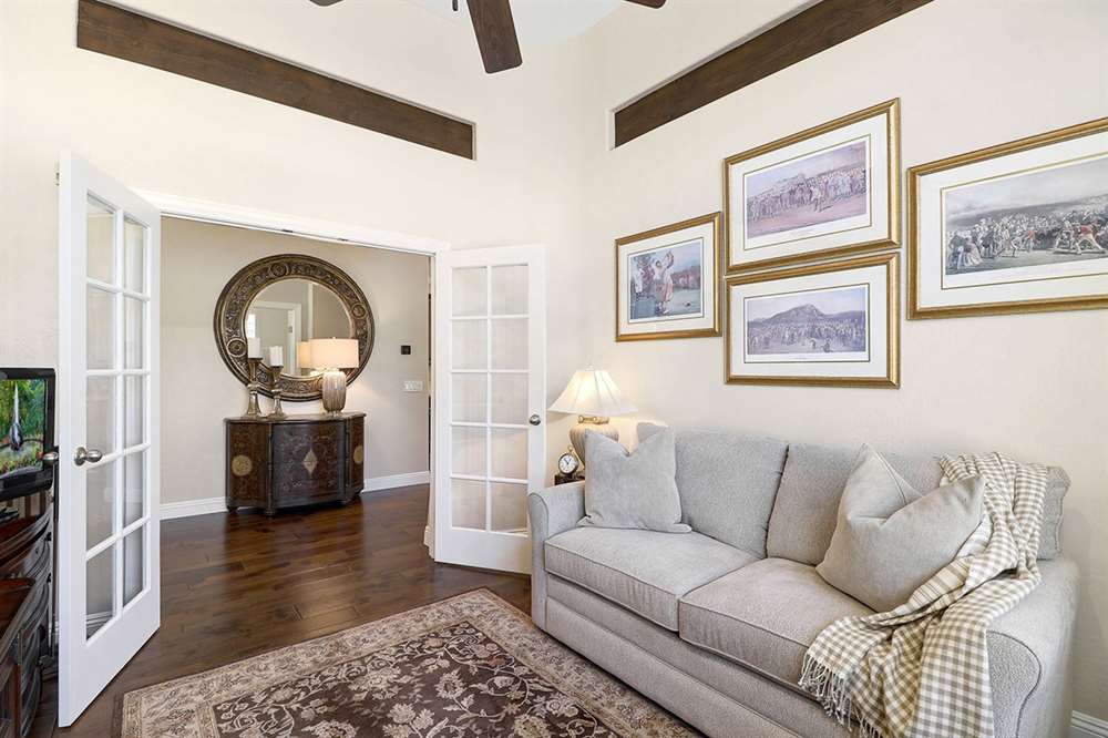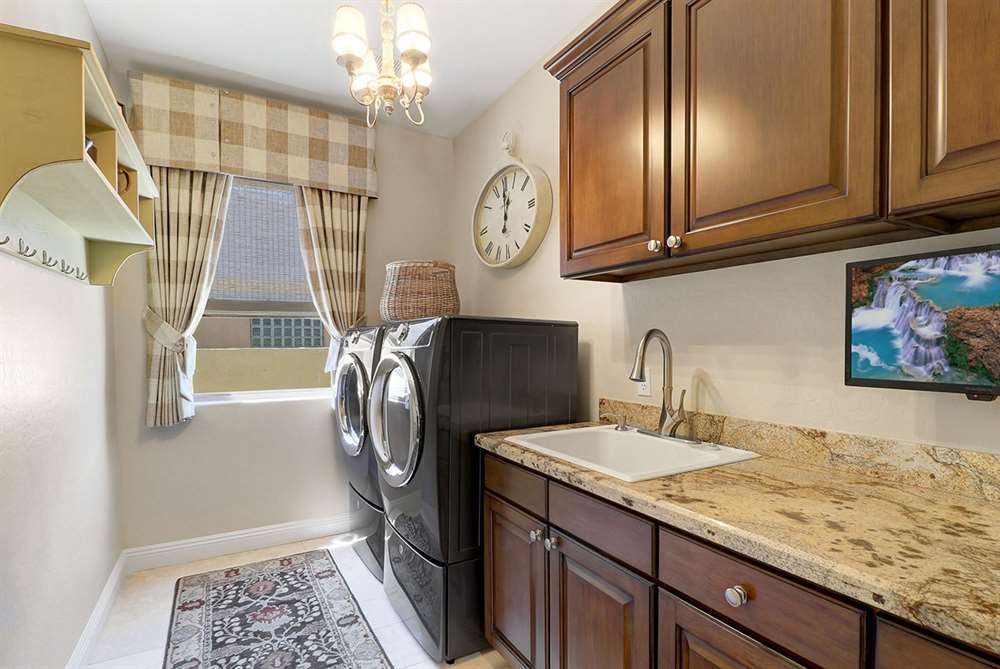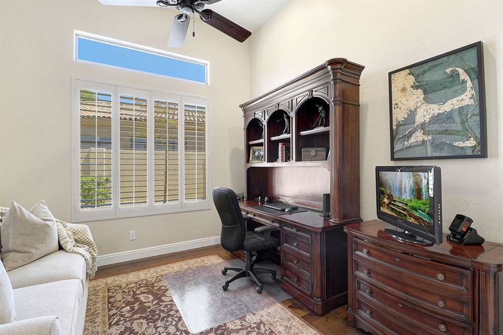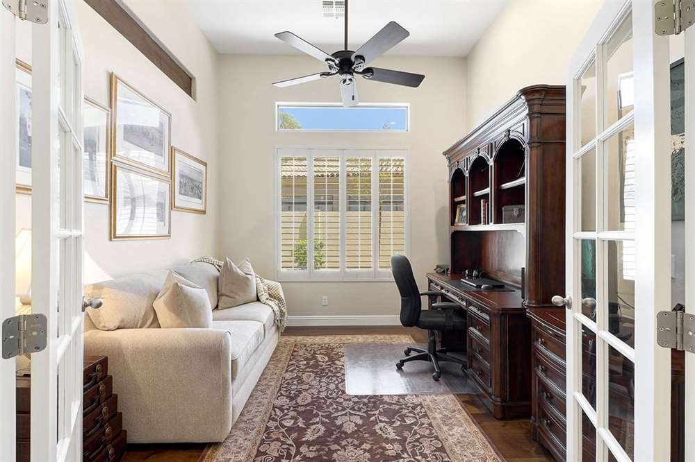 Other features include: new roof December 2019, including tile and underlayment, two-car garage with epoxy floors and built-in cabinets, LED lighting, new water heater and water softener, large laundry with sink, motorized draperies, plantation shutters, french doors into the private den, and so much more!