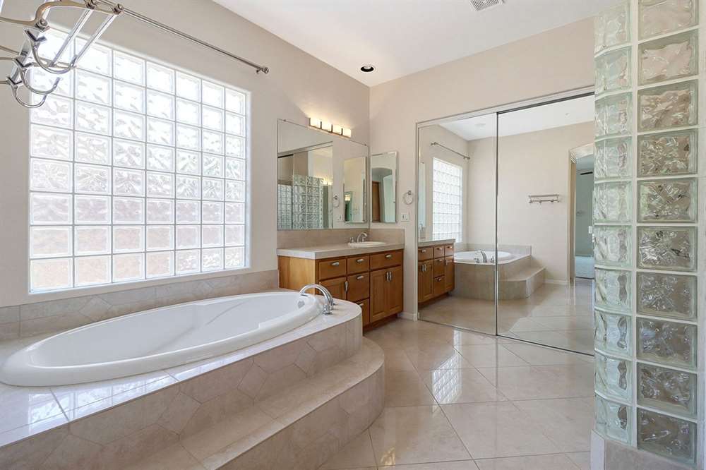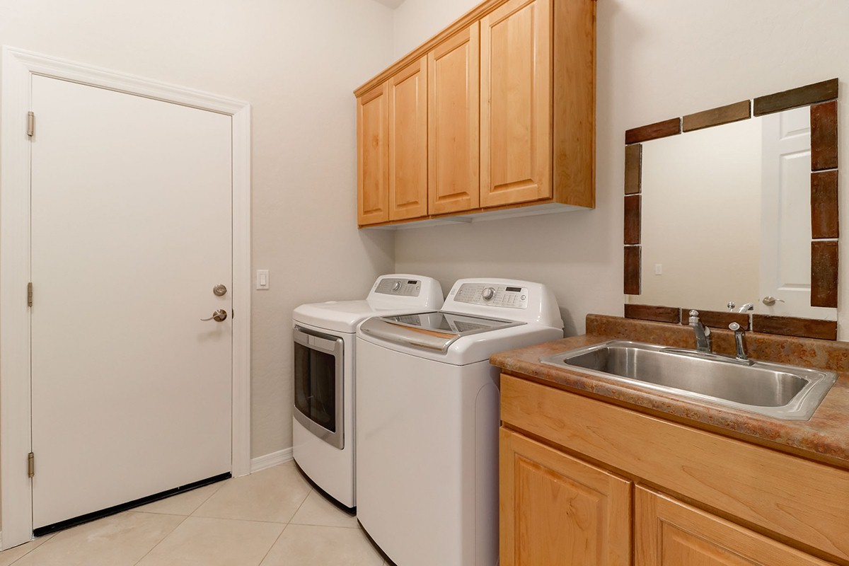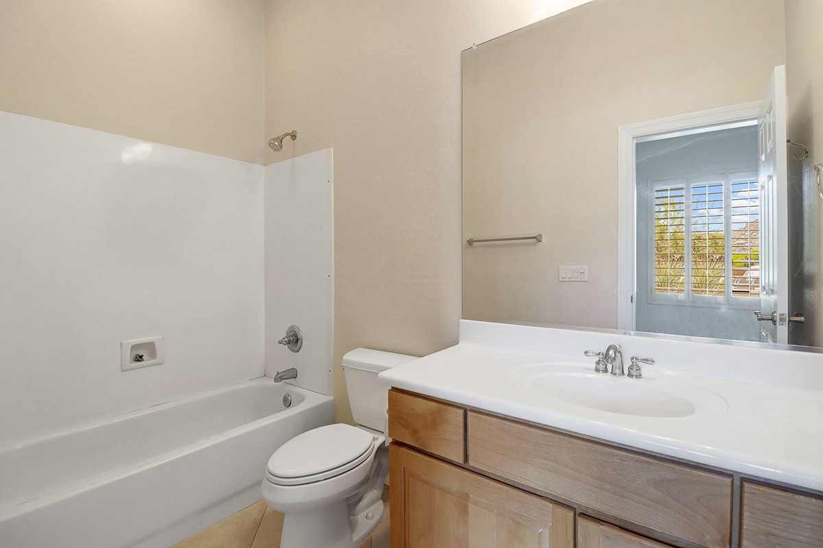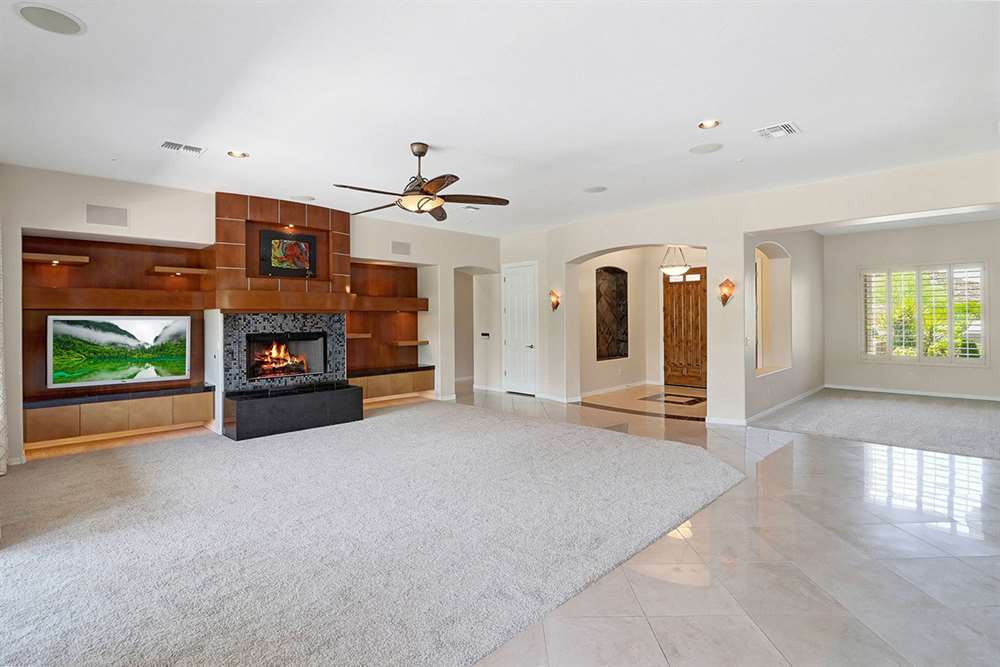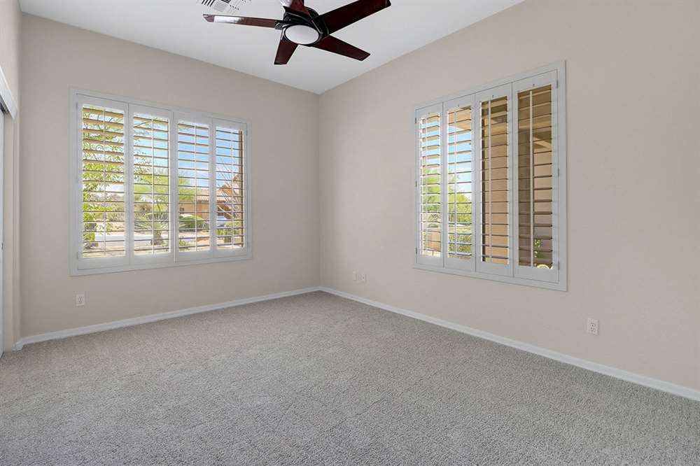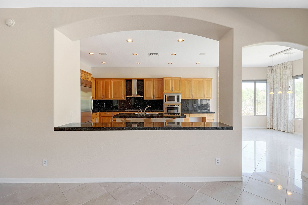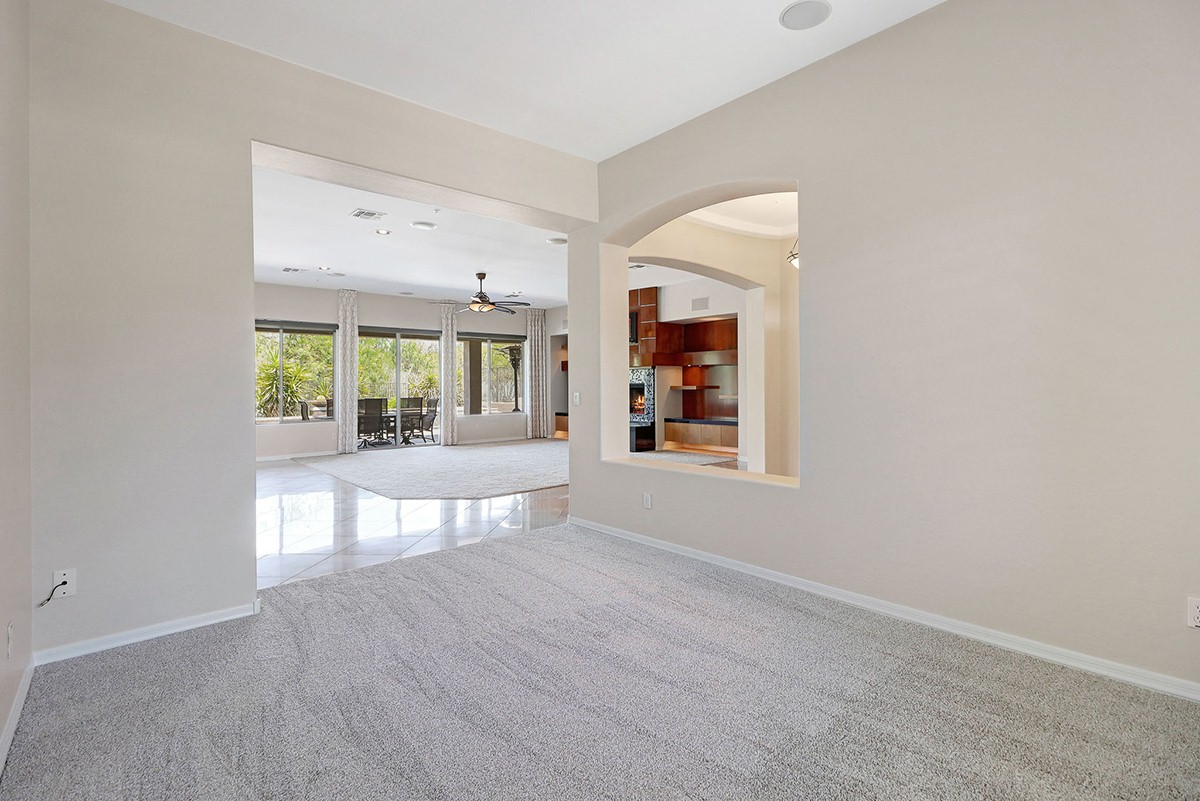The private backyard backs to a beautiful desert arroyo and features an elevated spa cascading into the Pebble-Tec pool below, a built-in fire-pit with seating, large covered patio, built-in barbecue, grassy play area and mature landscaping throughout. With just over 2,700 square feet, this perfectly sized home has three bedrooms and three full baths, and a bonus room/flex space.