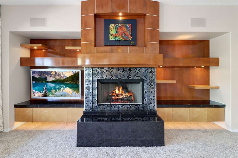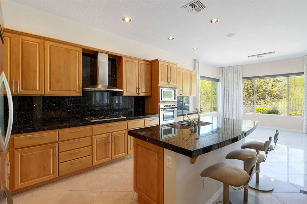 The soft contemporary feel make for easy appointments and classic styling. The kitchen features a gas cooktop, breakfast nook, stainless steel appliances including a new dishwasher and microwave, built-in desk, granite tile counters, center island with seating, built in buffet, all overlooking the backyard and the great room with sleek built-in entertainment center and gas fireplace.