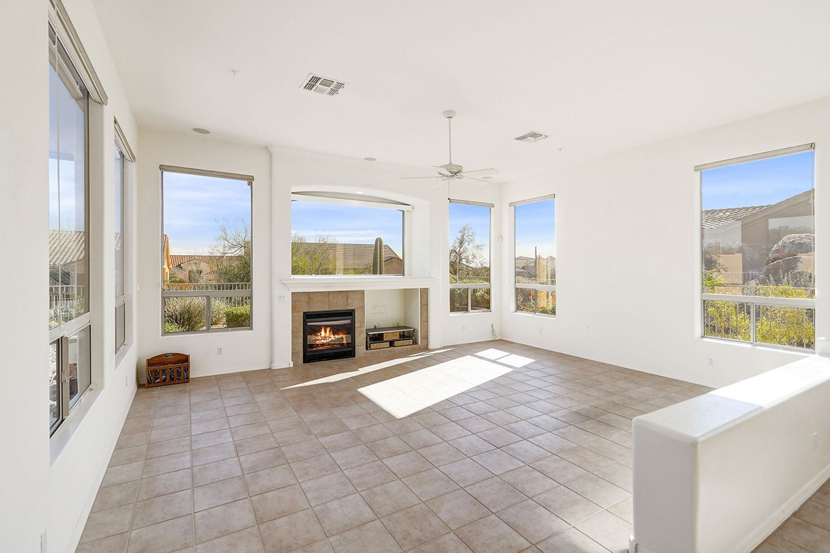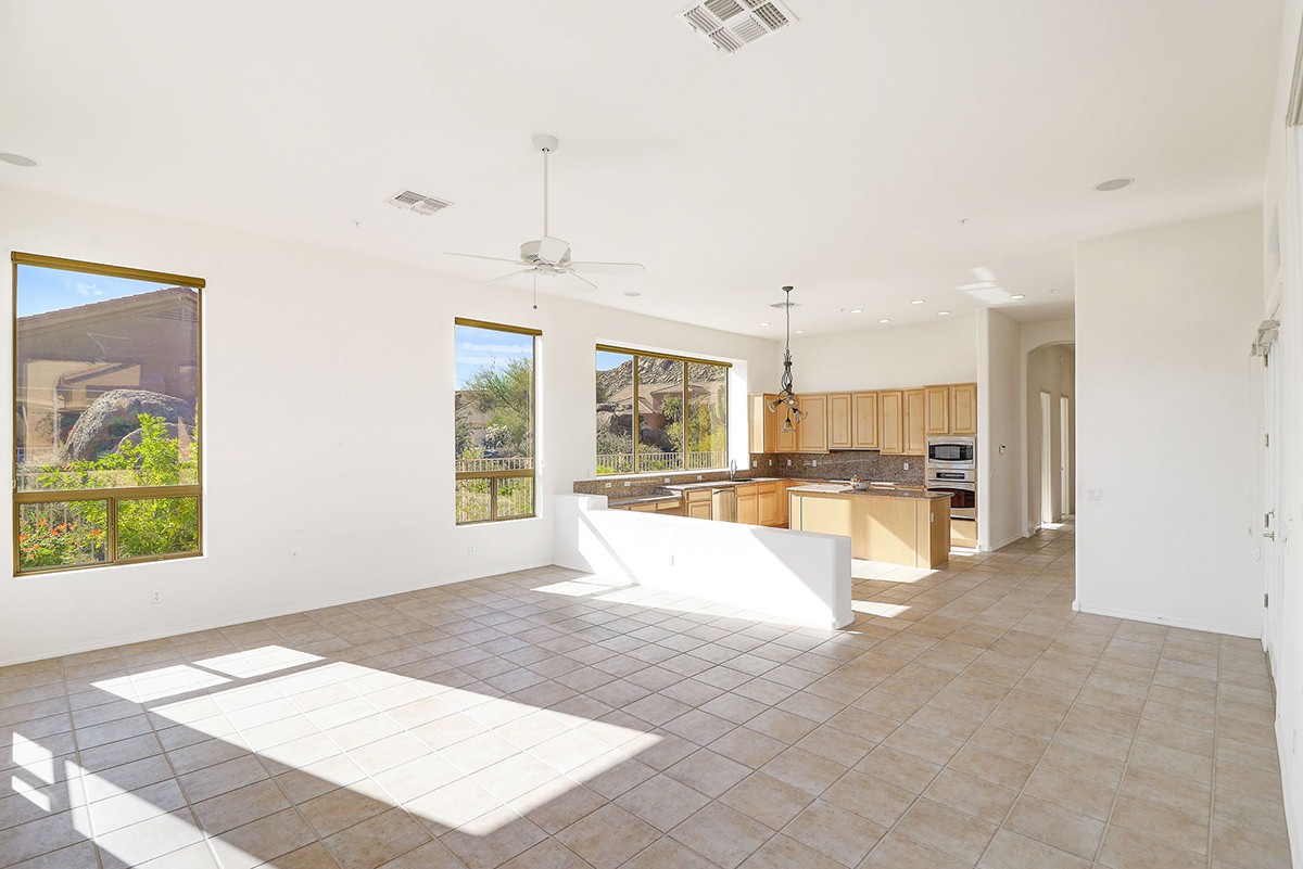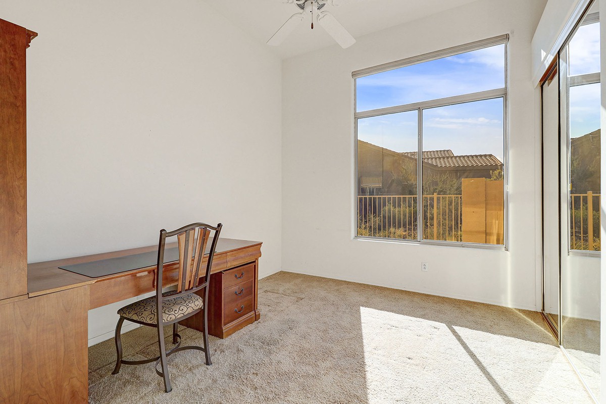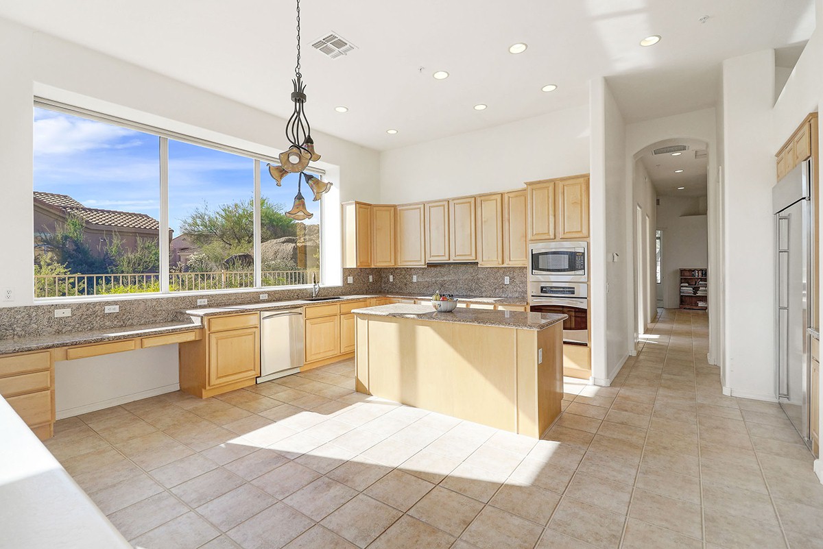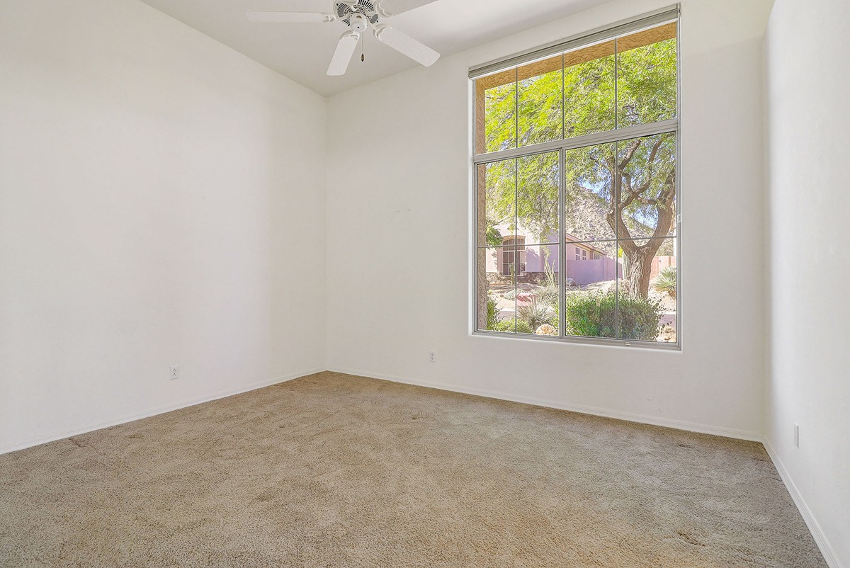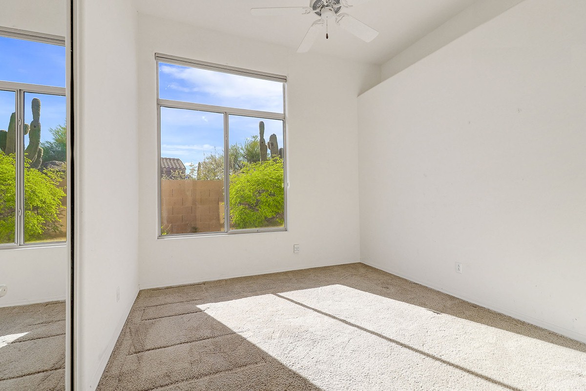 Great find in Four Peaks at Troon Village! This home is tucked away in a private cul-de-sac and the lot backs and sides to NAOS with Troon Mountain views out the front and McDowell Mountain Range views from the rear.