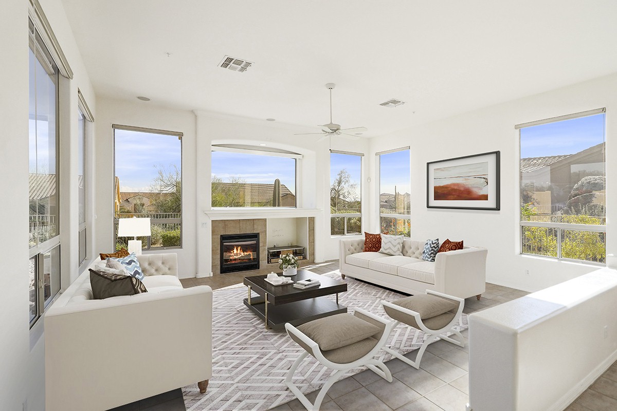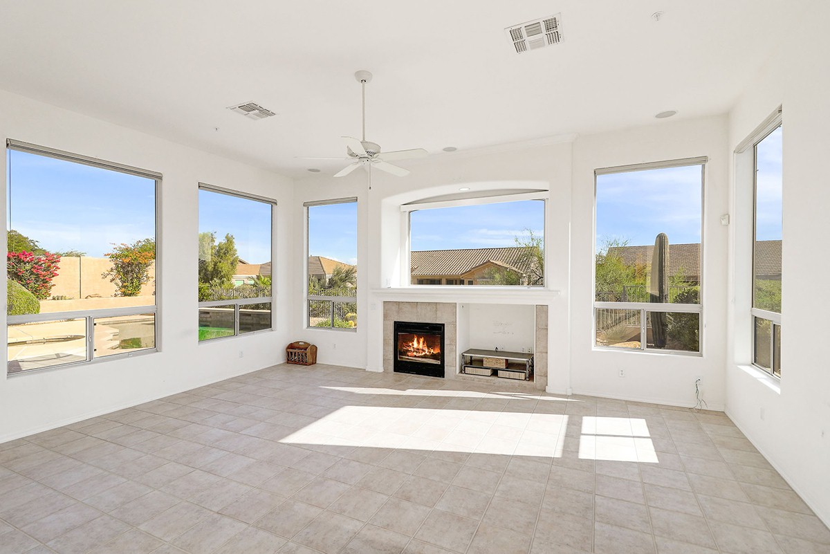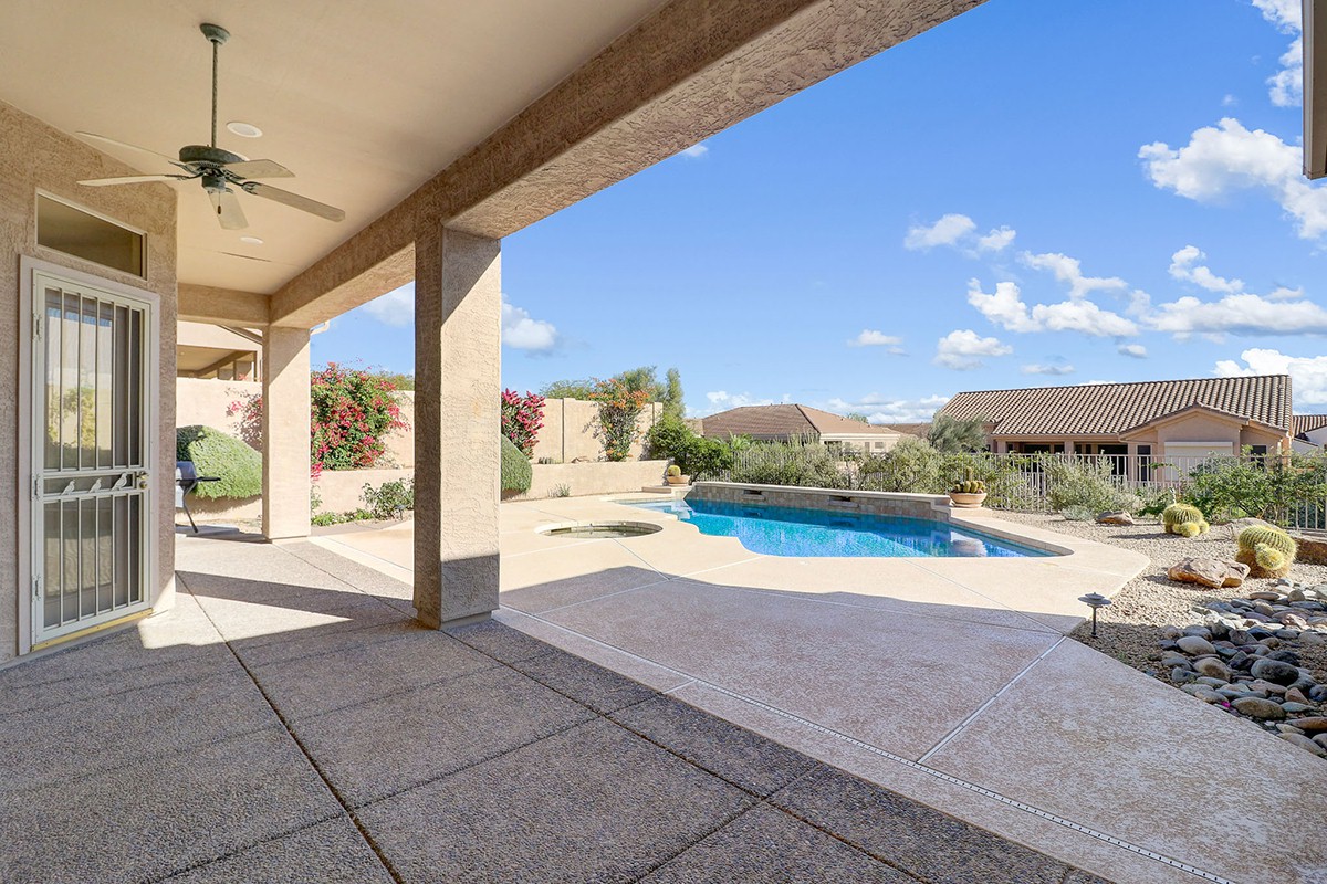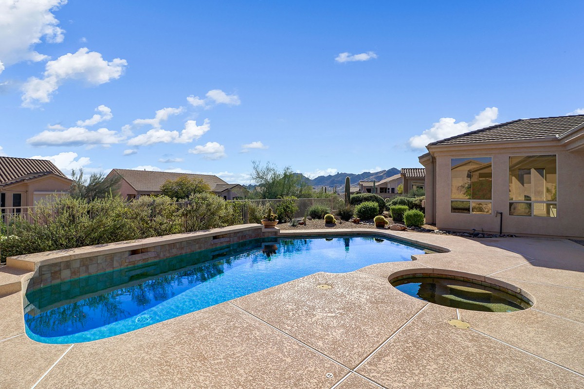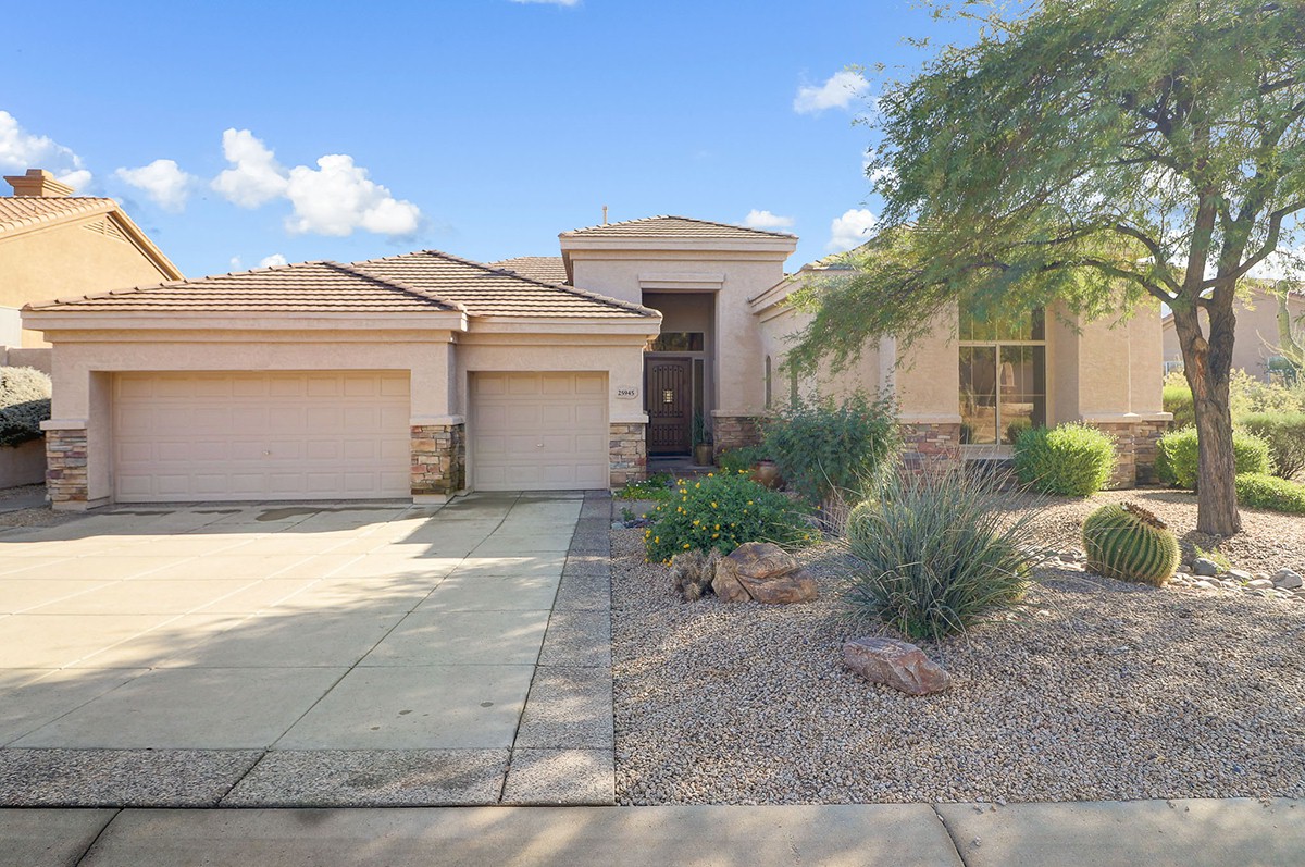 Great find in Four Peaks at Troon Village! This home is tucked away in a private cul-de-sac and the lot backs and sides to NAOS with Troon Mountain views out the front and McDowell Mountain Range views from the rear.