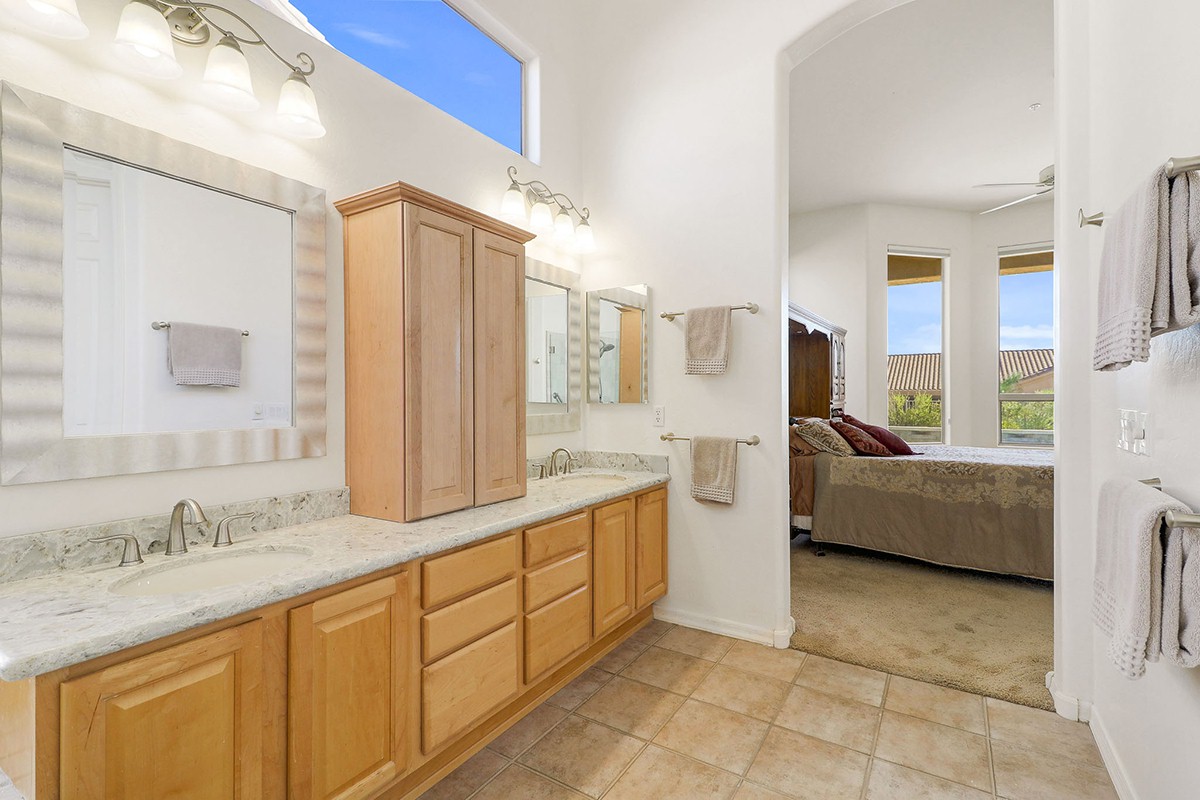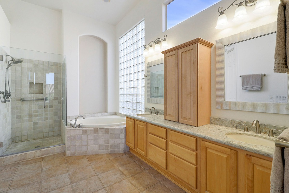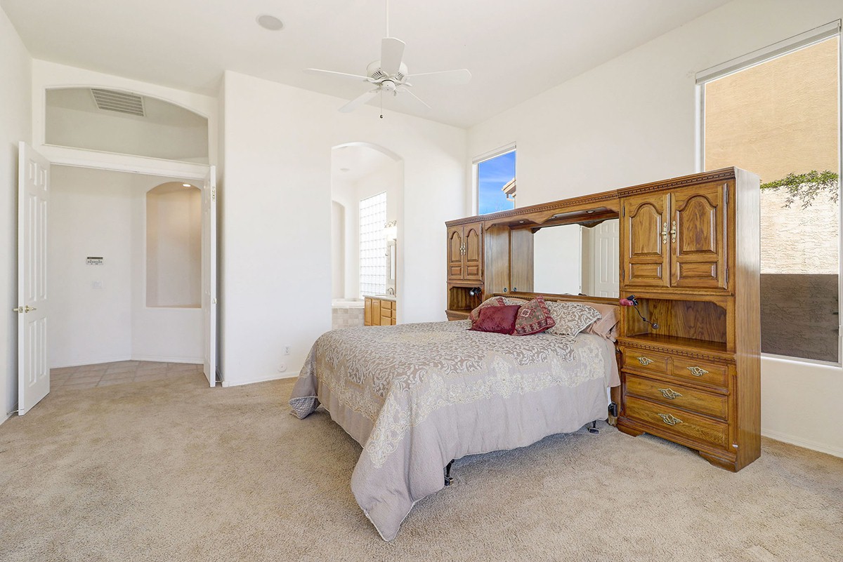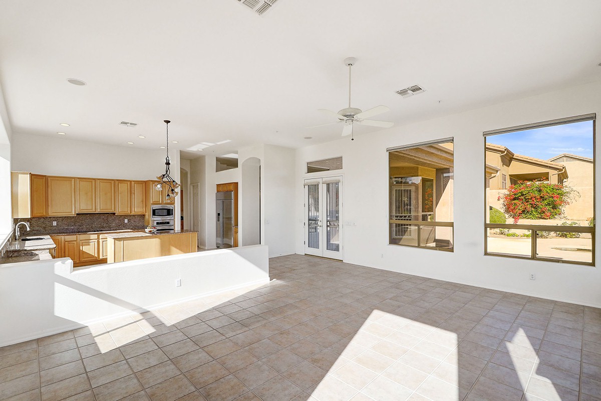 The backyard has low maintenance landscaping, sparkling resurfaced pool with water feature, separate spa, large covered patio, abundant hardscape for lounging or dining. A three car garage top off this home that is ready for it’s new owners!