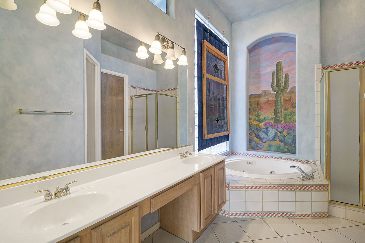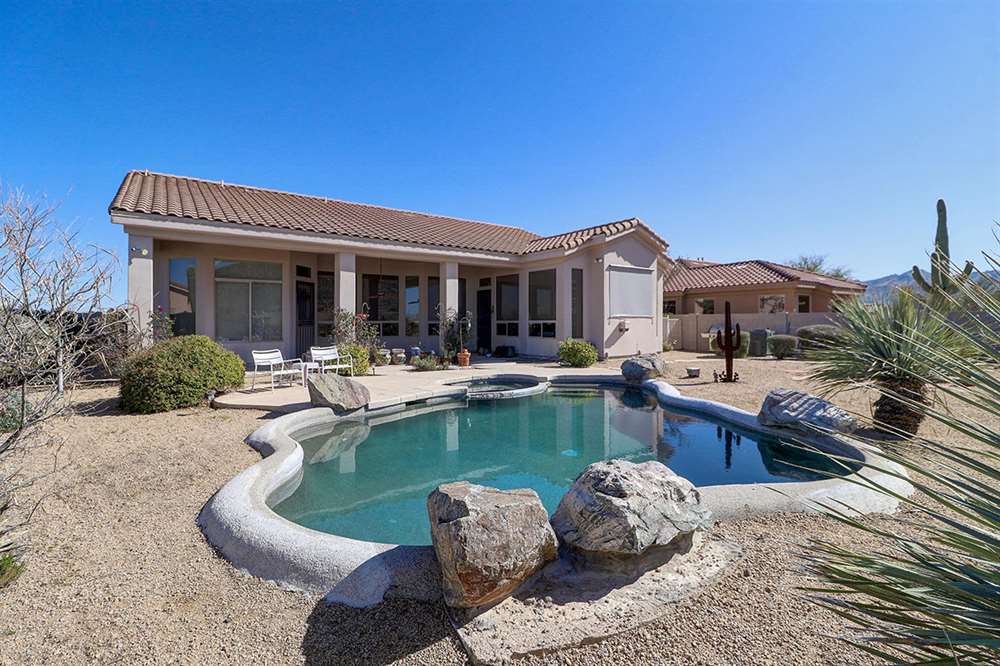 Bring your fresh ideas and decorator as the home is the perfect year round or seasonal residence and ready for its new owner to make it their own! The backyard is low maintenance, with a refreshing pool and spa, large covered patio, and plenty of room to design spaces to soak in the Arizona sunsets and mountain views.