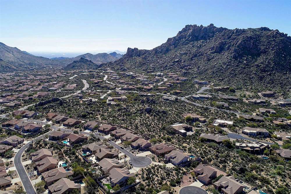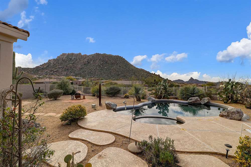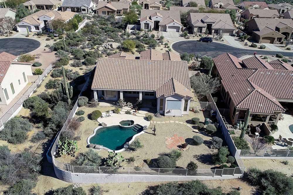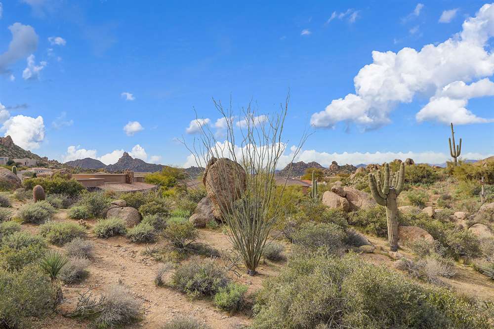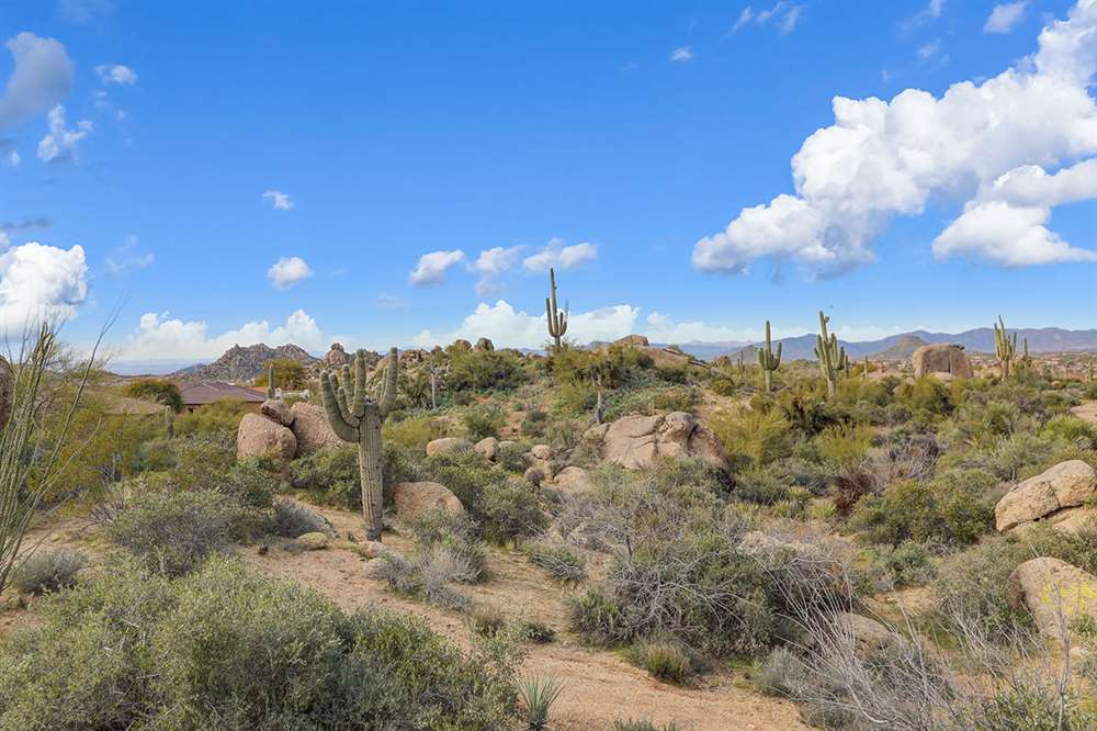 First time on the market! One of the best view lots in Four Peaks at Troon Village. This corner, cul-de-sac lot is bordered by protected Natural Area Open Space and sits at a higher elevation than the surrounding lots to allow for 360-degree mountain views including Pinnacle Peak and Troon Mountain.