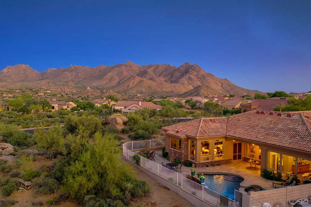 Stunning views define this Four Peaks at Troon Village home! Surrounded by Natural Area Open Space to the side and the back of the home and across the street, this beautiful decorated just over 3,000 square foot home has views of Four Peaks, McDowell Mountain Range, and Troon Mountain from every viewpoint.