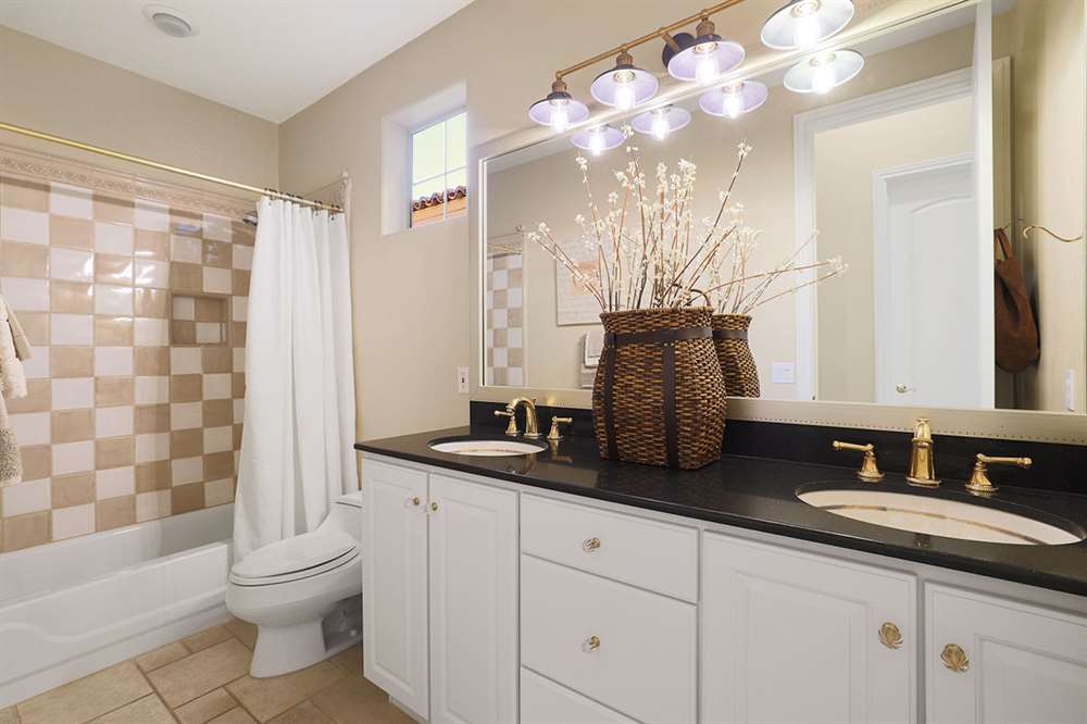 Other features include plantation shutters throughout, neutral tile Versailles patterned floors, view windows throughout, fireplace in the family room, stainless steel appliances including gas cooktop, front courtyard with mesquite wood front door, two-car garage with epoxy floors, and a freshly painted smooth stucco exterior. Don’t miss out on this meticulous, well cared for home!