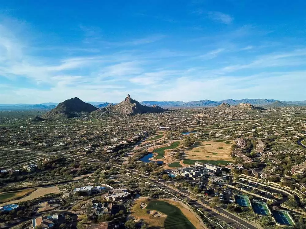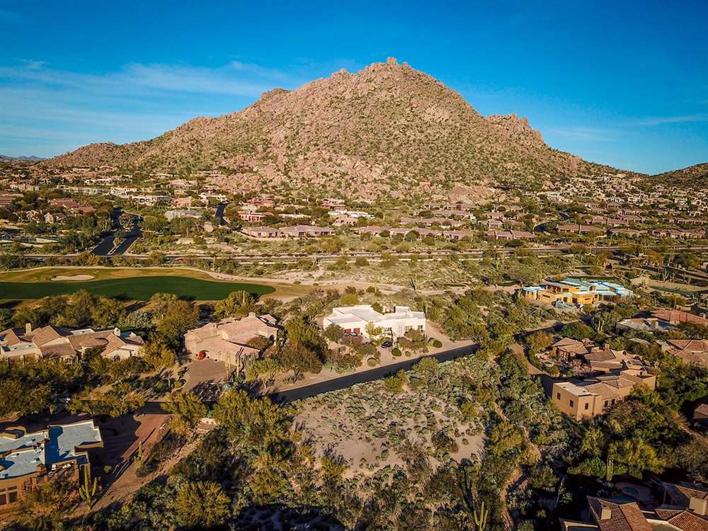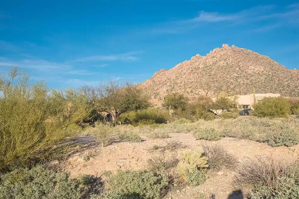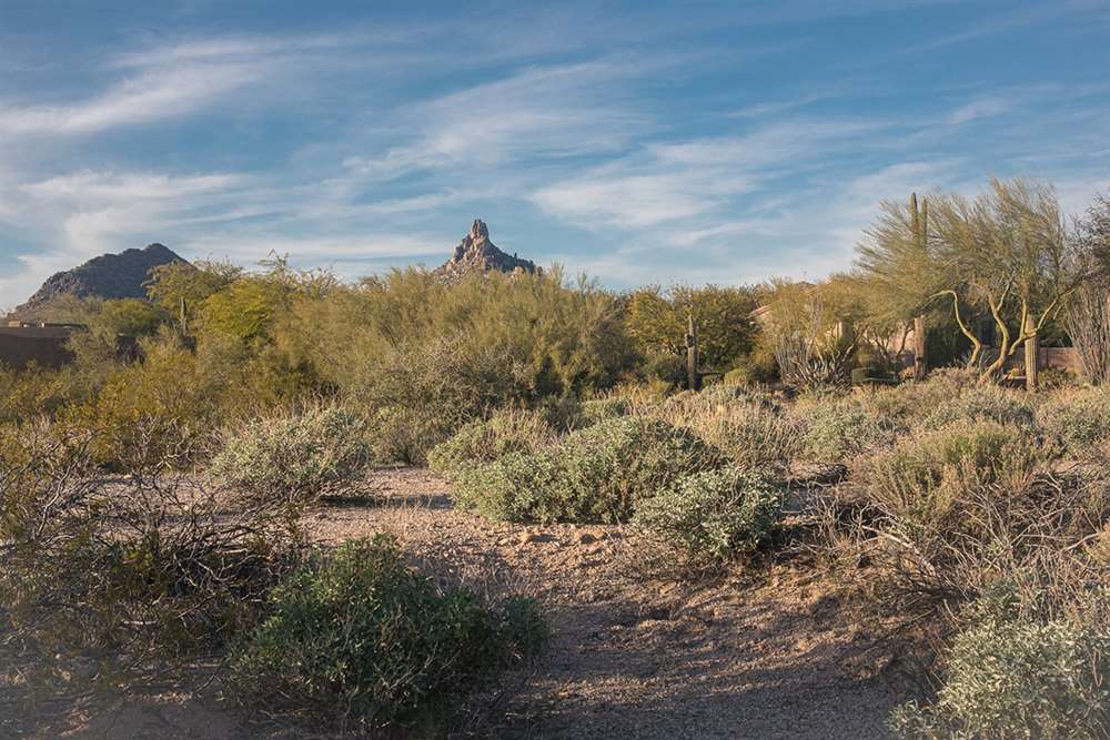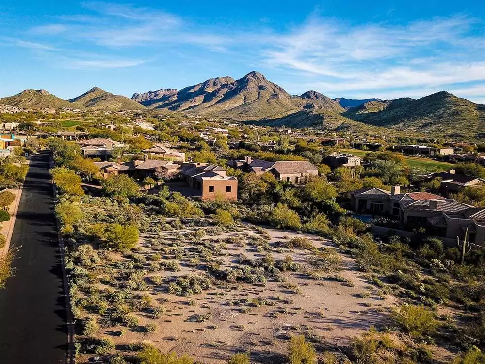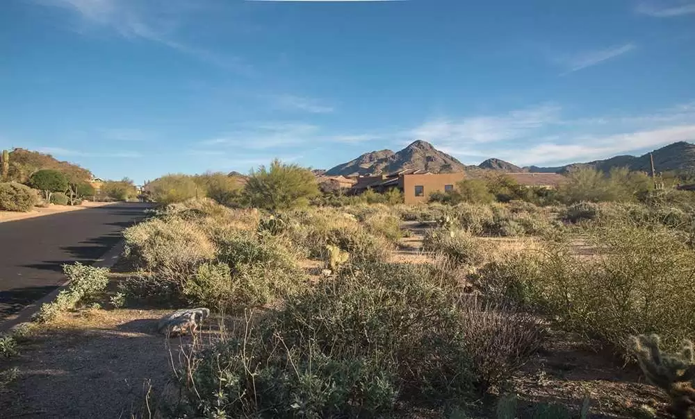 This Glenn Moor at Troon Village large custom home lot on .65 acre offers views to Pinnacle Peak and Troon Mountain. Natural washes on the South, East and West sides of the property give you a comfortable distance between you and your new neighbors!