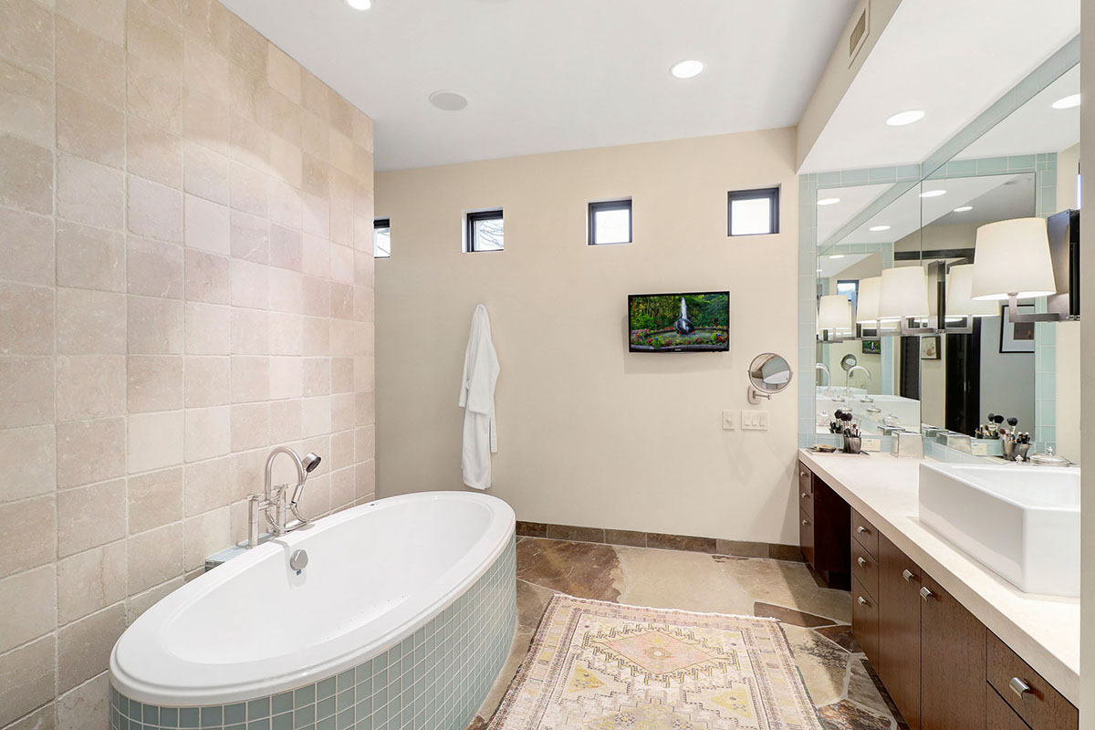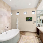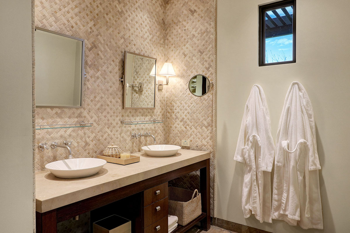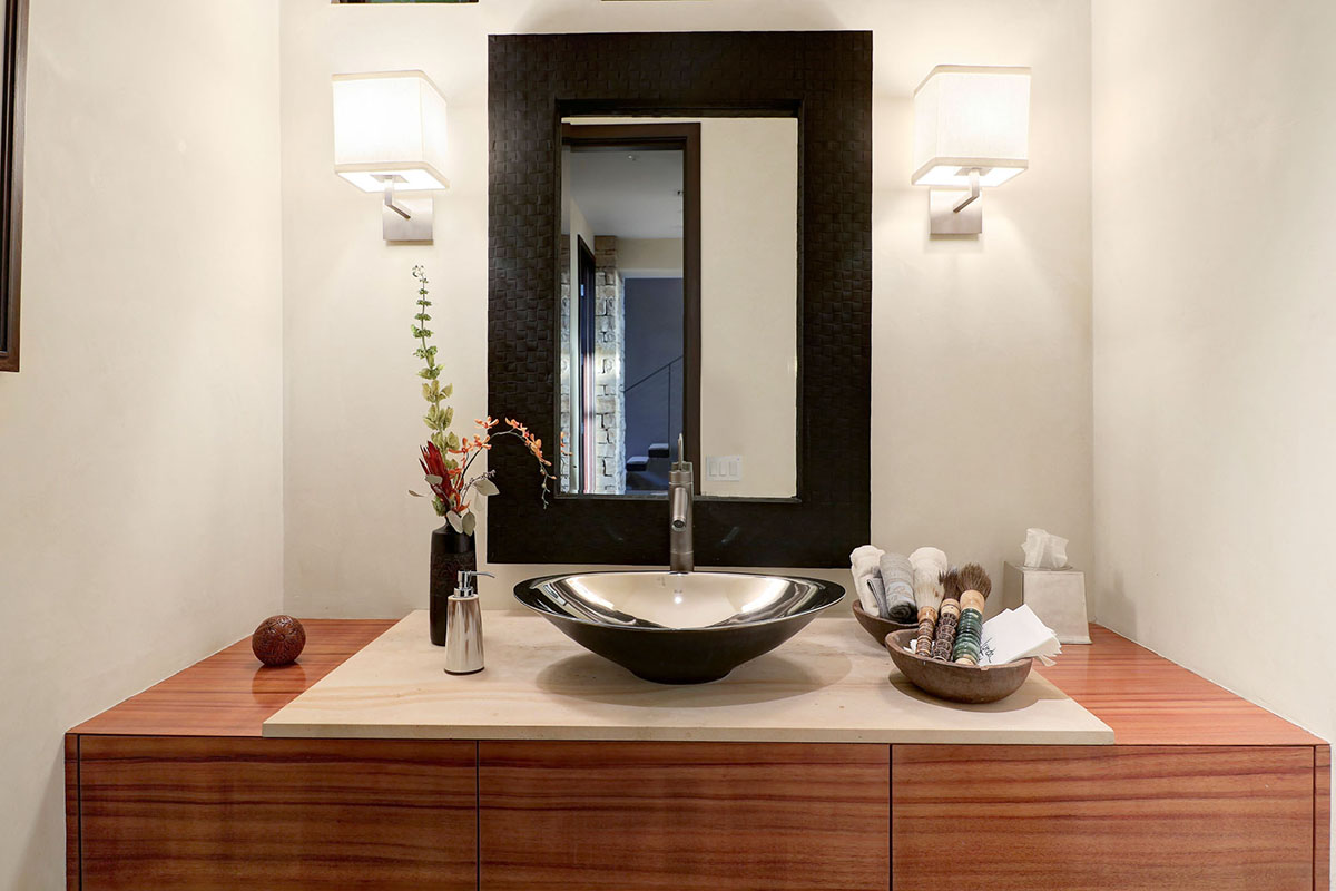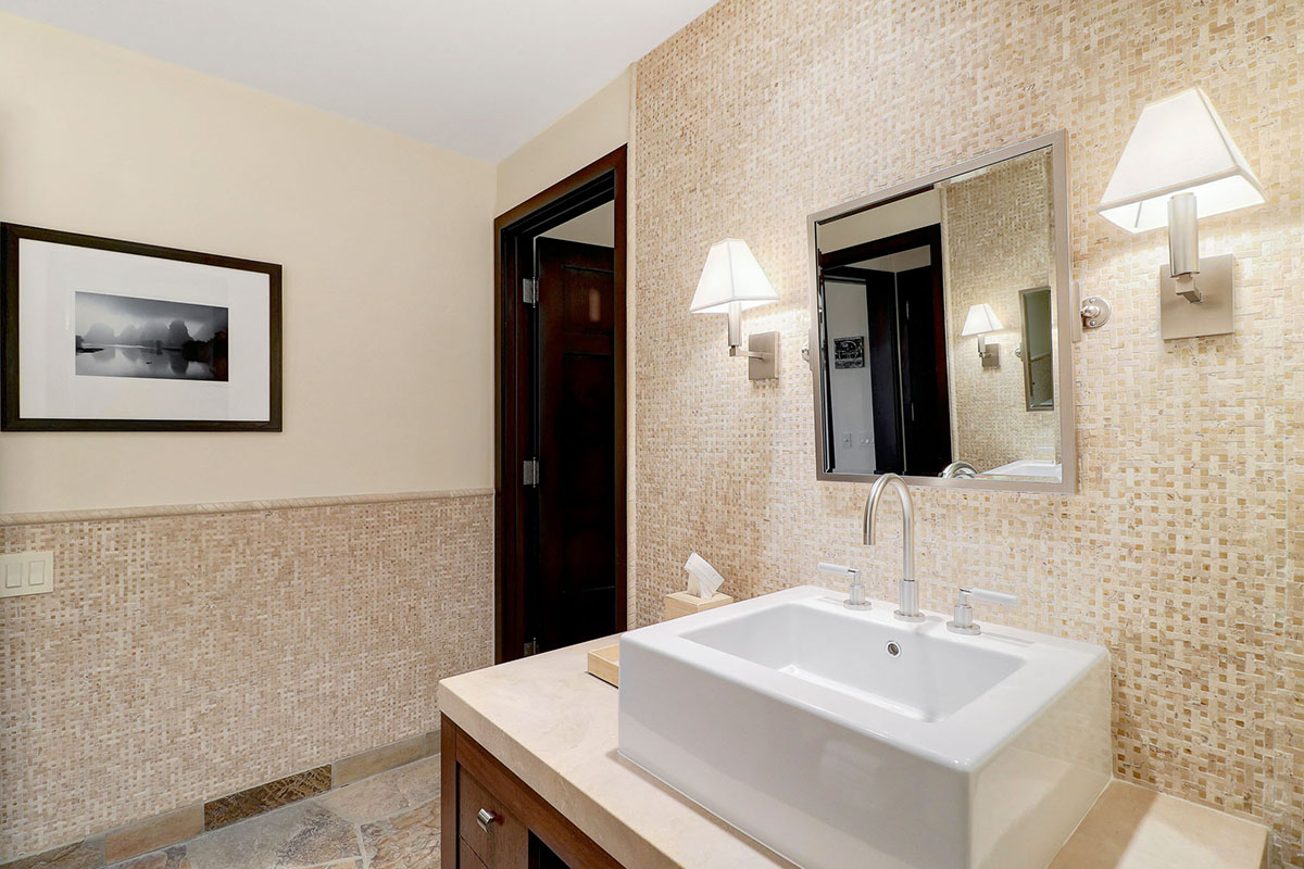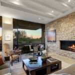The lush, superbly designed landscaping continues the organic desert feel with numerous species of succulents, cacti, trees and boulders surrounding the decomposed granite driveway. The impressive entryway showcases a full length 40-foot long water feature and a direct view of the entry with a suspended staircase and a perfect neutral palette.