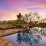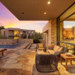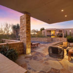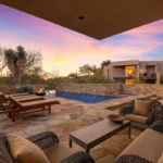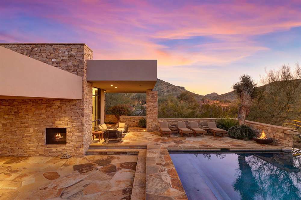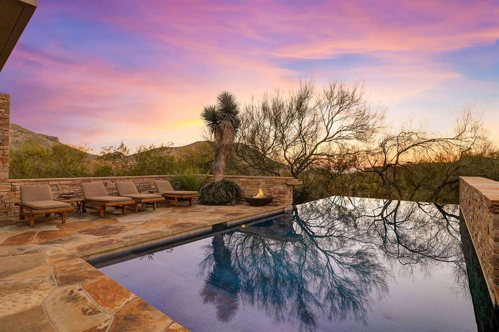 The backyard embraces the private setting with a negative edge pool and spa reflecting the famous Arizona sunsets and local foliage for a truly one-of-a-kind experience. Flanked by two additional side patios, the outdoors is a perfect setting for entertaining guests with al-fresco dinners and lounging in the splendid weather all while admiring the distant city light views.