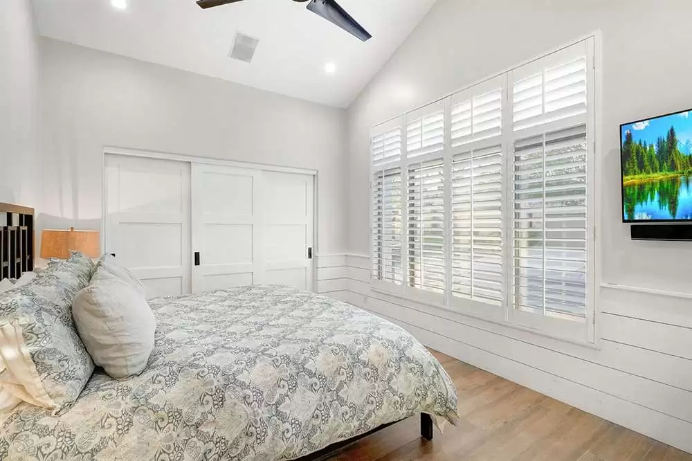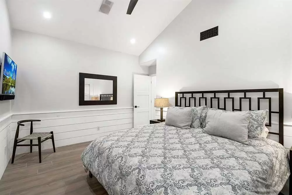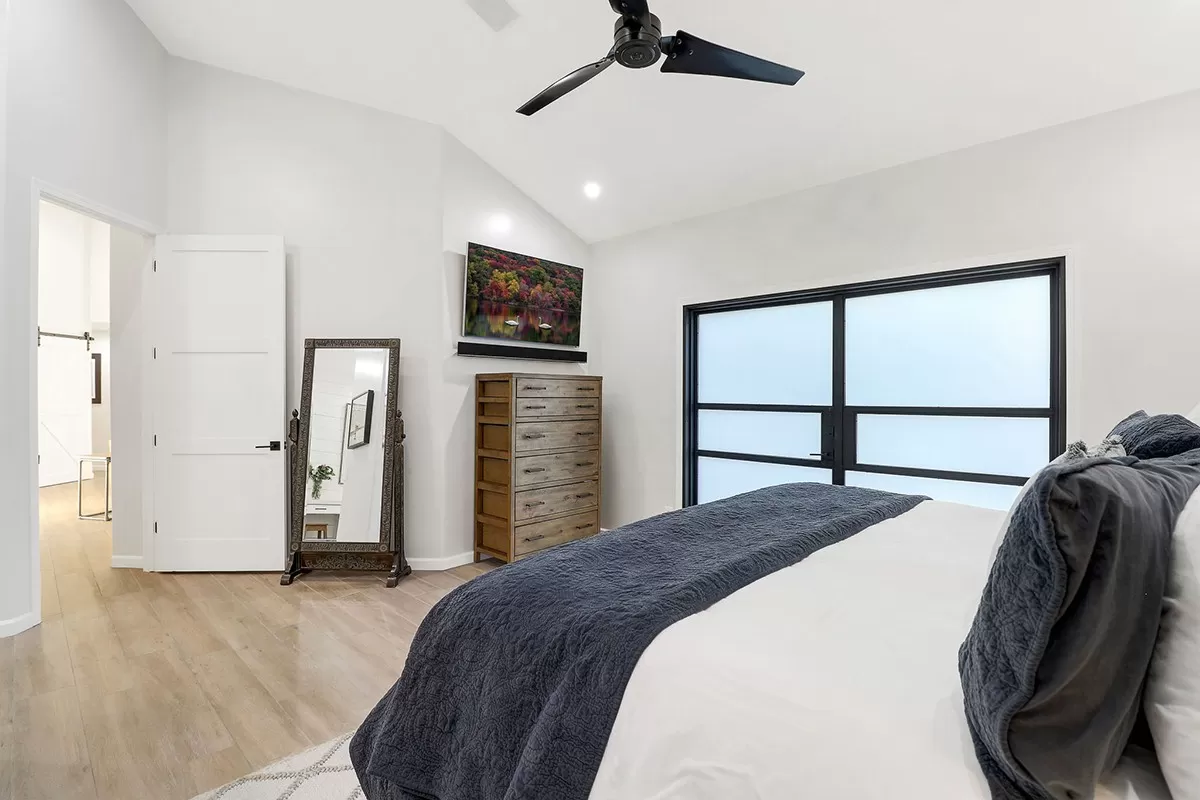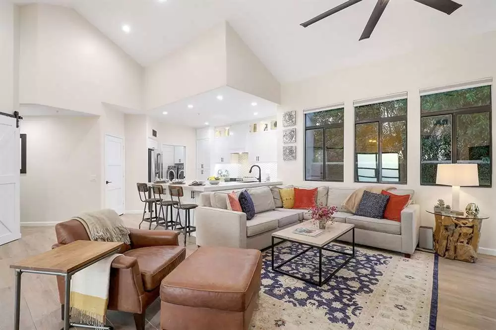 Perfect for either a seasonal or full-time easy care residence, this two bedroom plus den (or third bedroom!) and two bath home showcases high ceilings, wood look tile floors throughout, great room open floor plan, shiplap and patterned tile accents, sliding barn doors, and a two car garage with electric charger and epoxy floors.