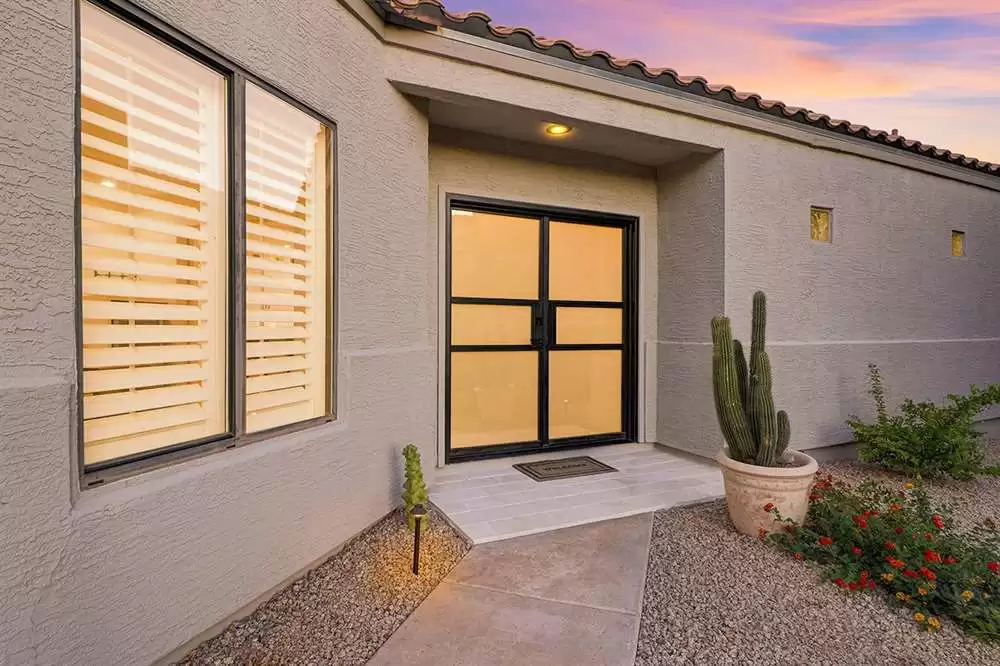On trend custom finishes and design define this gorgeous remodel in the desirable resort style community of Los Portones in North Scottsdale.