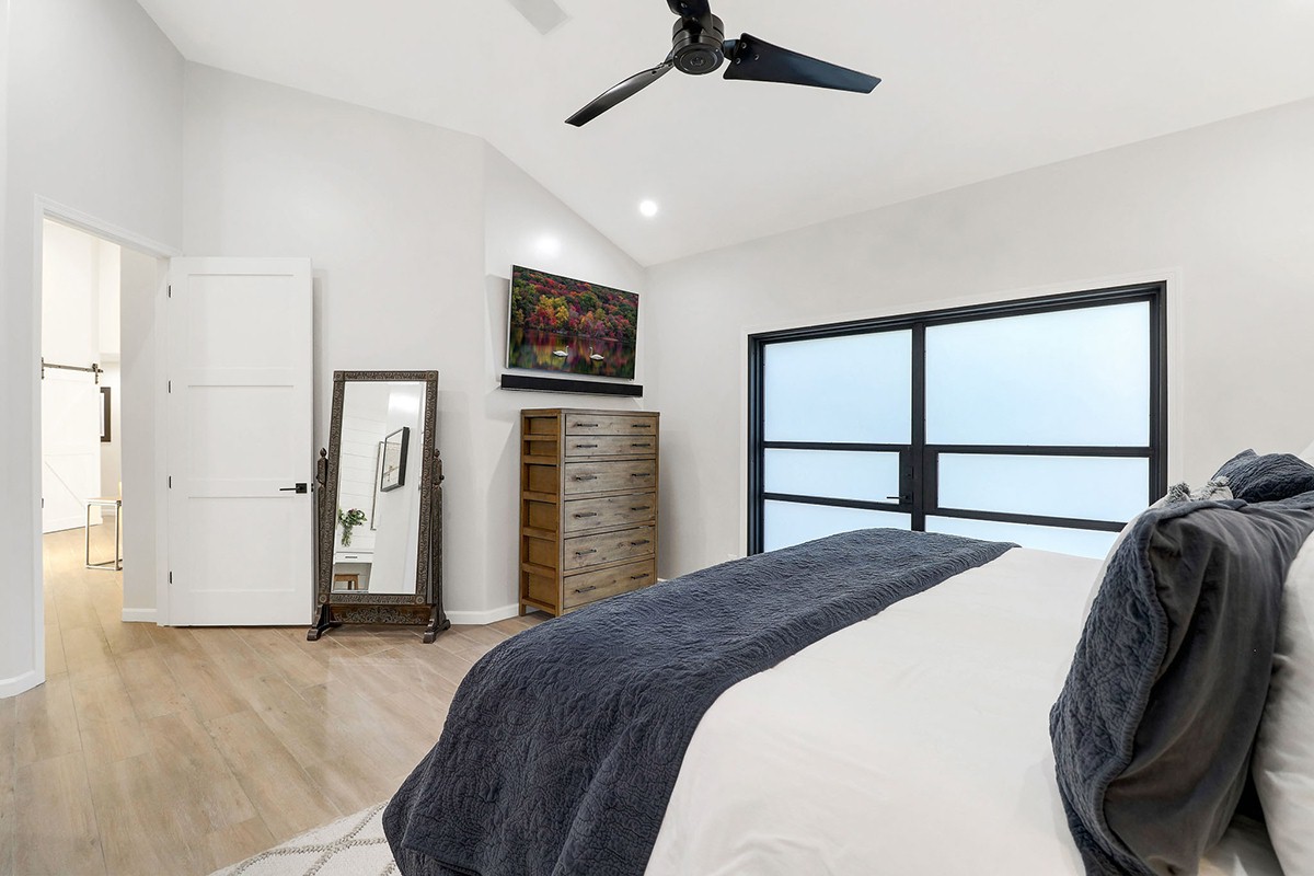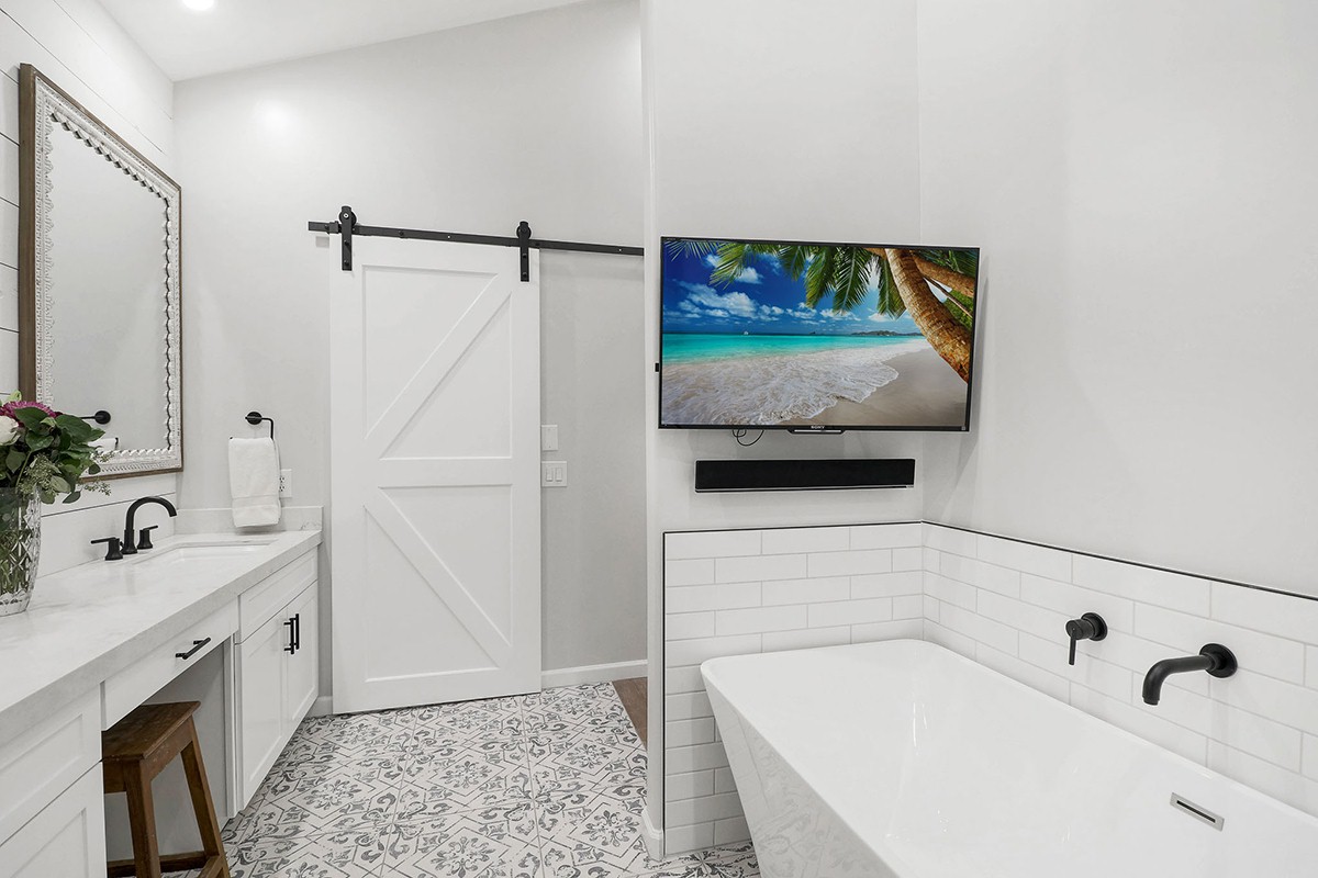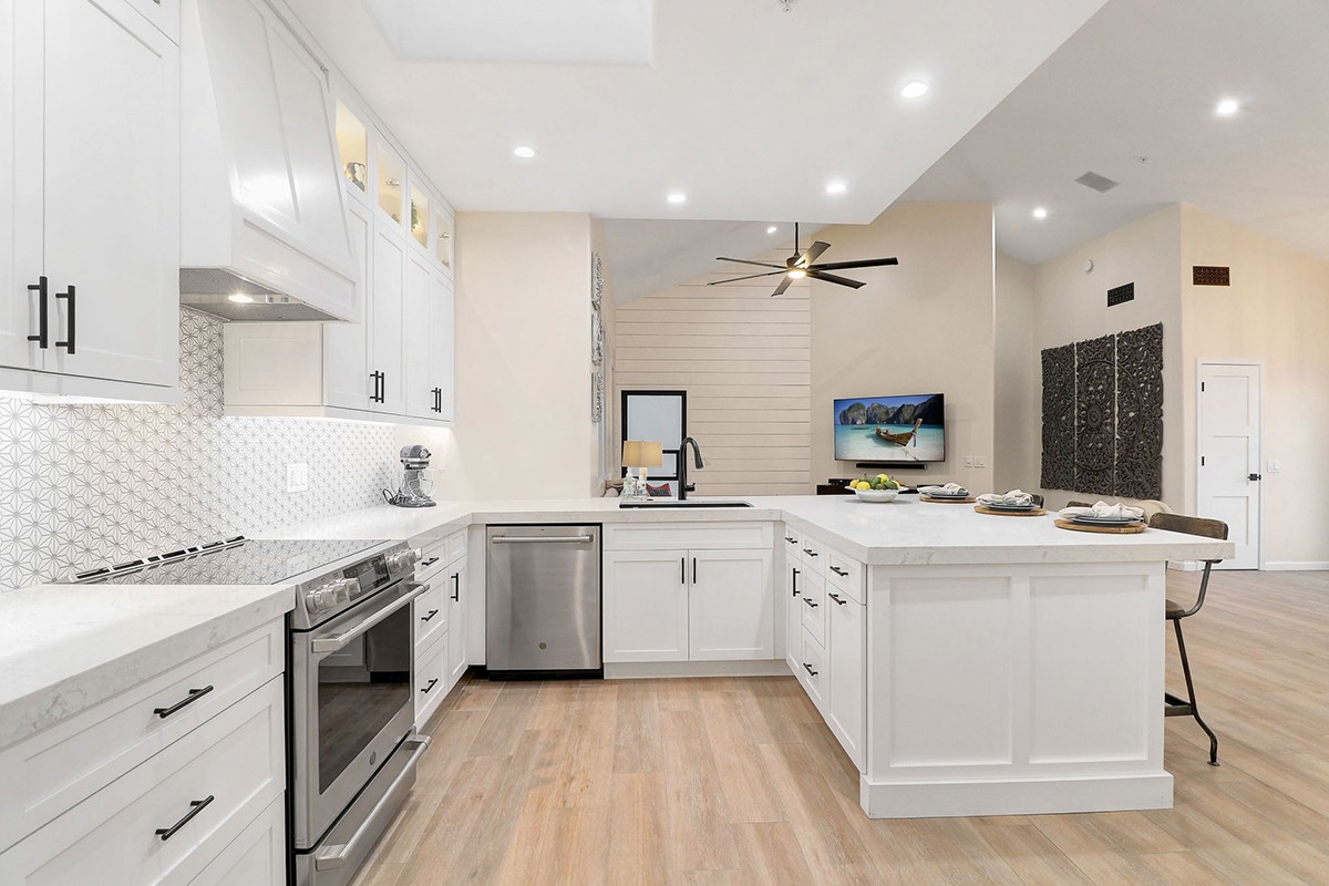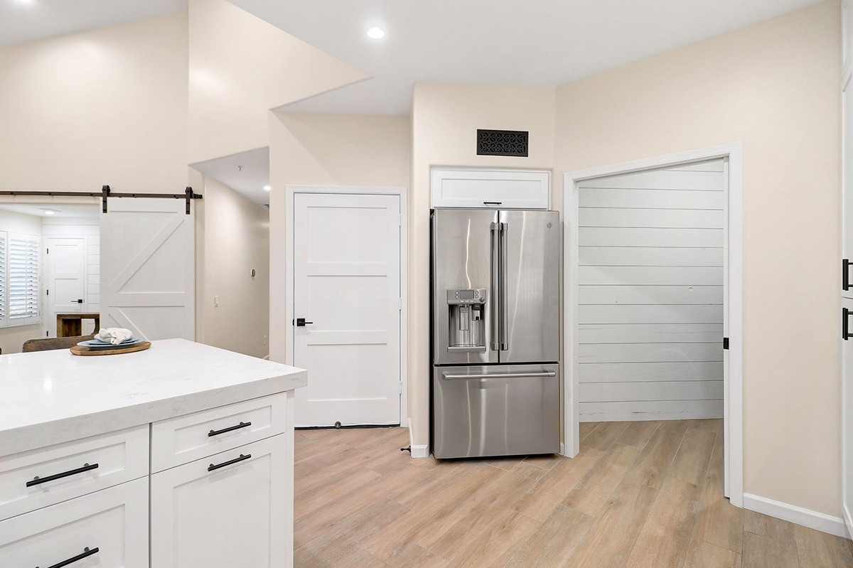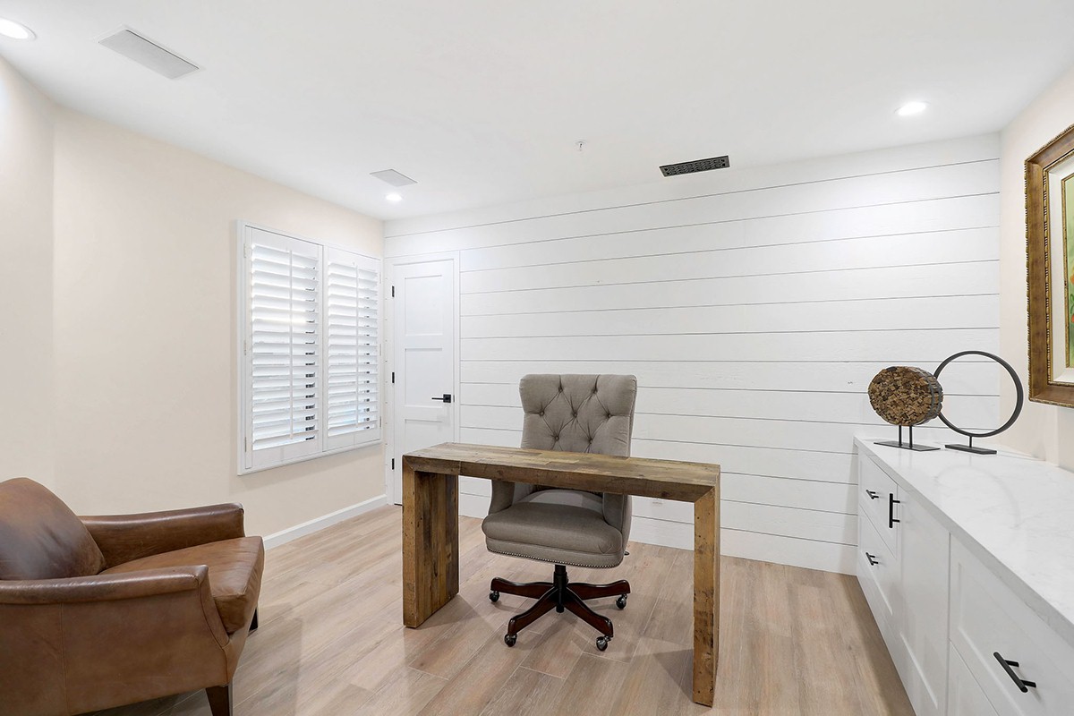 Perfect for either a seasonal or full-time easy care residence, this two bedroom plus den (or third bedroom!) and two bath home showcases high ceilings, wood look tile floors throughout, great room open floor plan, shiplap and patterned tile accents, sliding barn doors, and a two car garage with electric charger and epoxy floors.