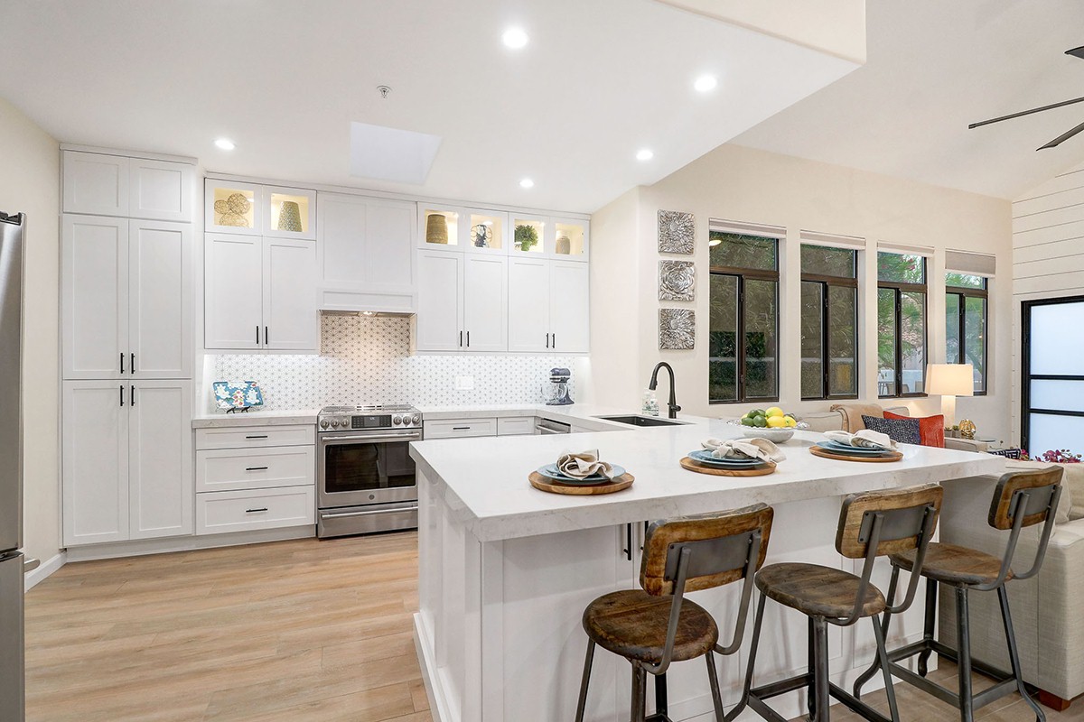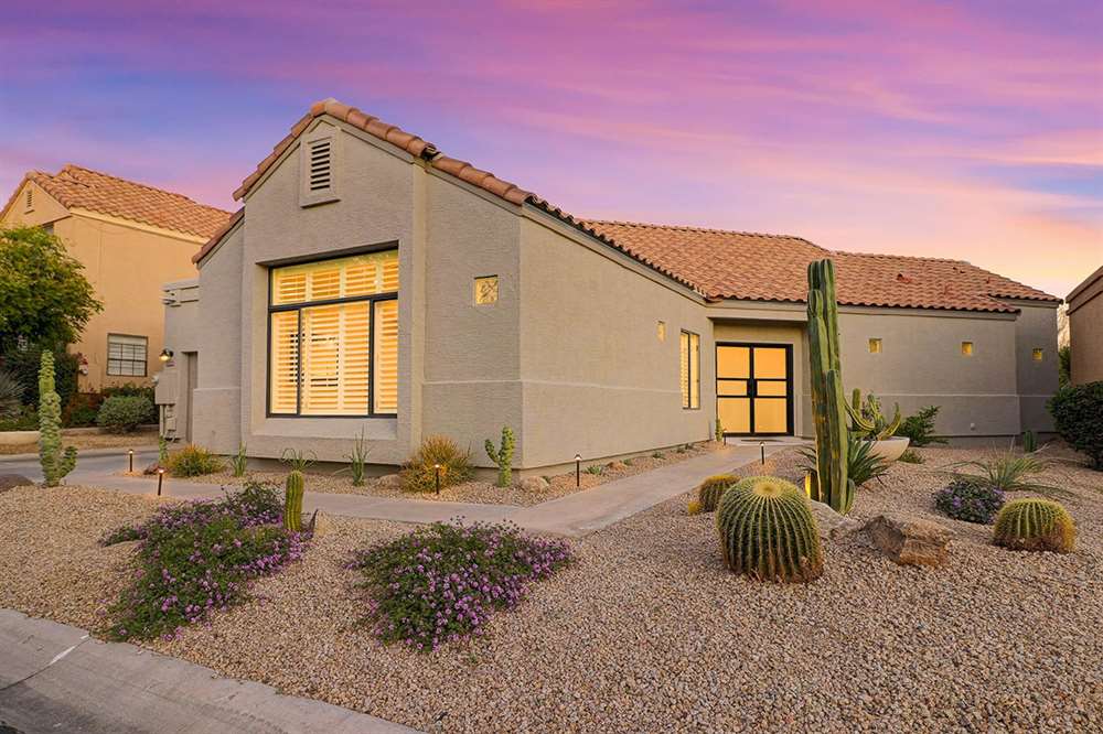 On trend custom finishes and design define this gorgeous remodel in the desirable resort style community of Los Portones in North Scottsdale.