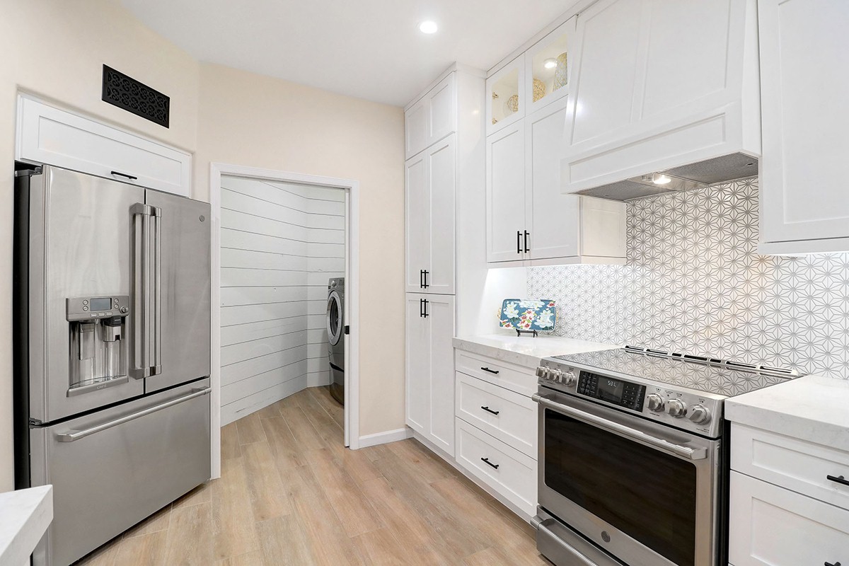 The kitchen has ample storage, soft close cabinetry, tile backsplash, quartz counters, stainless steel appliance package and an eat-in breakfast bar. This serene, quiet, and gated subdivision features a community pool and paved paths for walking and jogging, all within walking distance to top notch shopping and dining.
