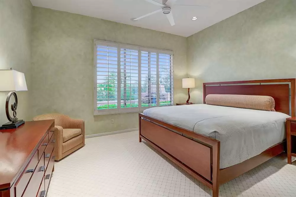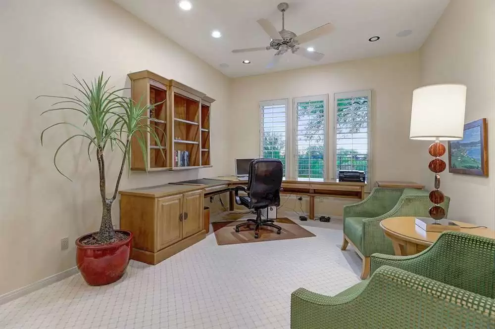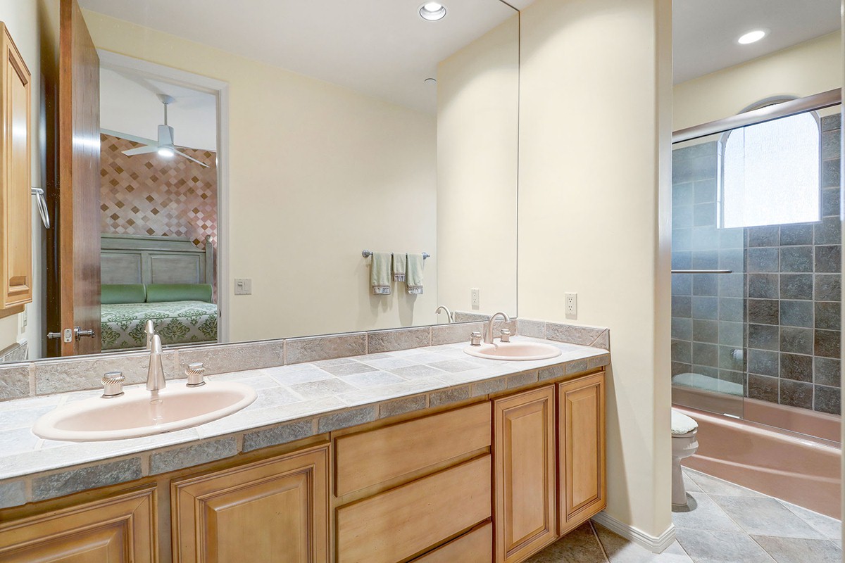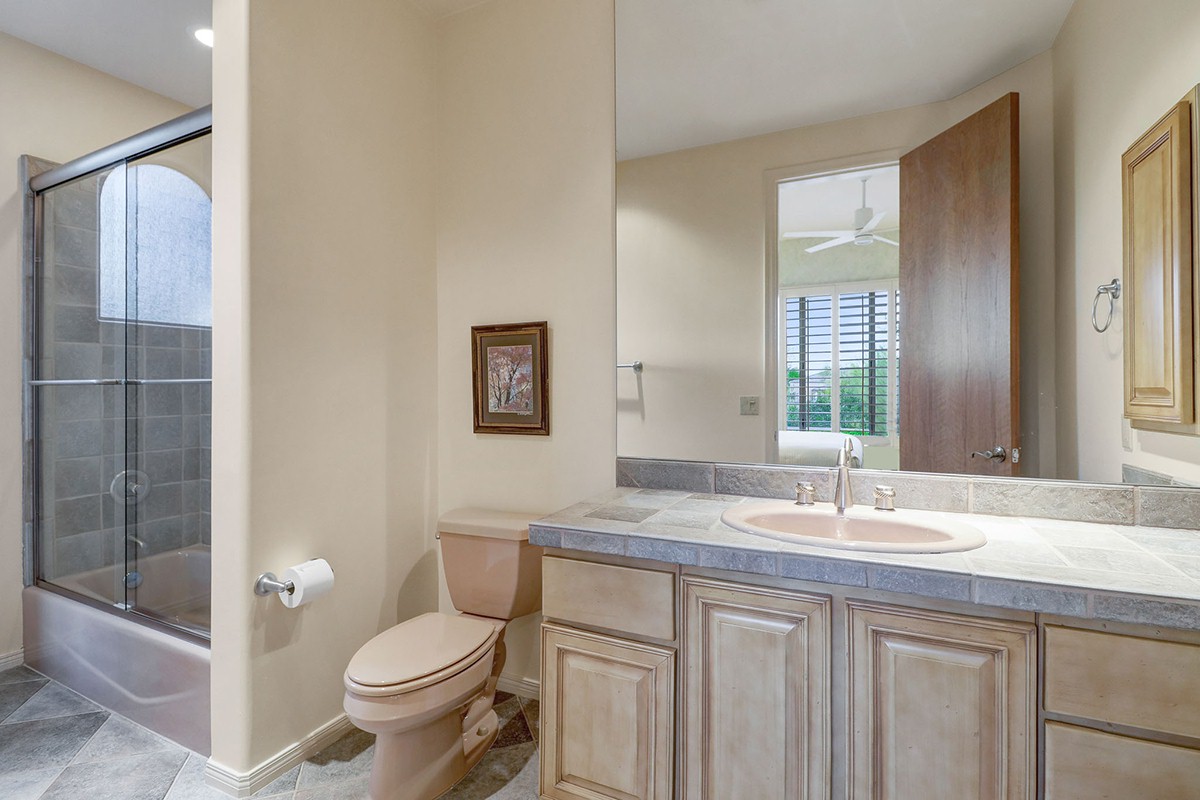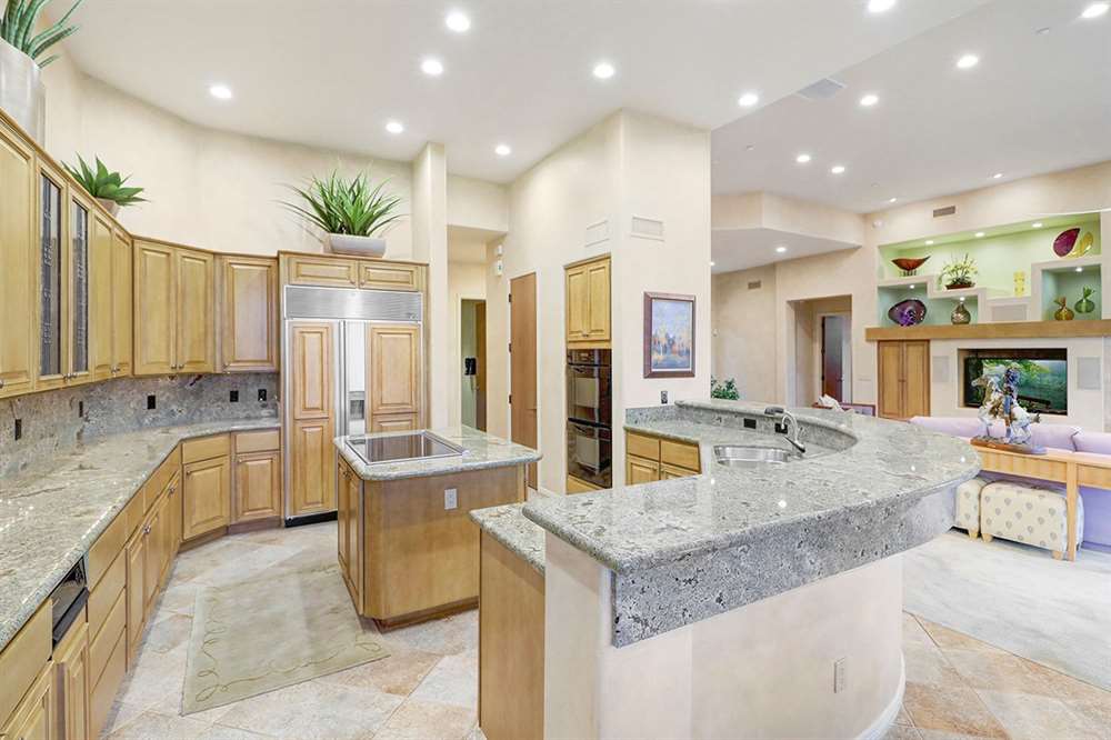 The home features a main house and attached guest house with separate entry combining for over 4,000 SF of living space. Vaulted ceilings, plantation shutters and mechanical sunscreens, great room setting, alder cabinetry, Italian stone flooring, split floor plan, four spacious bedrooms (one in the casita) plus a den, four and a half bathrooms (one in the casita), and a three car garage lay the perfect foundation for you to make this home your own.