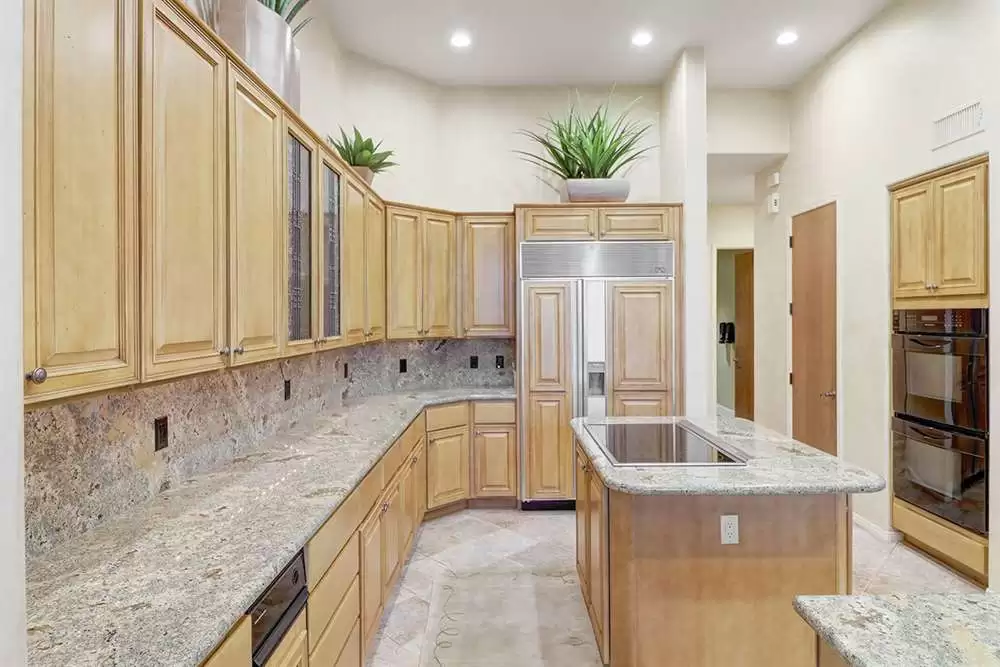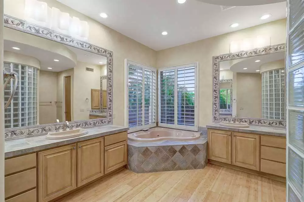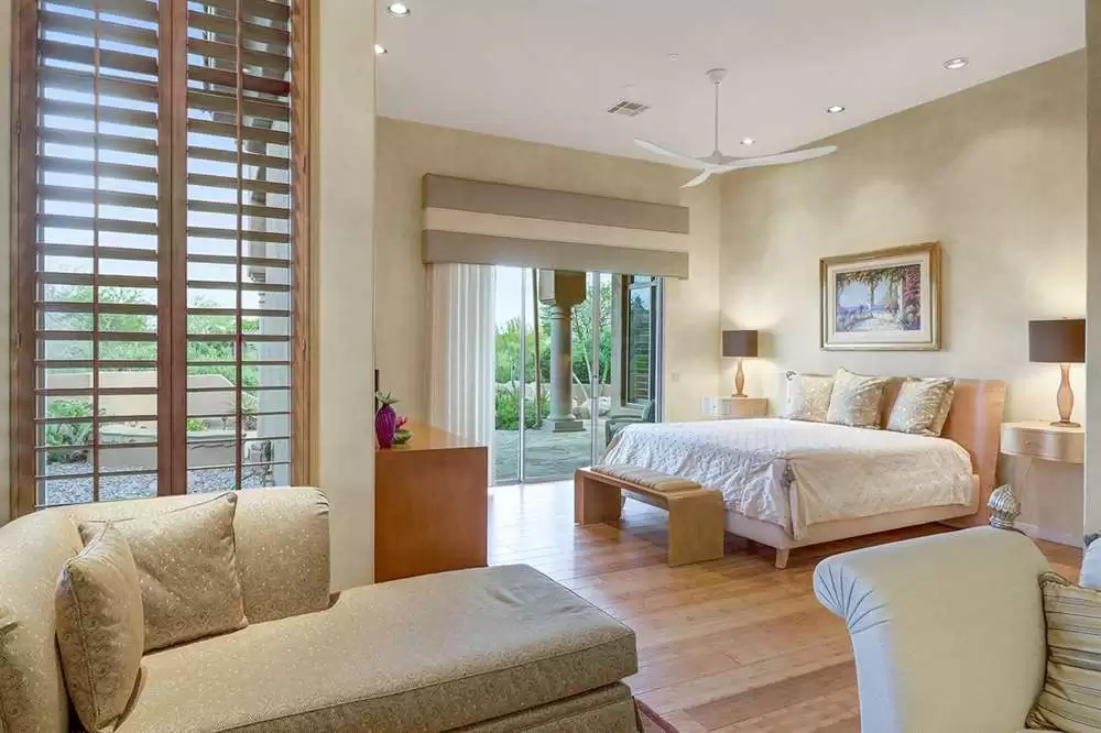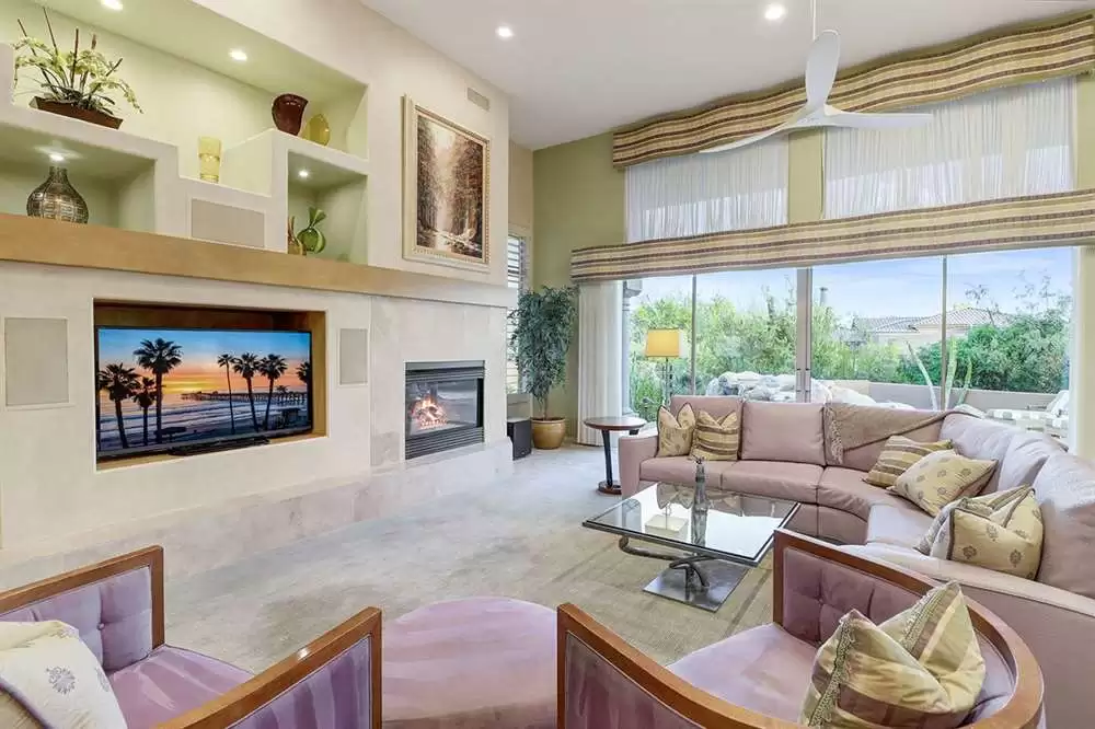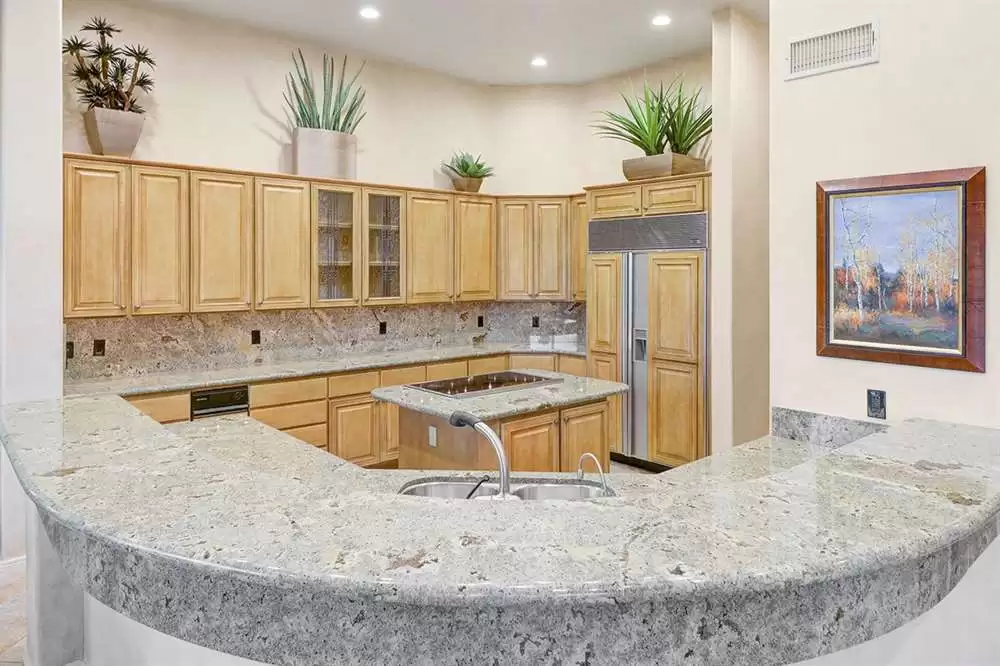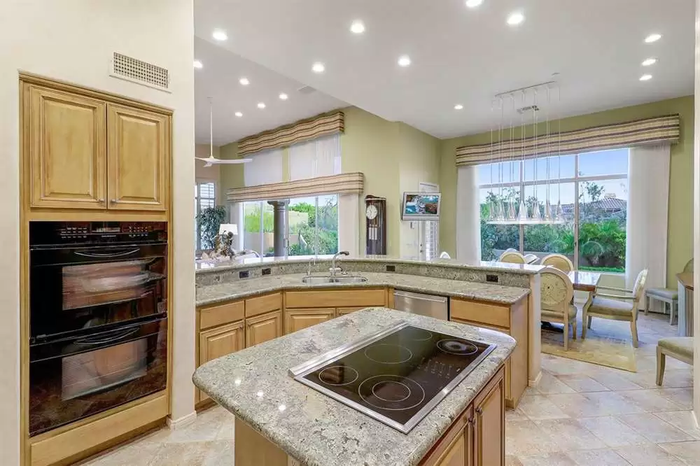 The home features a main house and attached guest house with separate entry combining for over 4,000 SF of living space. Vaulted ceilings, plantation shutters and mechanical sunscreens, great room setting, alder cabinetry, Italian stone flooring, split floor plan, four spacious bedrooms (one in the casita) plus a den, four and a half bathrooms (one in the casita), and a three car garage lay the perfect foundation for you to make this home your own.