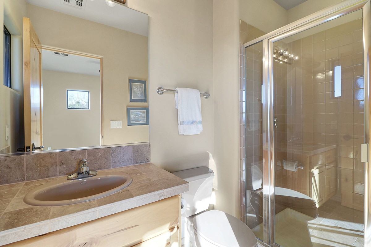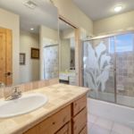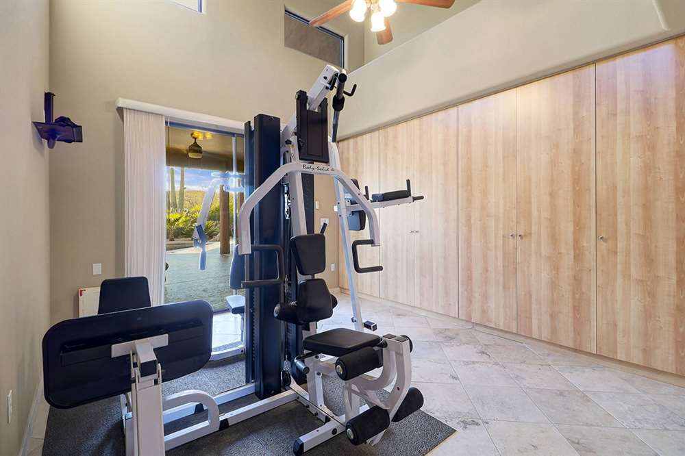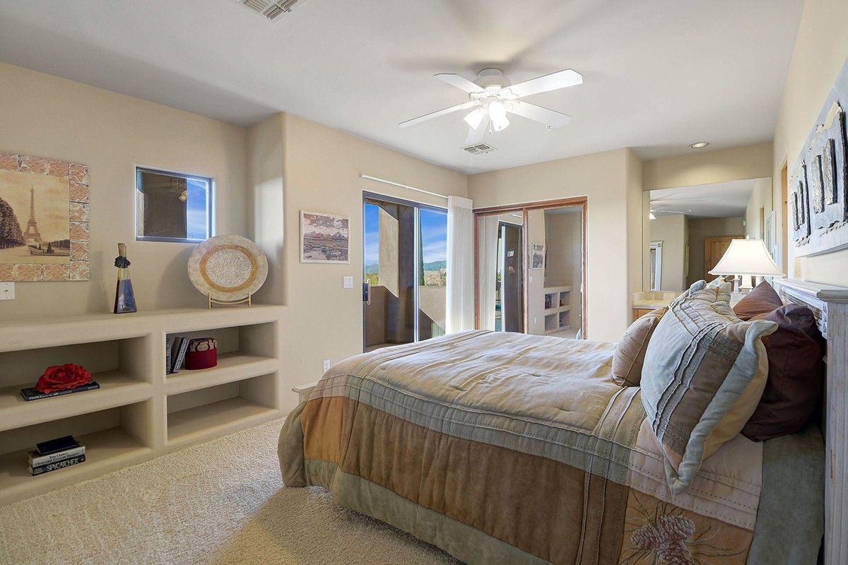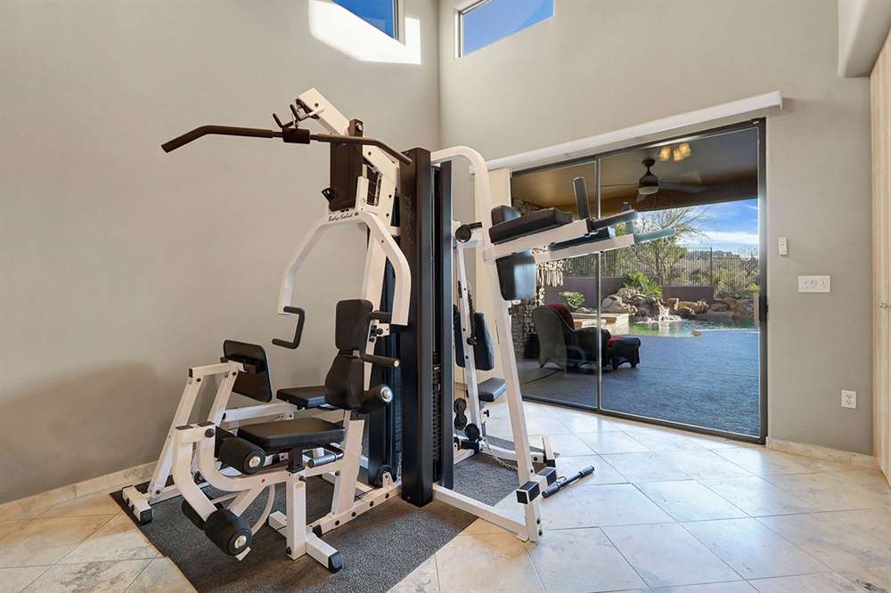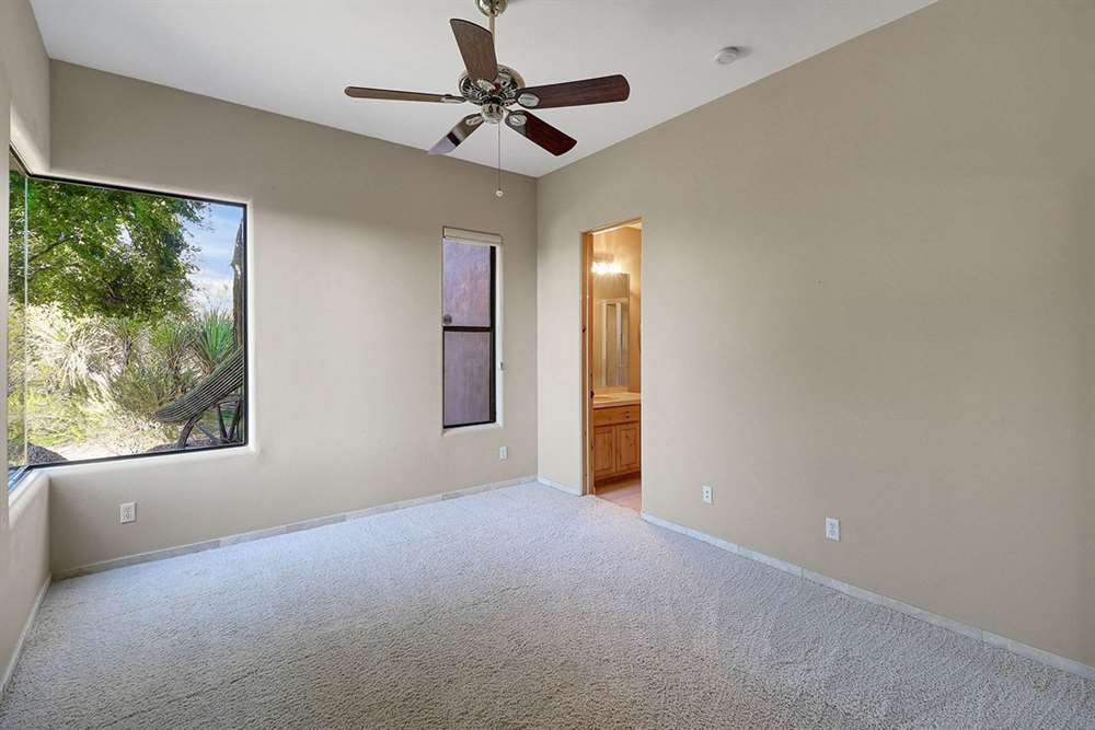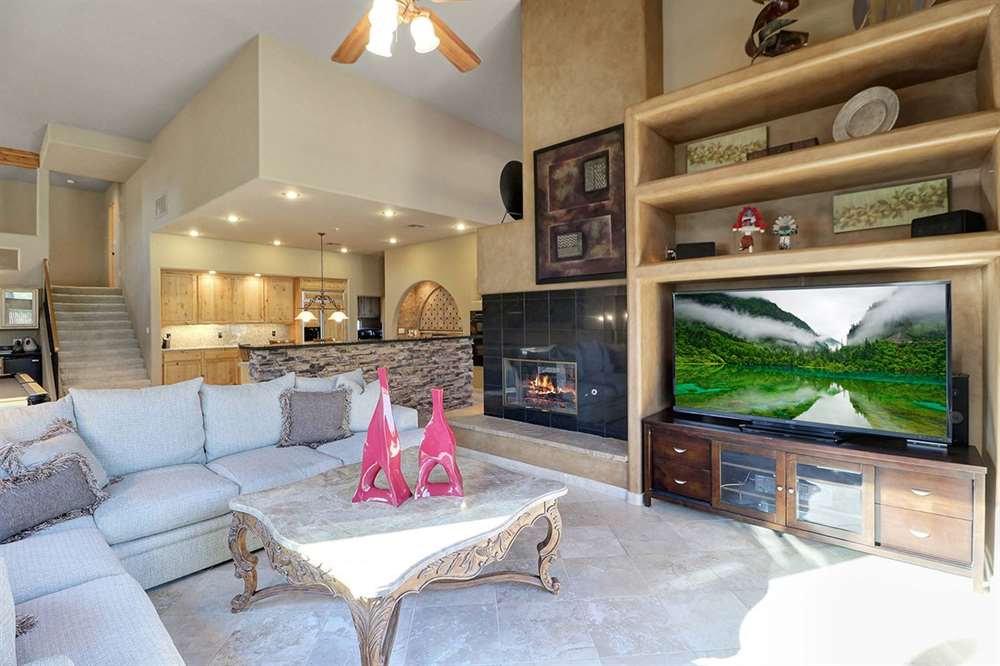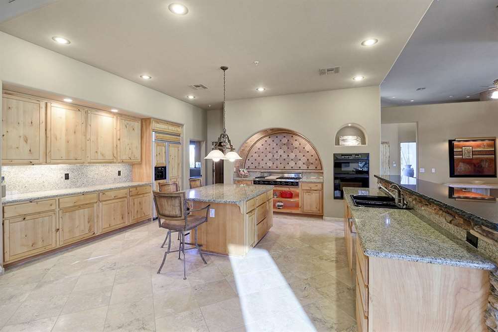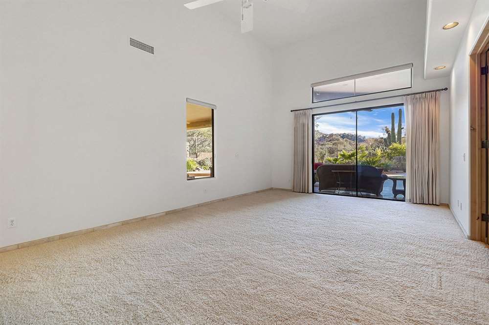 Step outside to the over 800 square feet of covered patio areas including multiple lounge and dining areas, built-in barbecue, stacked stone fireplace, heated pool and spa with rock waterfall feature, mature desert landscaping and views of Troon boulder formations. The owned solar panels provide alternate power to the home for added efficiency and cost savings.