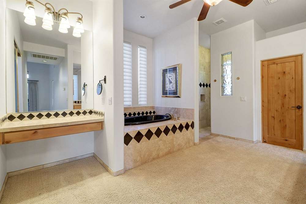 The first floor master retreat has a large spa-like bath with an attached exercise room that could be used as a flex space, with an adjacent guest bedroom perfect for a home office or extra guest space on the same wing. Formal living and dining spaces, overlook the front and backyard and offer dedicated spaces for entertaining.