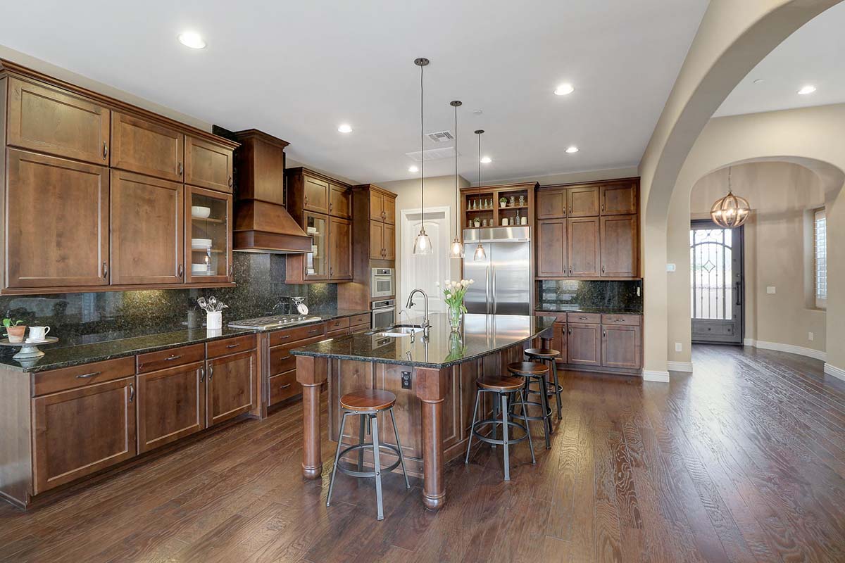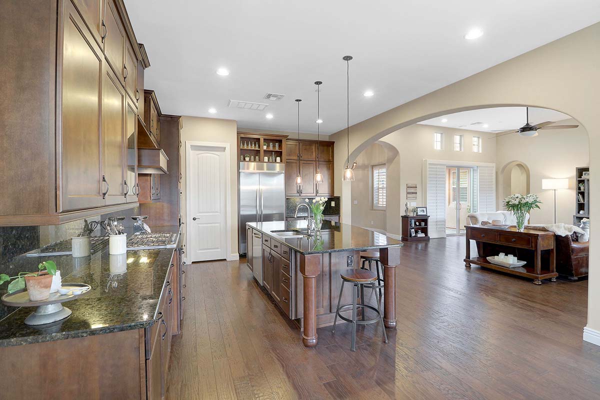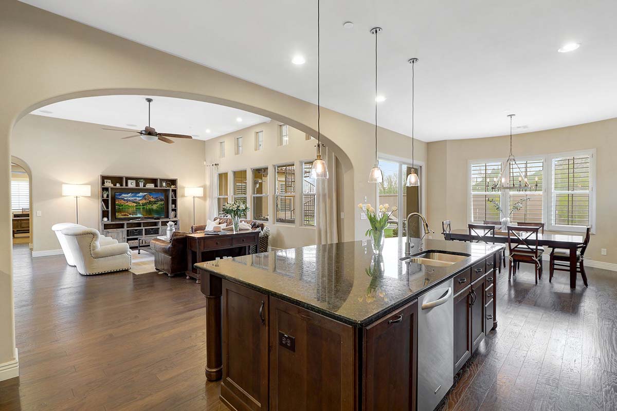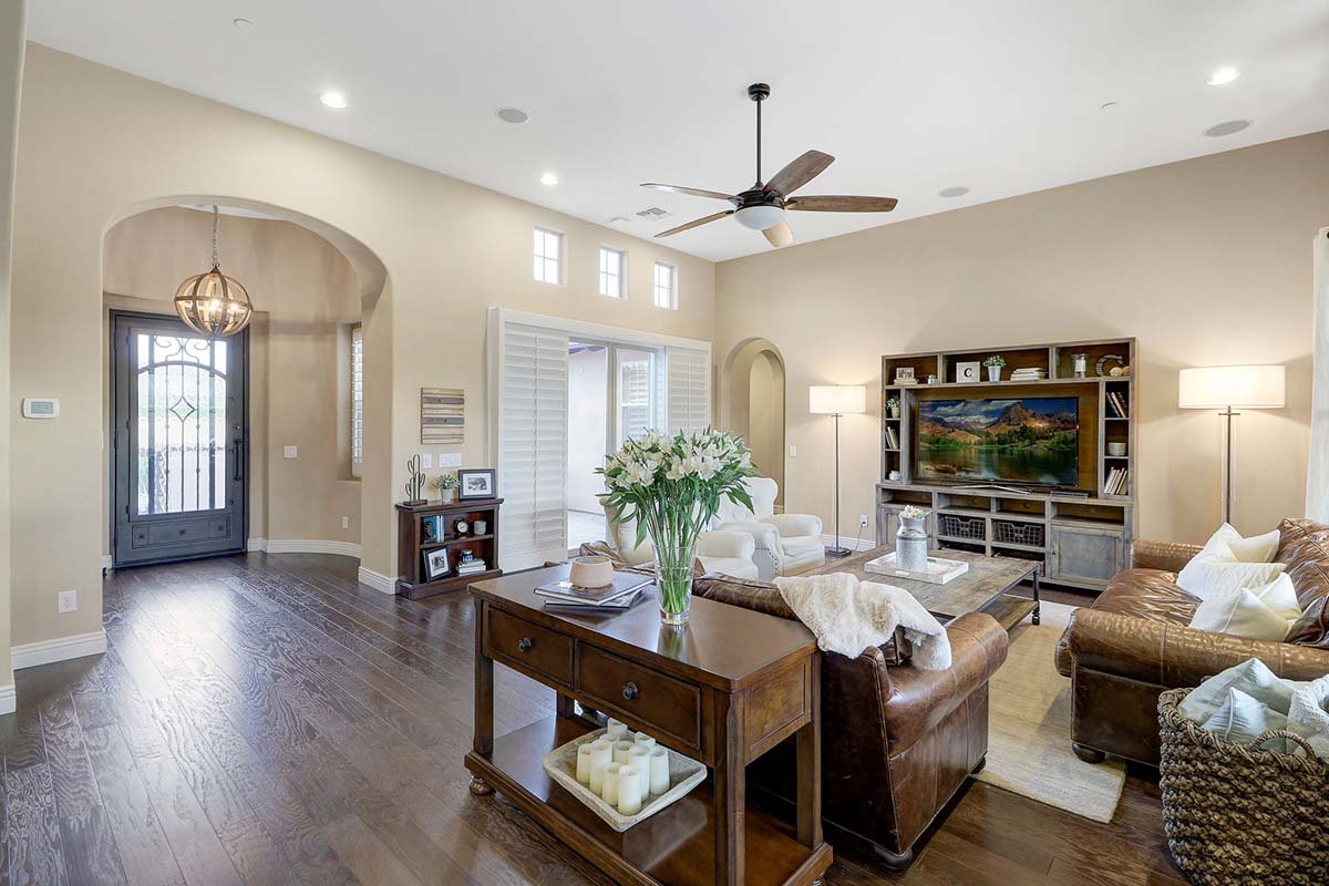 This meticulously maintained 2014 build in charming and gated Quisana features a great room floor plan with warm finishes and lots of natural light. The front courtyard allows for additional outdoor living space, accented by a brick entry way finish and direct views of Pinnacle Peak and boulder outcroppings upon entering.