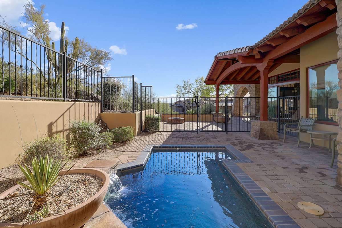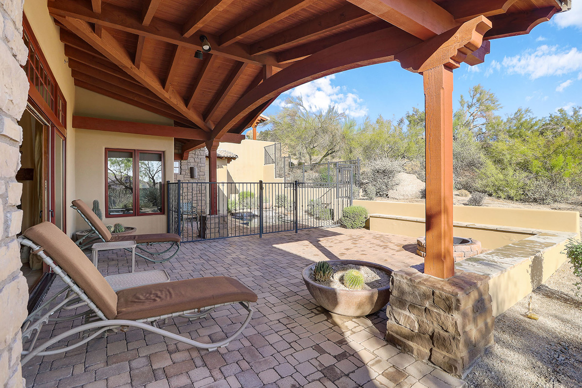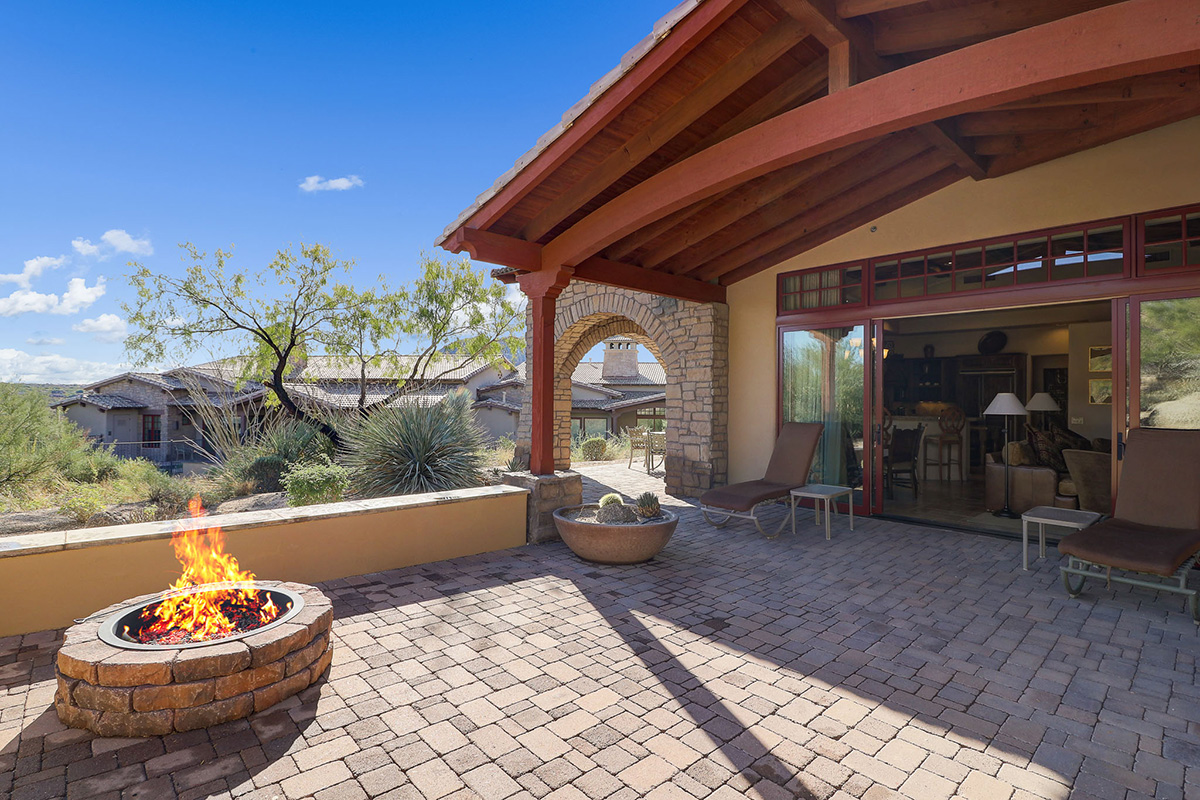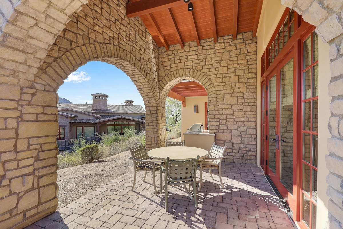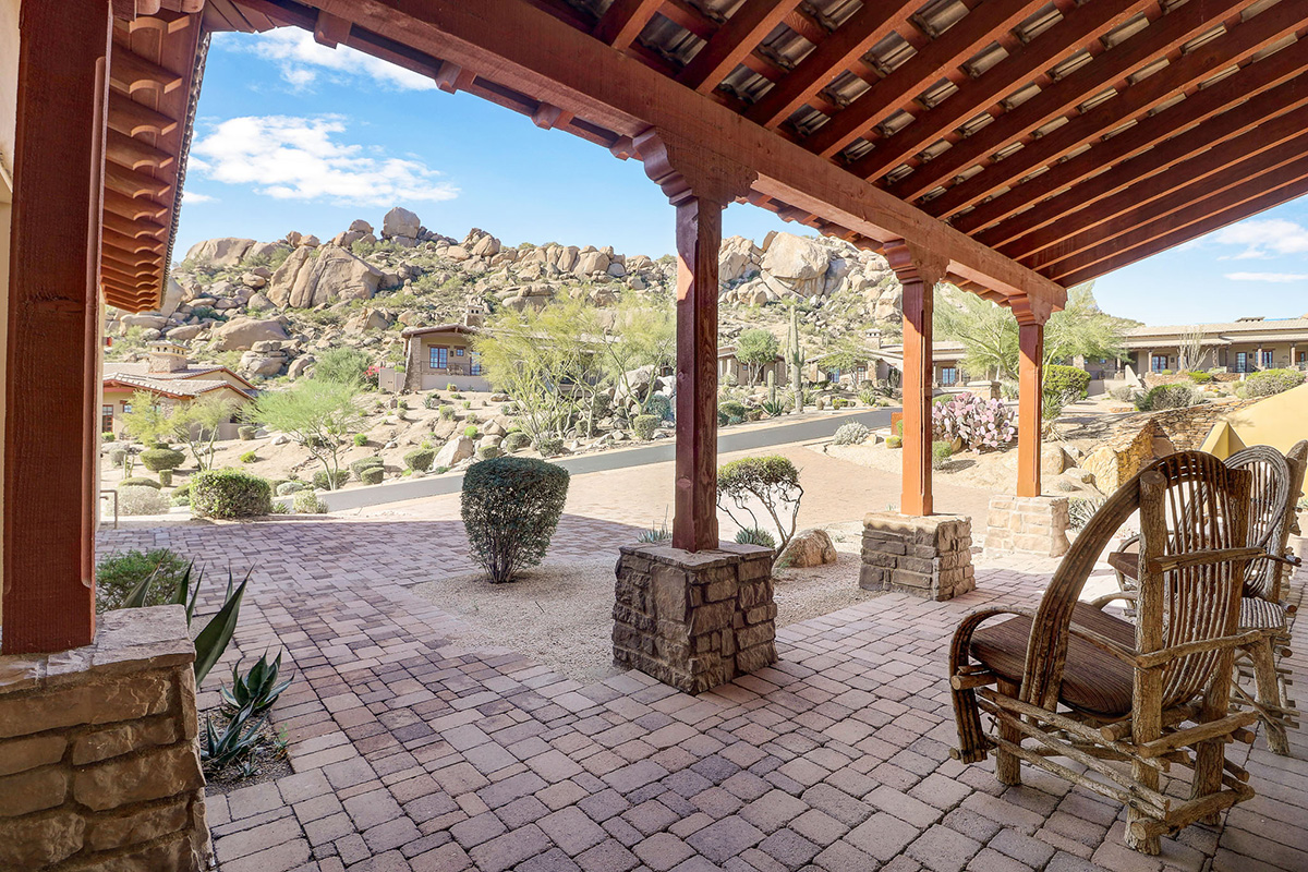 Villa 121 is a fully furnished 3-bedroom/3 bath Villa at The Rocks. There are 40 Villas at The Rocks on approximately 22 acres of breathtaking high Sonoran Desert located next to the Four Seasons Resort in N. Scottsdale. This Villa is 1 of the 30 of Villas are that are fully owned. The Rocks is a resort property that delivers high-end resort amenities – designed for the owner that wants everything taken care of for them. Tucked in the center of the development this beautifully furnished Hacienda Villa has dramatic views of large boulder outcroppings that you can enjoy from the patio with private plunge pool. Great Room floor plan opens to gourmet kitchen with Wolf/Sub-Zero Appliances.