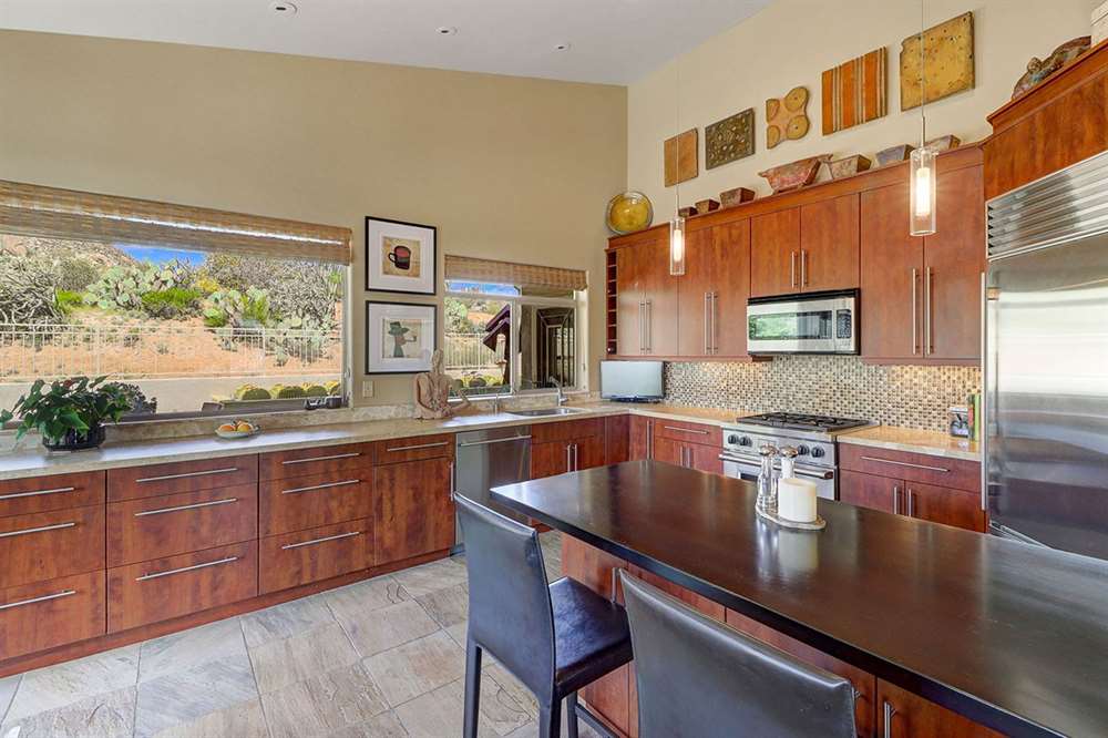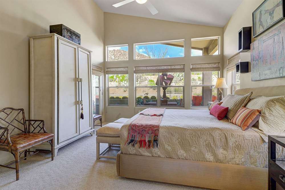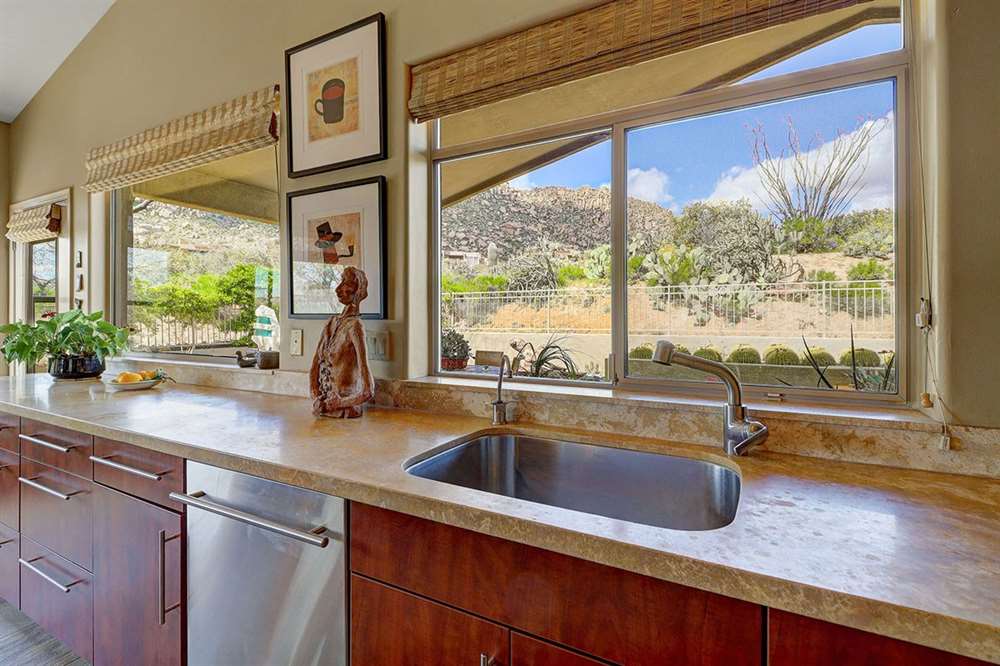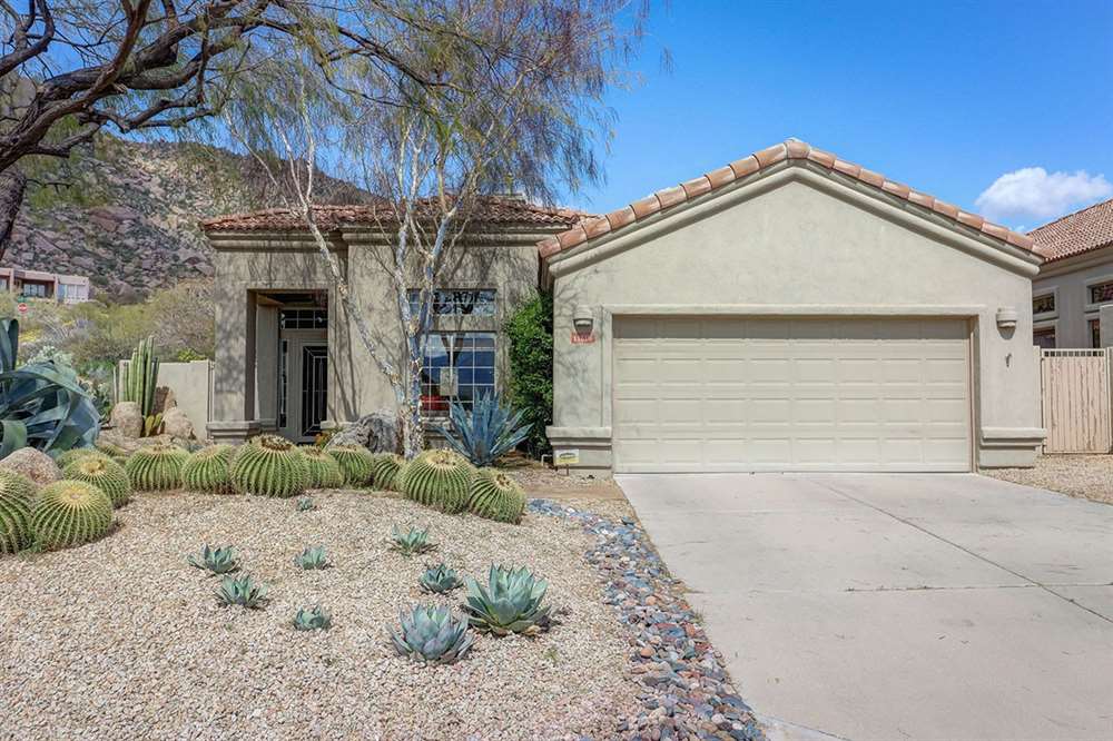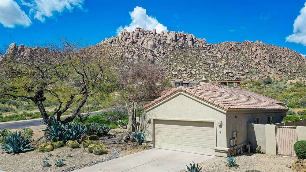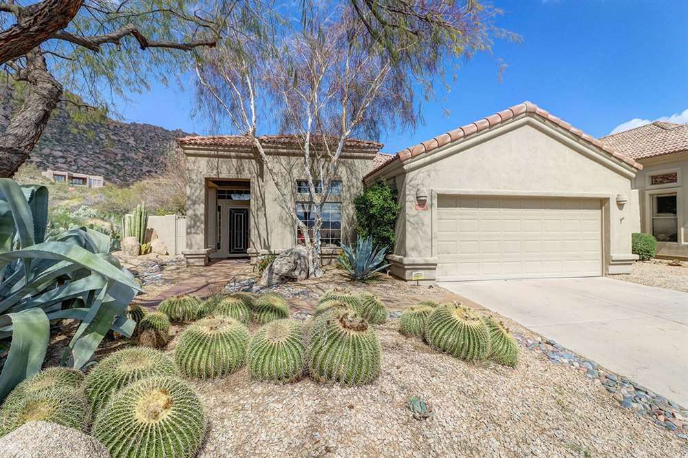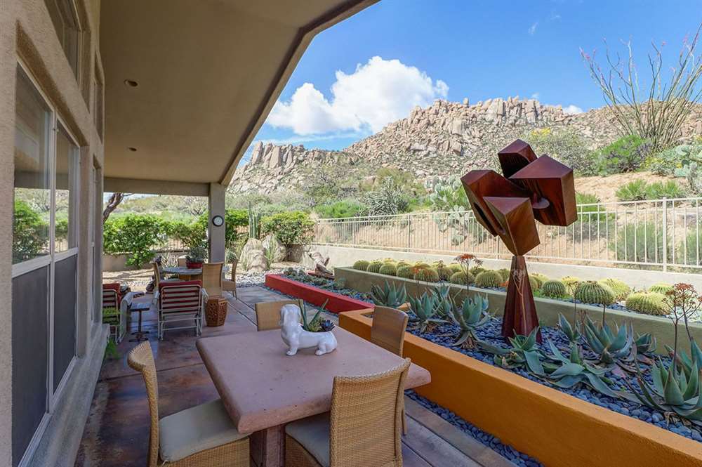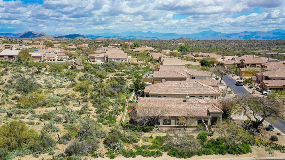 The backyard has an extended covered patio highlighting the mountain views, stained concrete hardscape finish, overlapping cactus and bamboo garden planters, allowing for private backyard setting with no one behind you. Don’t miss out on this Troon Village home!