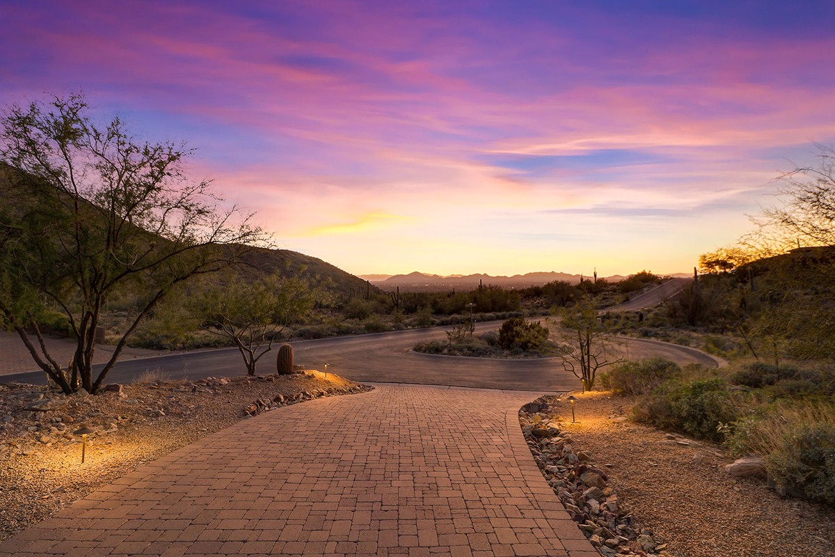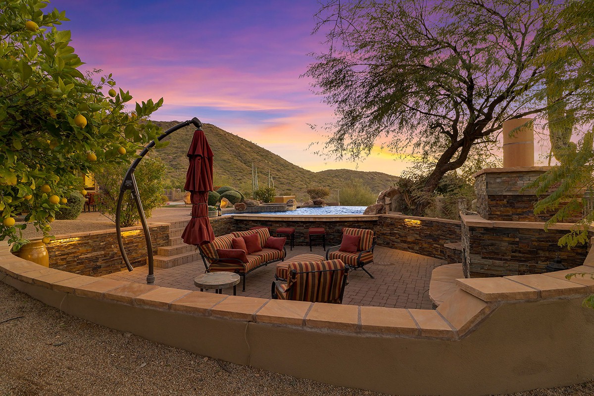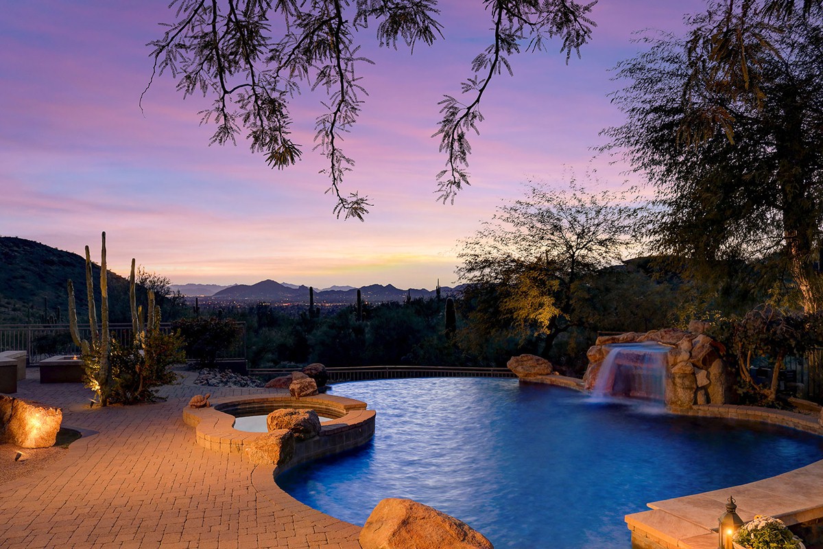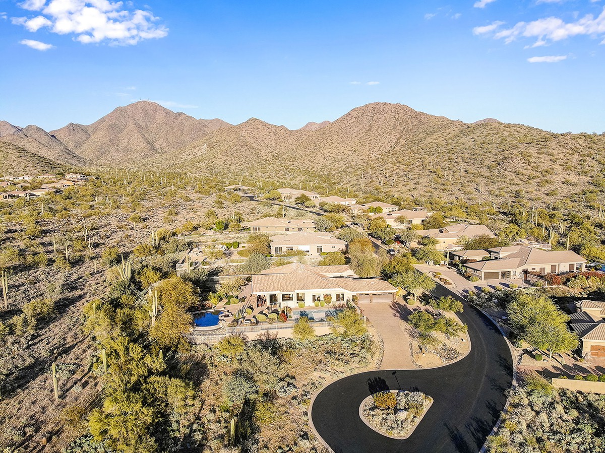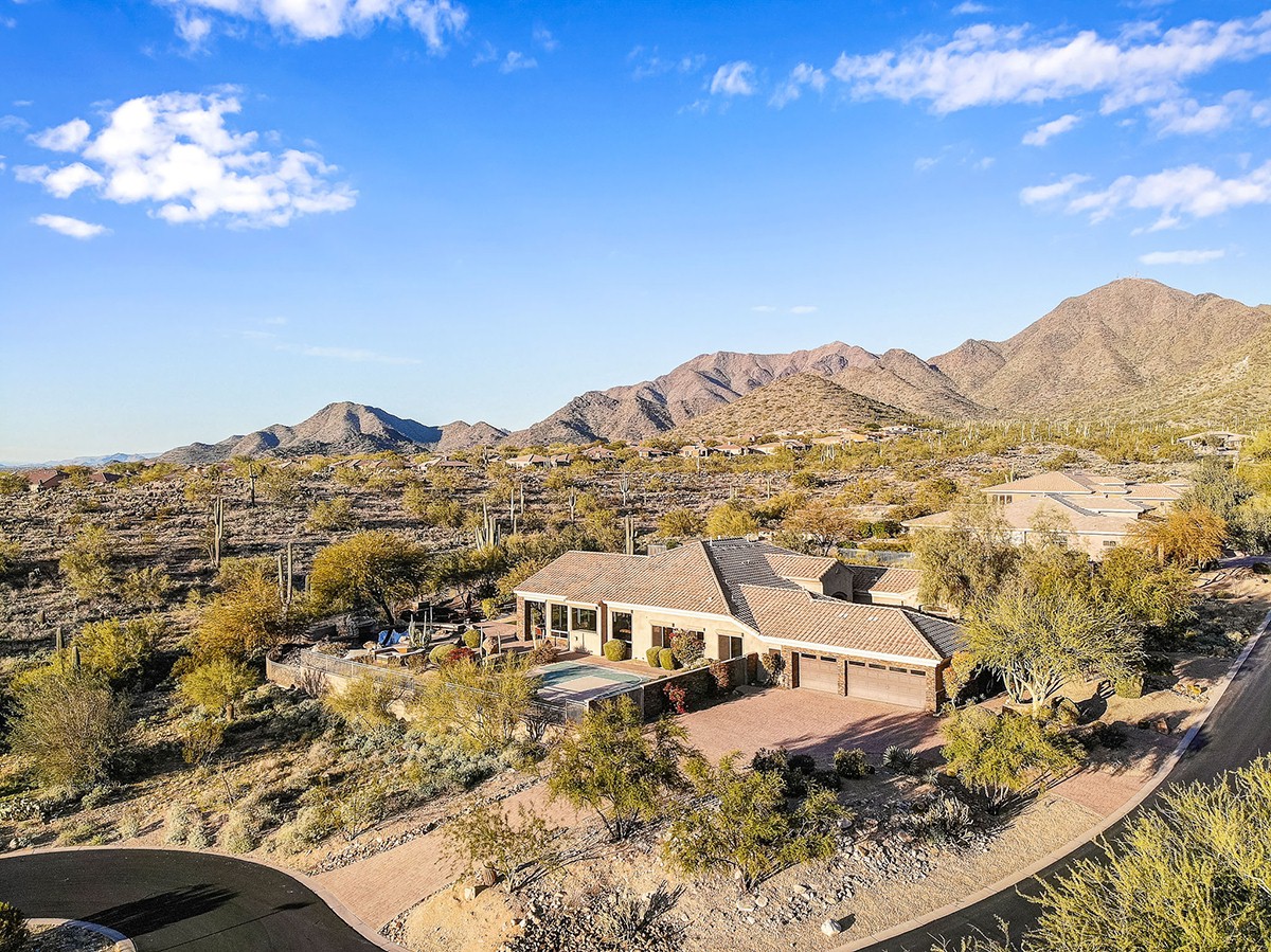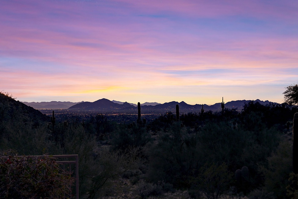 Nestled up in the McDowell Mountain range and surrounded by protected preserve, this stunning custom has direct city light and mountain views.