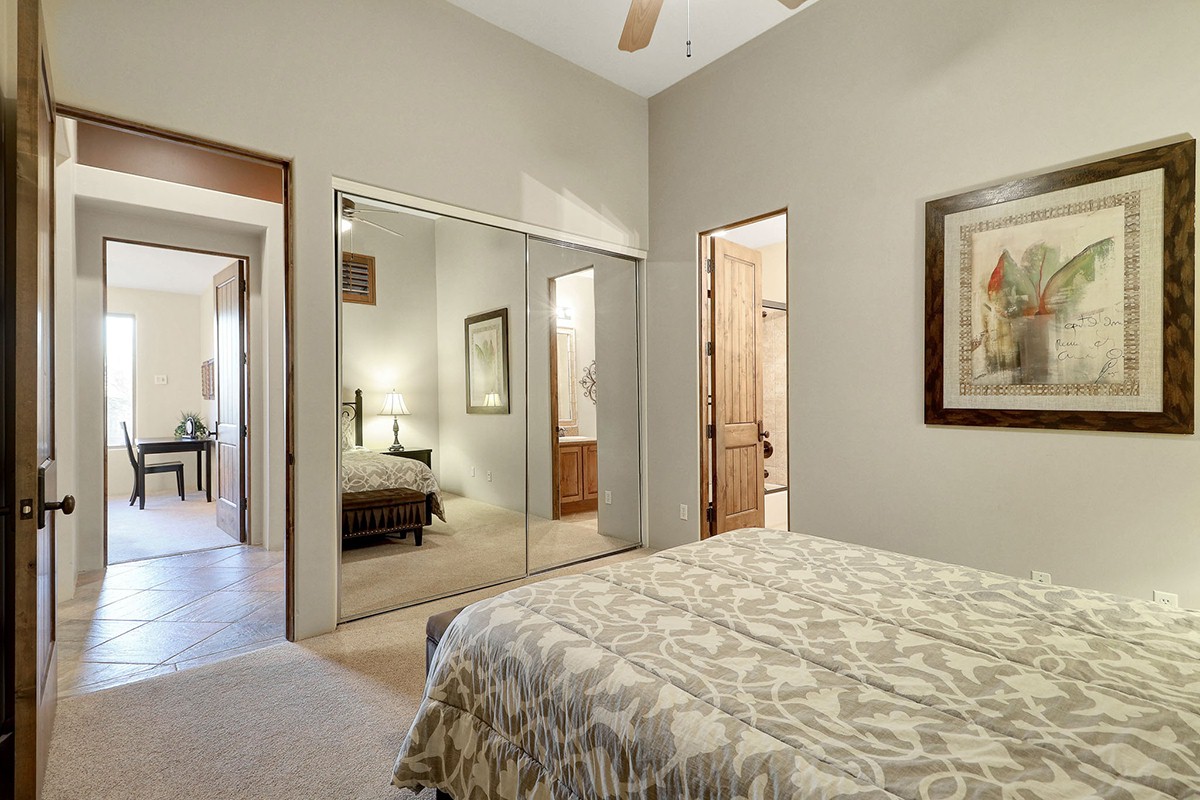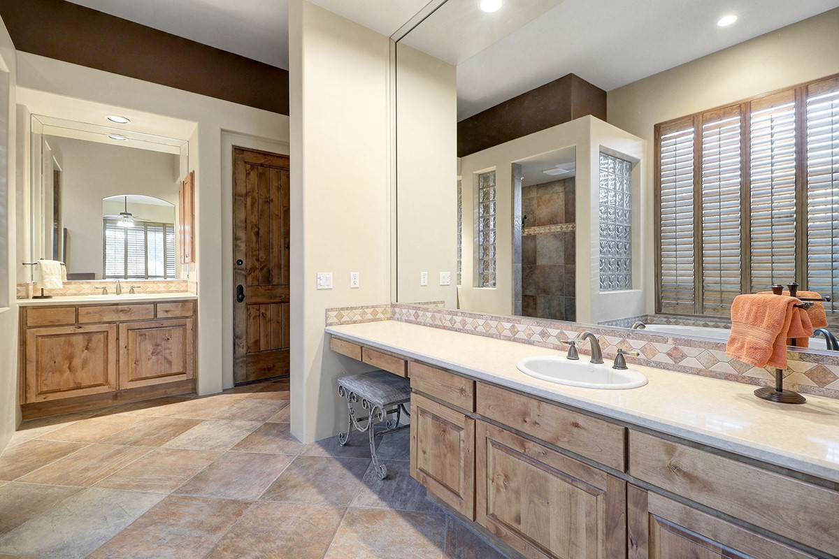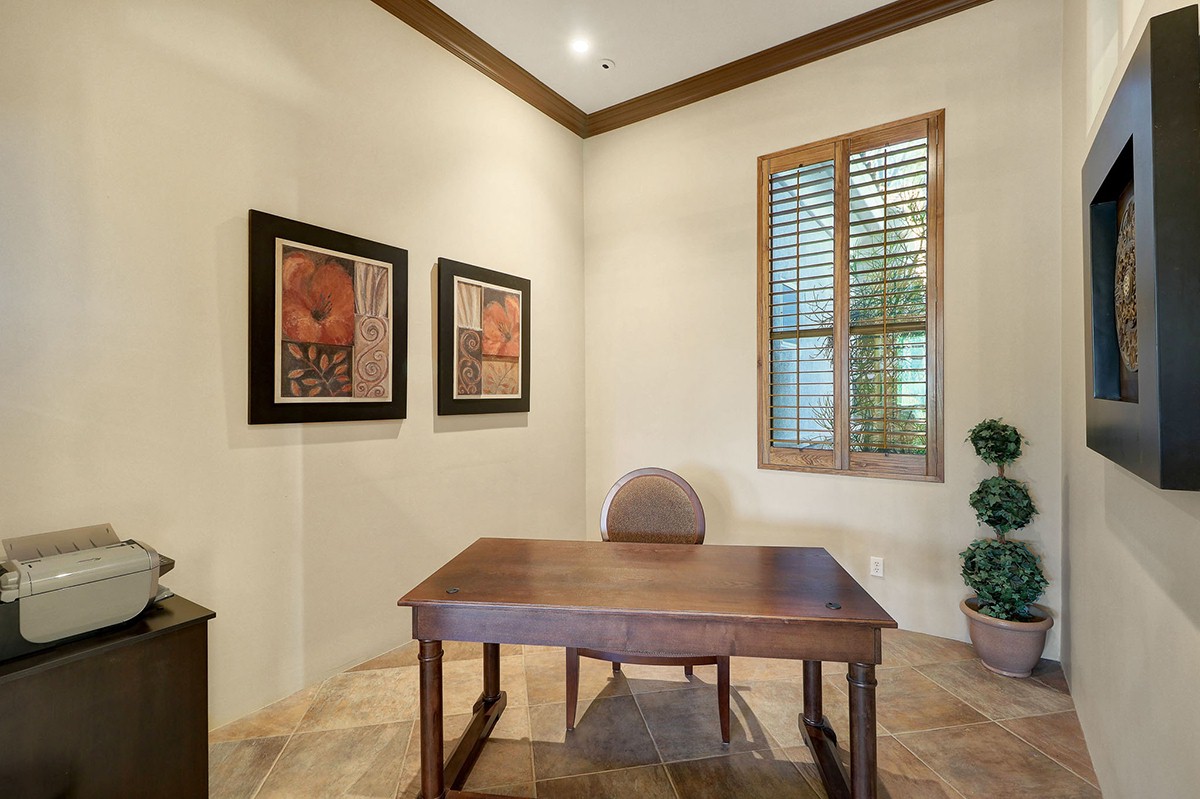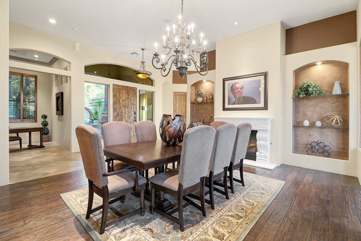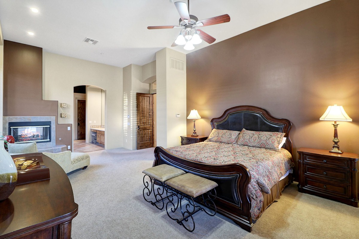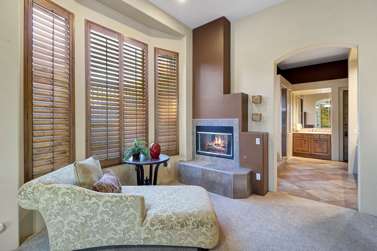 Formal living and dining spaces add additional living and entertaining areas. The master suite has a private patio access, cozy fireplace with lounge area, spacious bath with dual vanities, soaking tub, walk-in shower and walk-in closet.