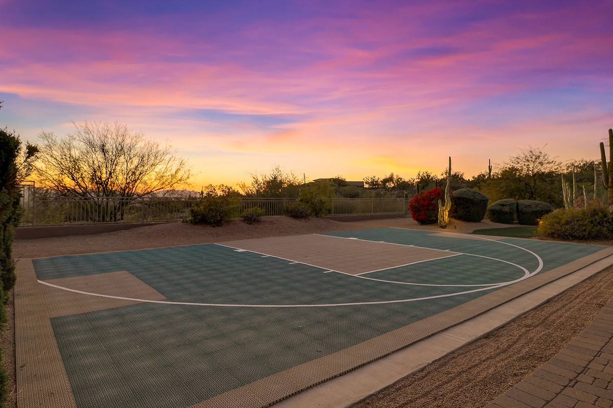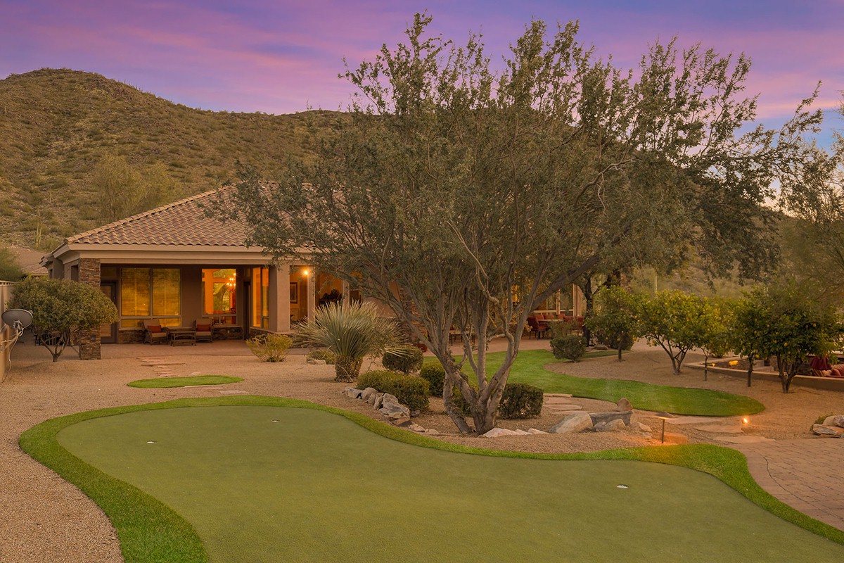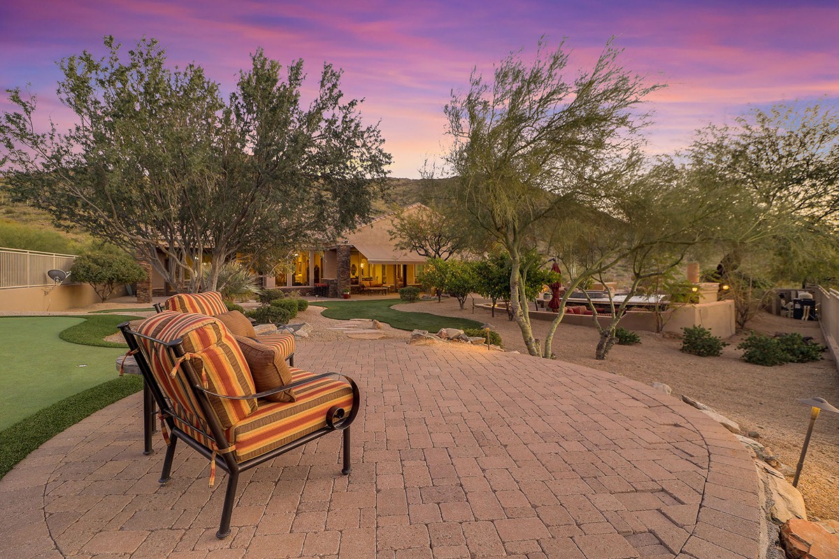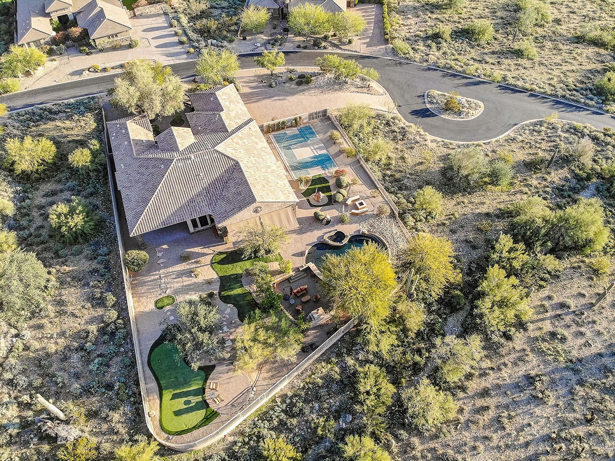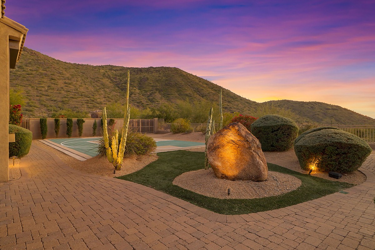 Privacy abounds for this 3,900 plus SF home on a 1.78 acre lot located in the gated Sonoran Estates II at McDowell Mountain Ranch. The outdoor living spaces are perfect for entertaining with tumbled pavers, large covered patio, negative edge pool with waterfall grotto, recessed patio with fireplace and poolside bar seating, sports court, five hole putting green, built-in barbecue, retractable awnings, mature landscaping with lighting, fruit trees, fire pit with built-in seating, numerous lounge and dining area, all with endless views.