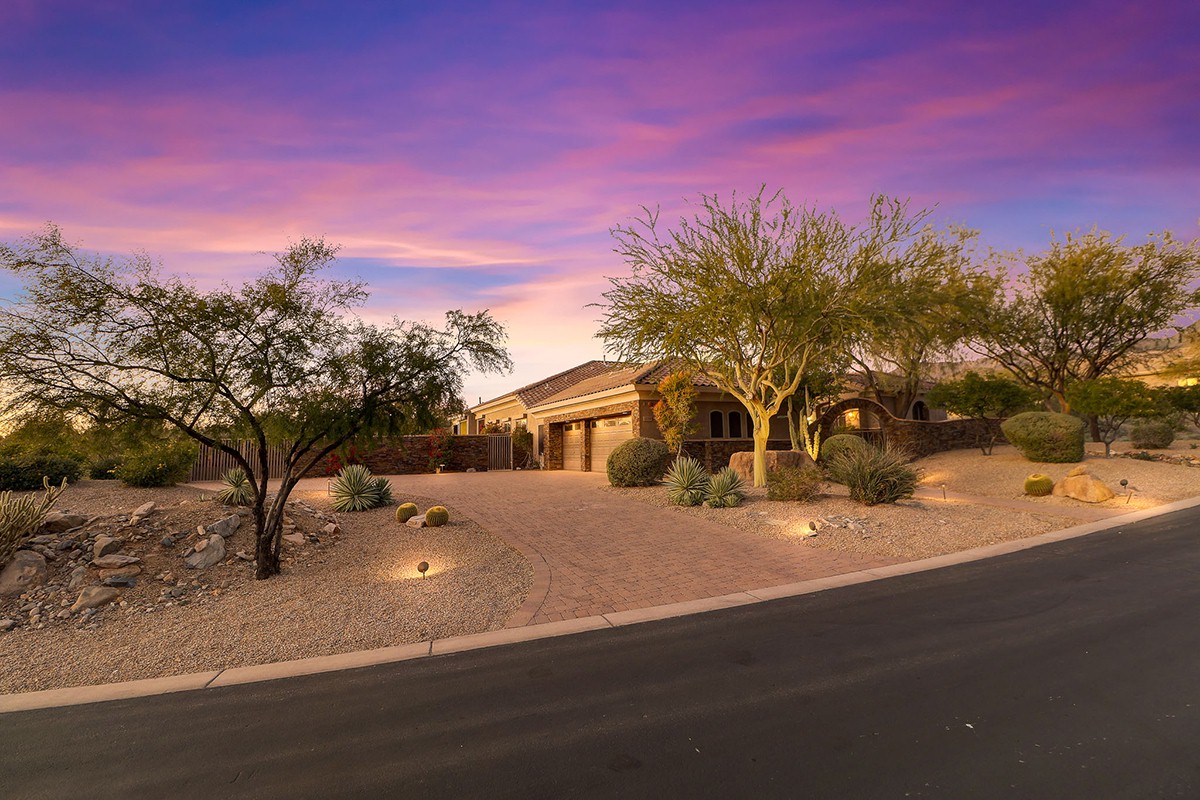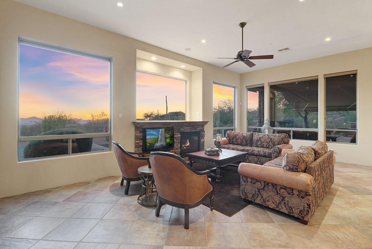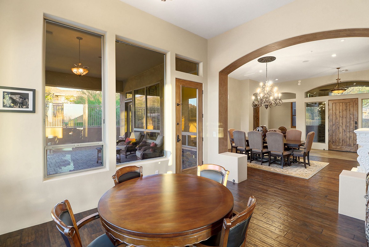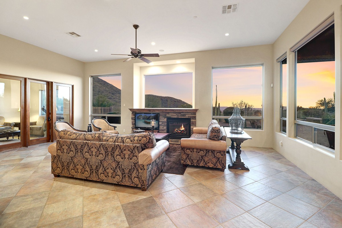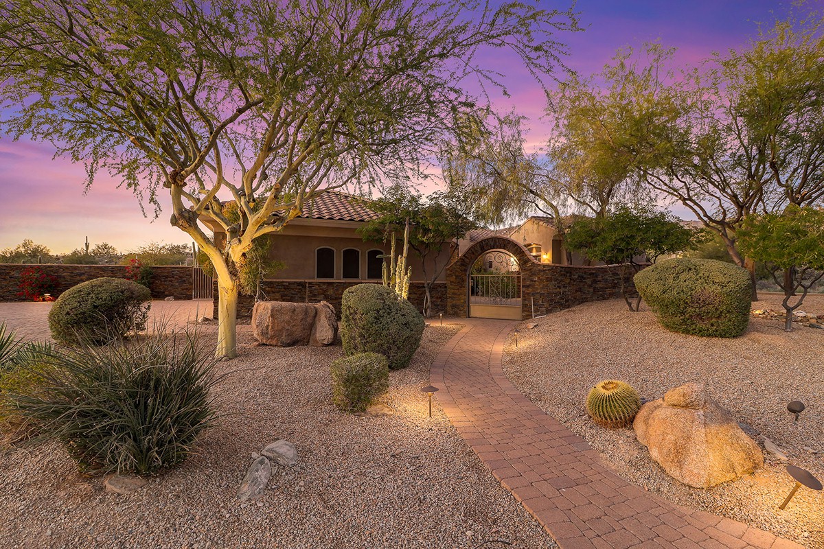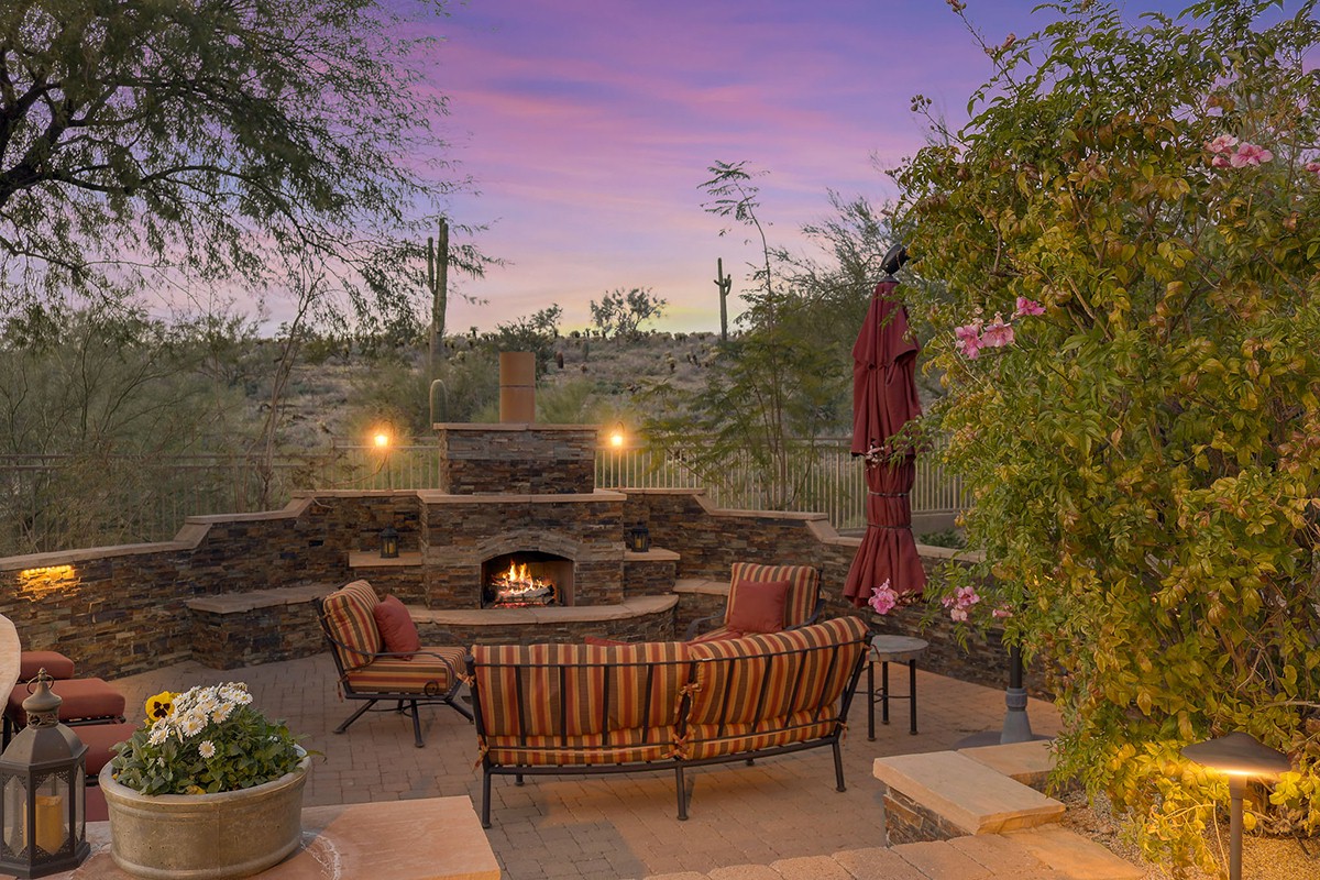 Privacy abounds for this 3,900 plus SF home on a 1.78 acre lot located in the gated Sonoran Estates II at McDowell Mountain Ranch. The outdoor living spaces are perfect for entertaining with tumbled pavers, large covered patio, negative edge pool with waterfall grotto, recessed patio with fireplace and poolside bar seating, sports court, five hole putting green, built-in barbecue, retractable awnings, mature landscaping with lighting, fruit trees, fire pit with built-in seating, numerous lounge and dining area, all with endless views.