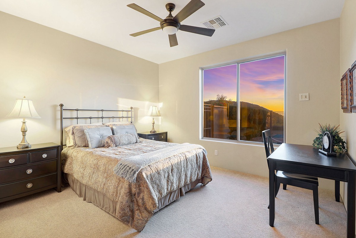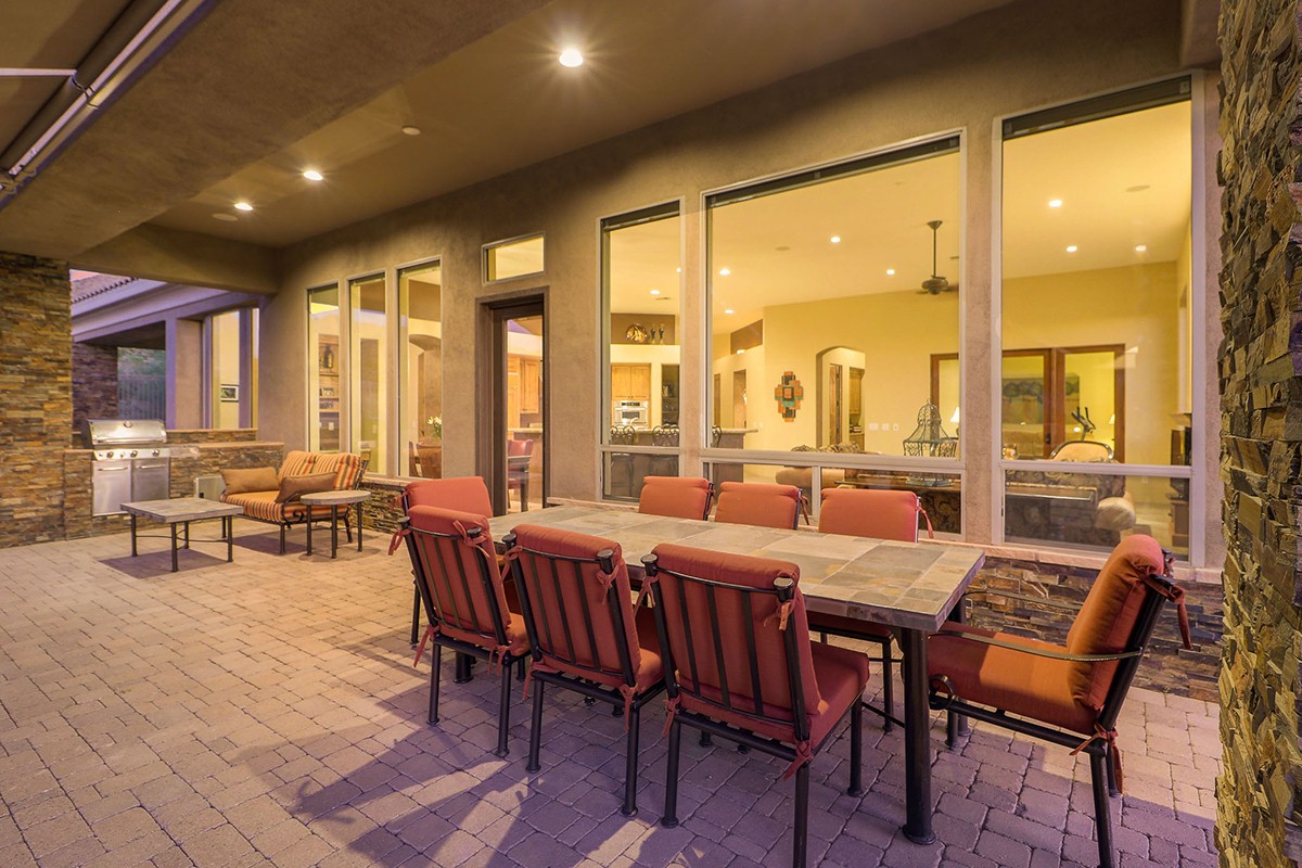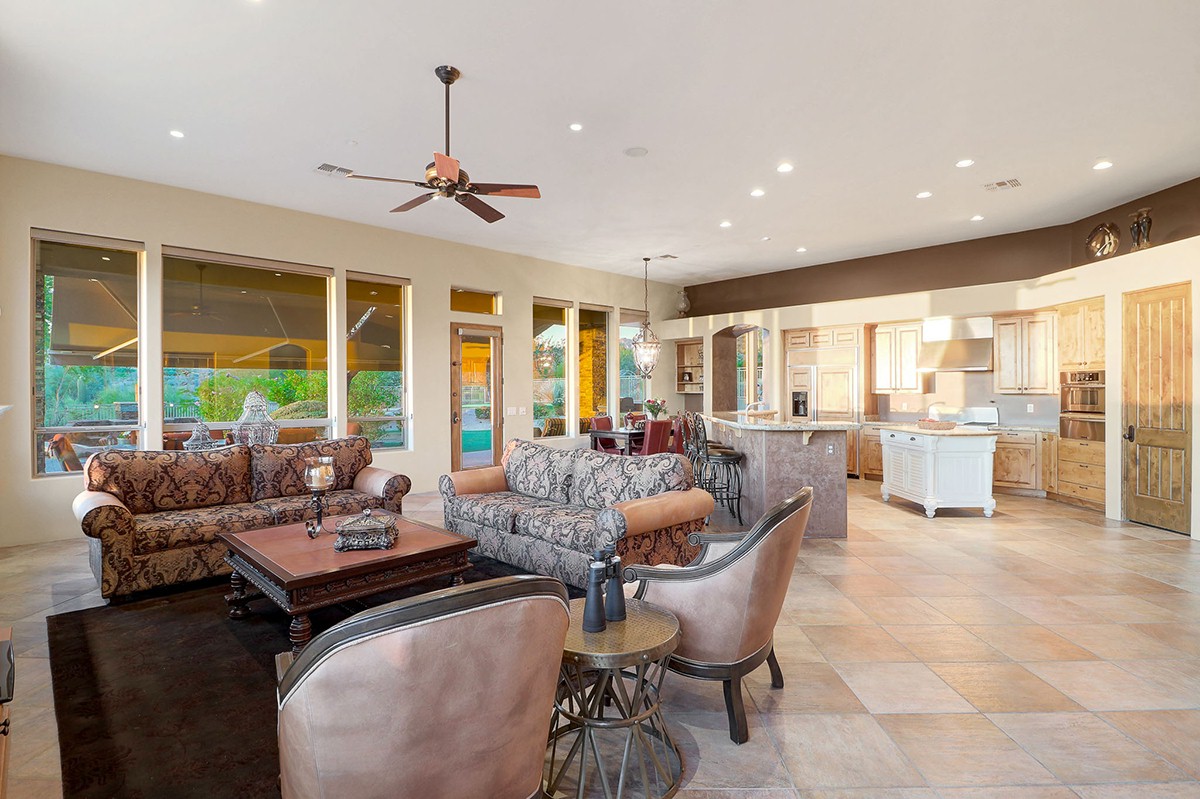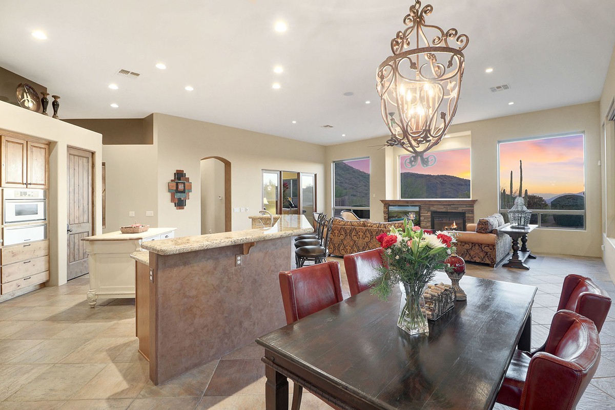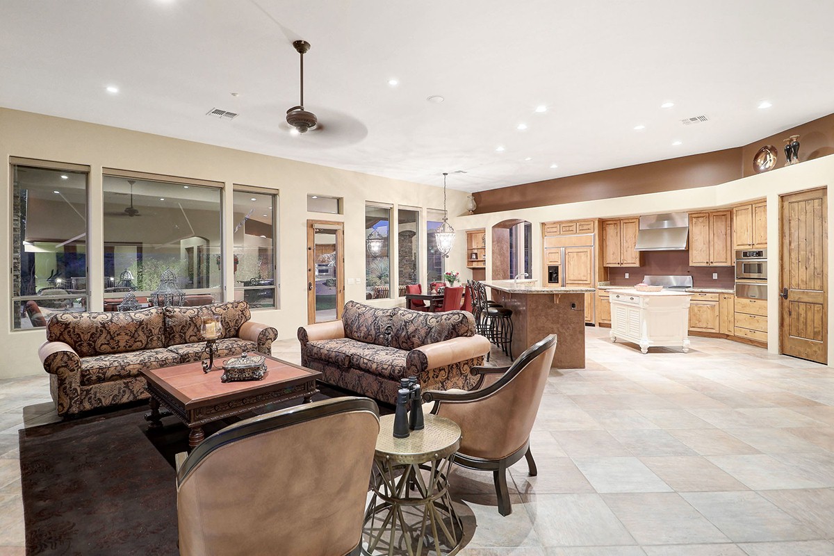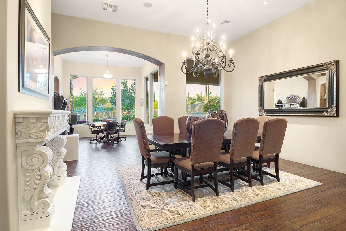 Privacy abounds for this 3,900 plus SF home on a 1.78 acre lot located in the gated Sonoran Estates II at McDowell Mountain Ranch. The outdoor living spaces are perfect for entertaining with tumbled pavers, large covered patio, negative edge pool with waterfall grotto, recessed patio with fireplace and poolside bar seating, sports court, five hole putting green, built-in barbecue, retractable awnings, mature landscaping with lighting, fruit trees, fire pit with built-in seating, numerous lounge and dining area, all with endless views.