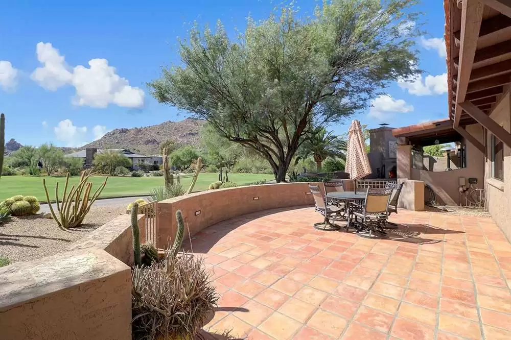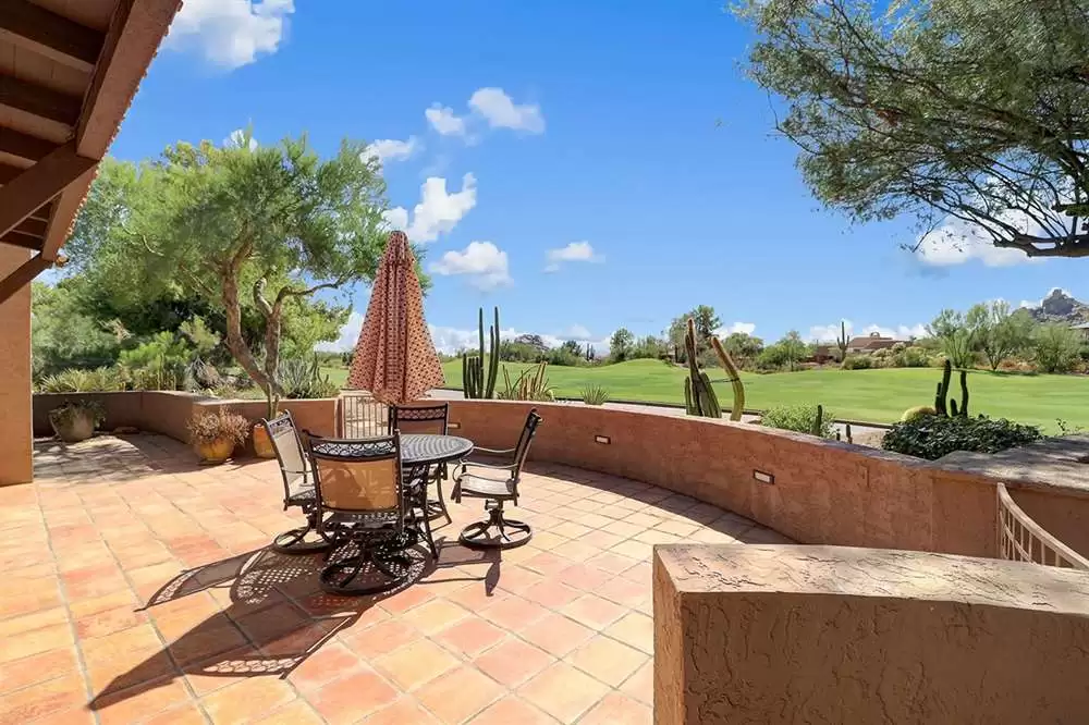 Rare opportunity to own a Villa in the legendary Boulders Community of North Scottsdale. With direct views of Black Mountain, boulder outcroppings and the 7th fairway of the championship Boulders North Course, this charming home features a classic Southwest styling with tongue in groove beamed ceilings, saltillo tile, wood casement windows and doors, and private front and rear yard patio spaces.