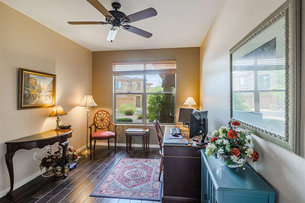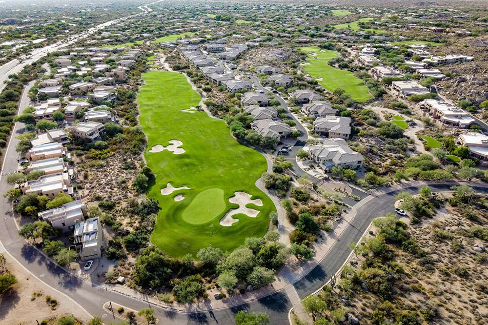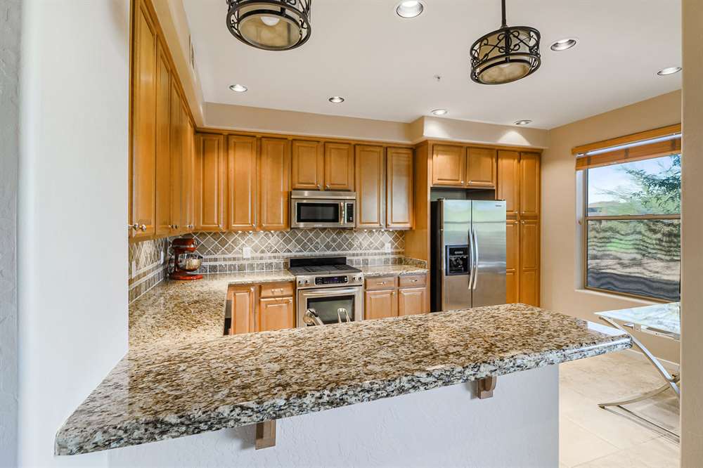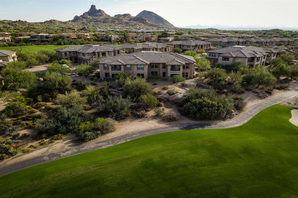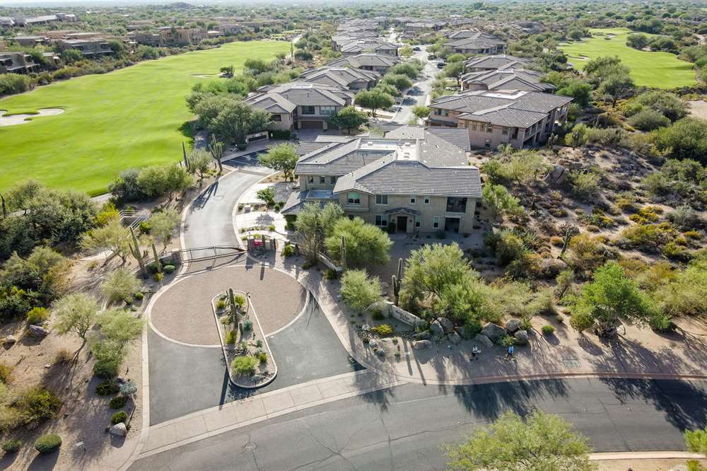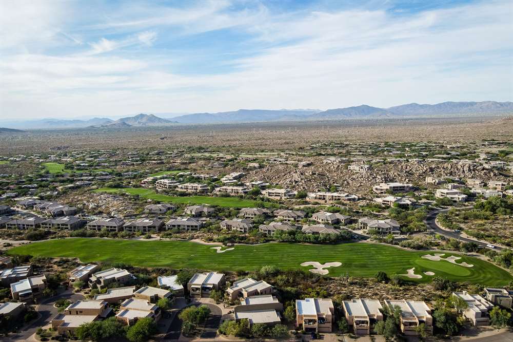 Direct entry from the 1.5-car tandem garage into the well-sized laundry room. The open floor plan allows for seamless entertaining with sliding doors leading to the charming patio that backs to the 1st Fairway of Troon North’s Monument course.