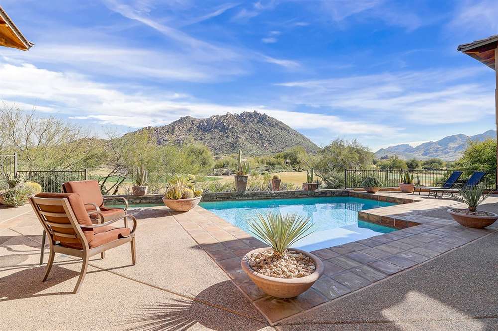 Rustic Charm with a soft contemporary edge in the heart of North Scottsdale defines this custom home designed with entertaining in mind. Located on the 1st fairway of Troon Country Club’s private course with views of the 8th and 9th fairways, this large estate has remarkable 360 degree views.