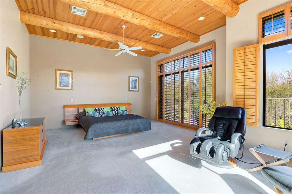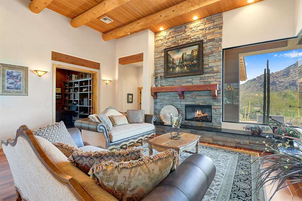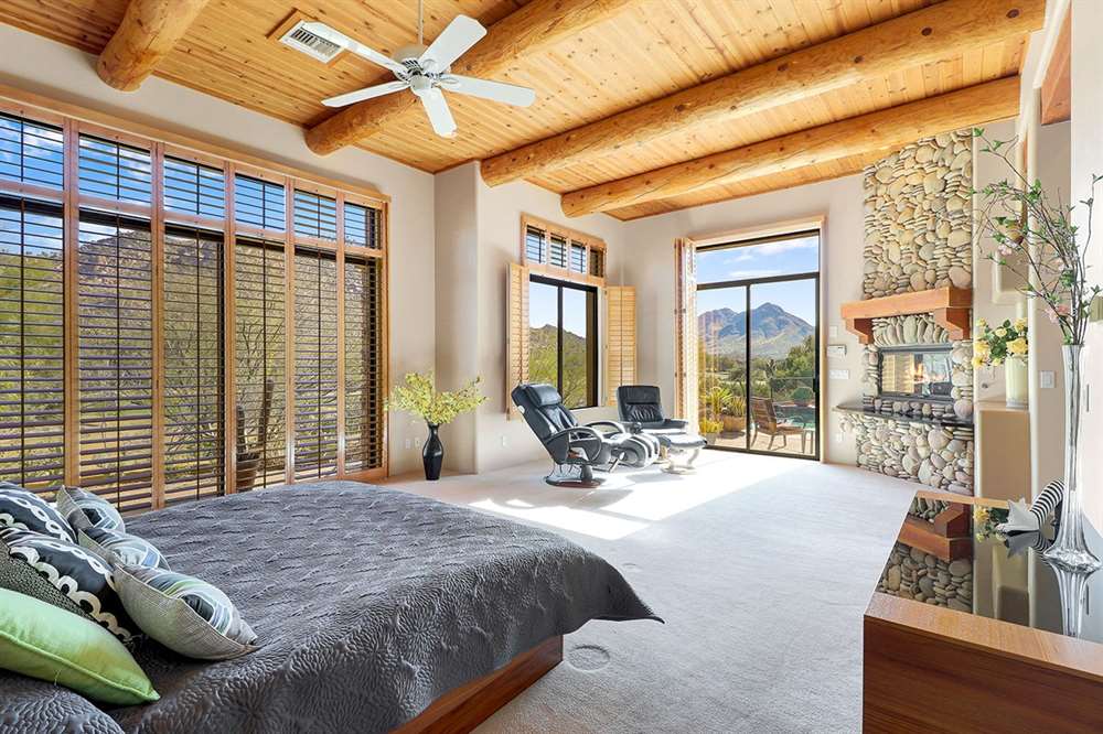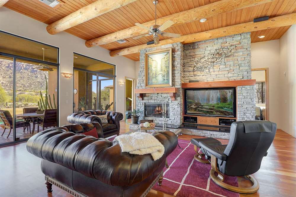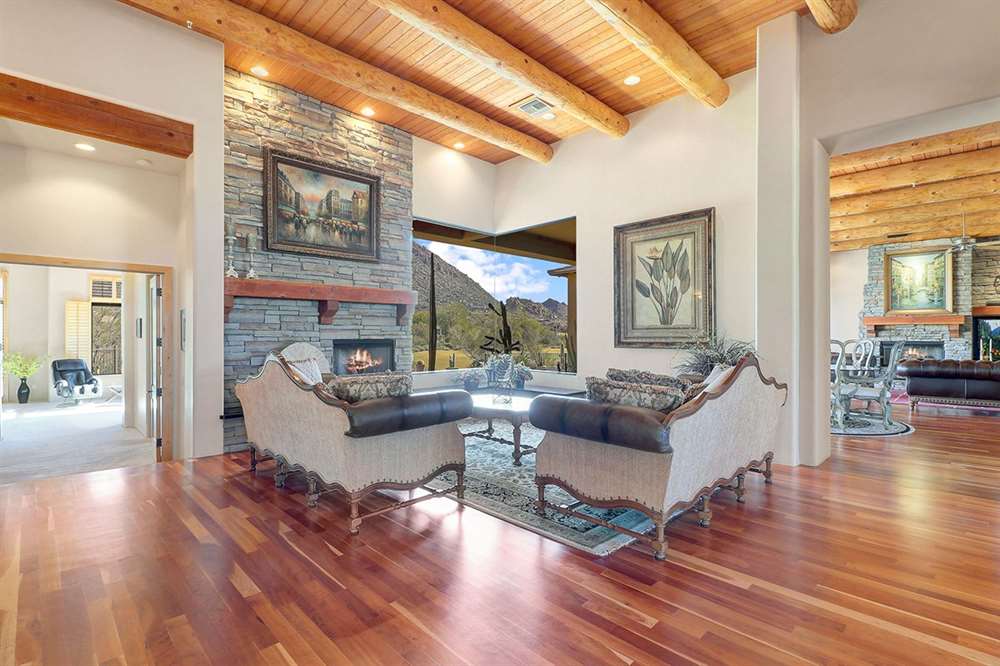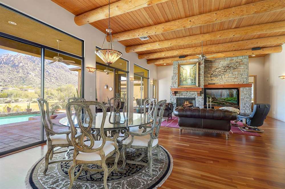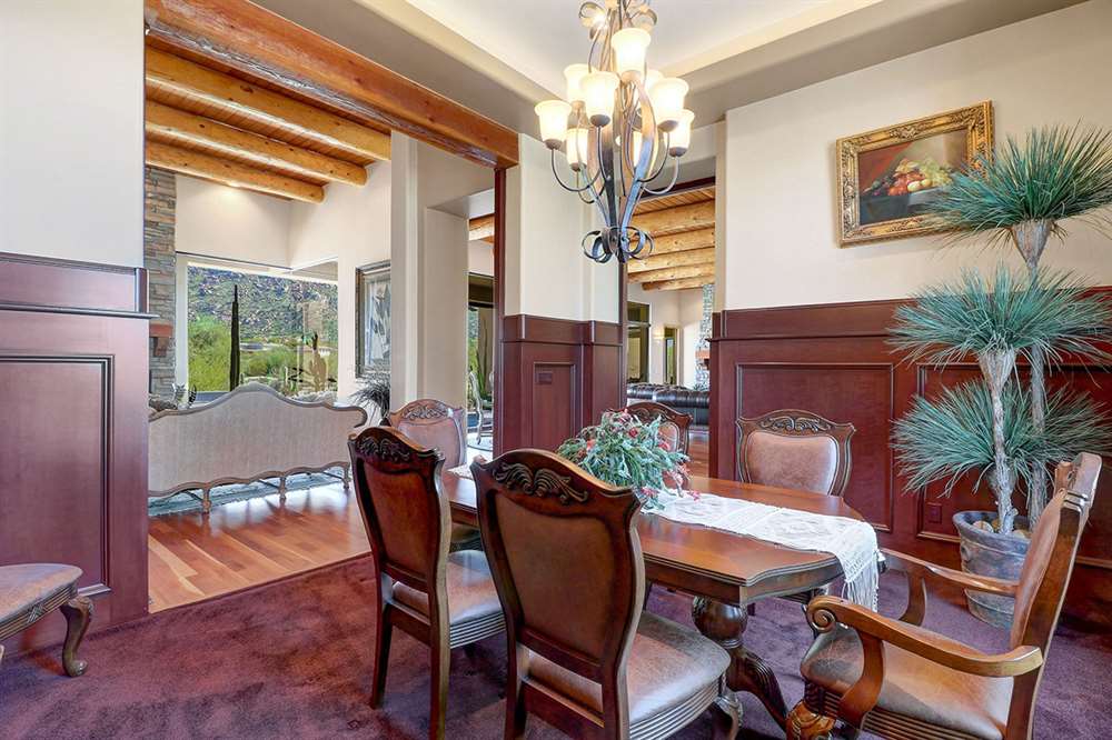 From Pinnacle Peak to the McDowell Mountains, and everything in between, you will not be disappointed from what this elevated lot and home has to offer. Beamed and wood planked ceilings, recently refinished cherry wood floors, interior and exterior stacked stone accents, solid core pine doors and trim, and richly stained wainscoting in the the office and dining room create warm and cozy living spaces.