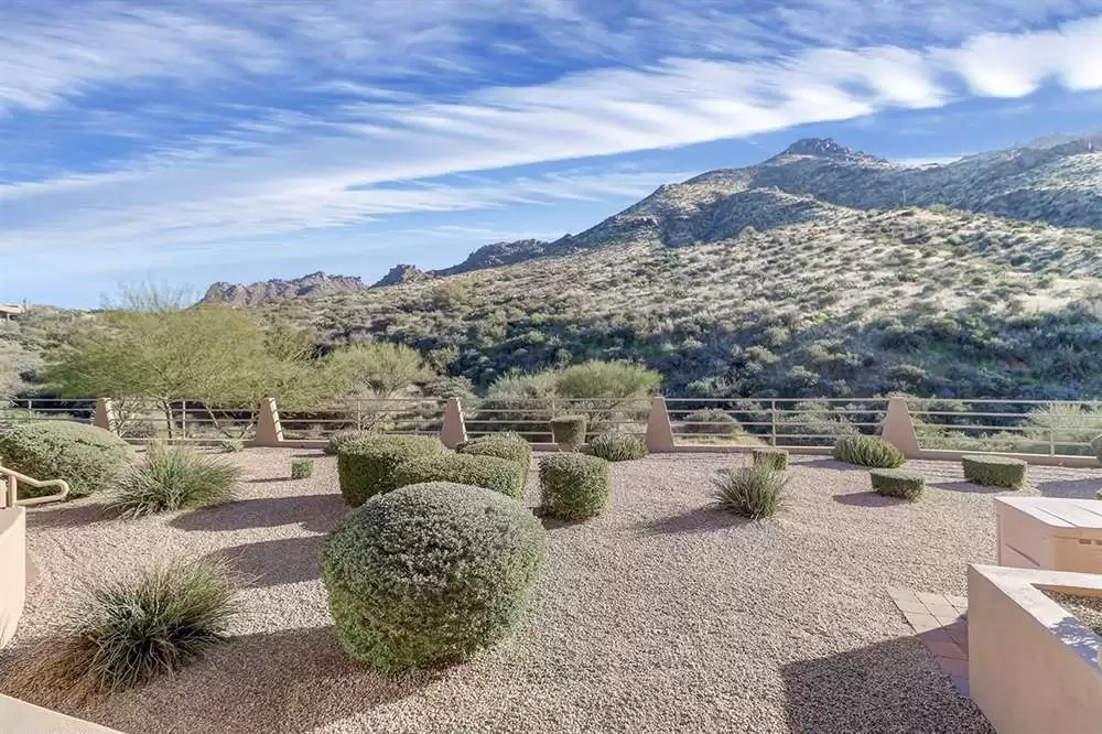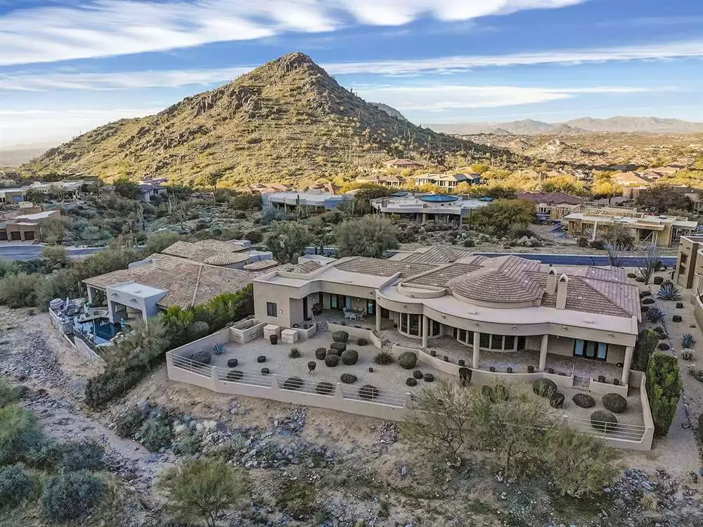 Privacy abounds for this wonderful soft contemporary home in gated Troon Highlands Estates. Located at the base of the McDowell Mountain Range on an elevated 1.7 acre cul-de-sac lot, enjoy direct mountain views including Tom’s Thumb. The neutral palette throughout includes solid core maple doors and cabinetry, one tone interior and brand new exterior paint, wood and tile floors with clean, curved line architecture.
