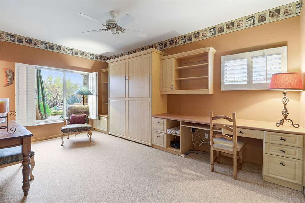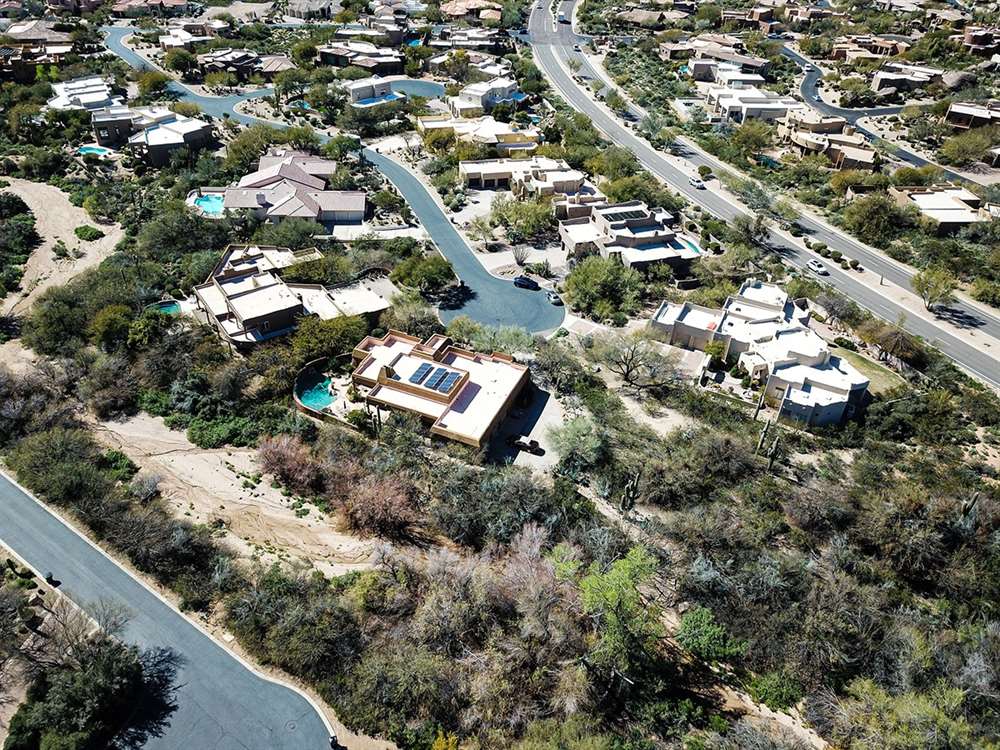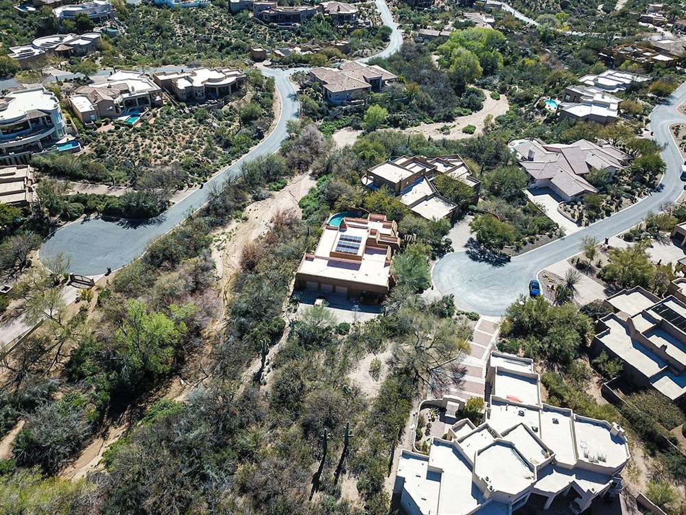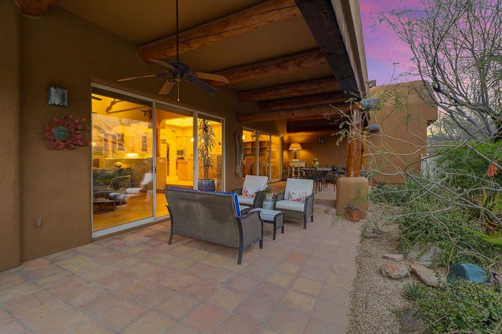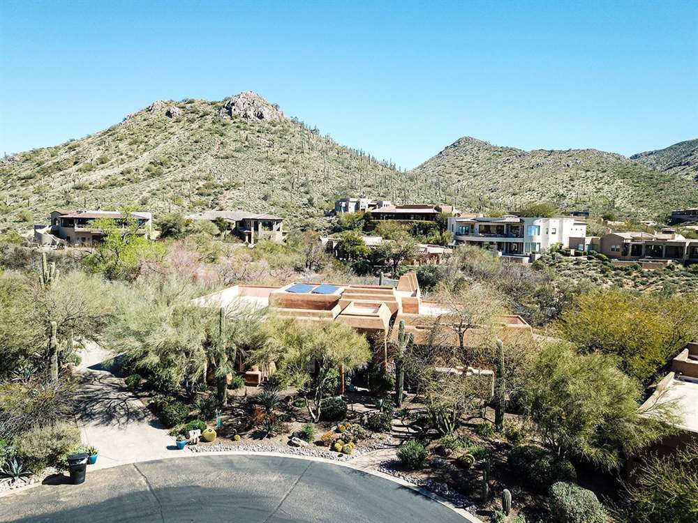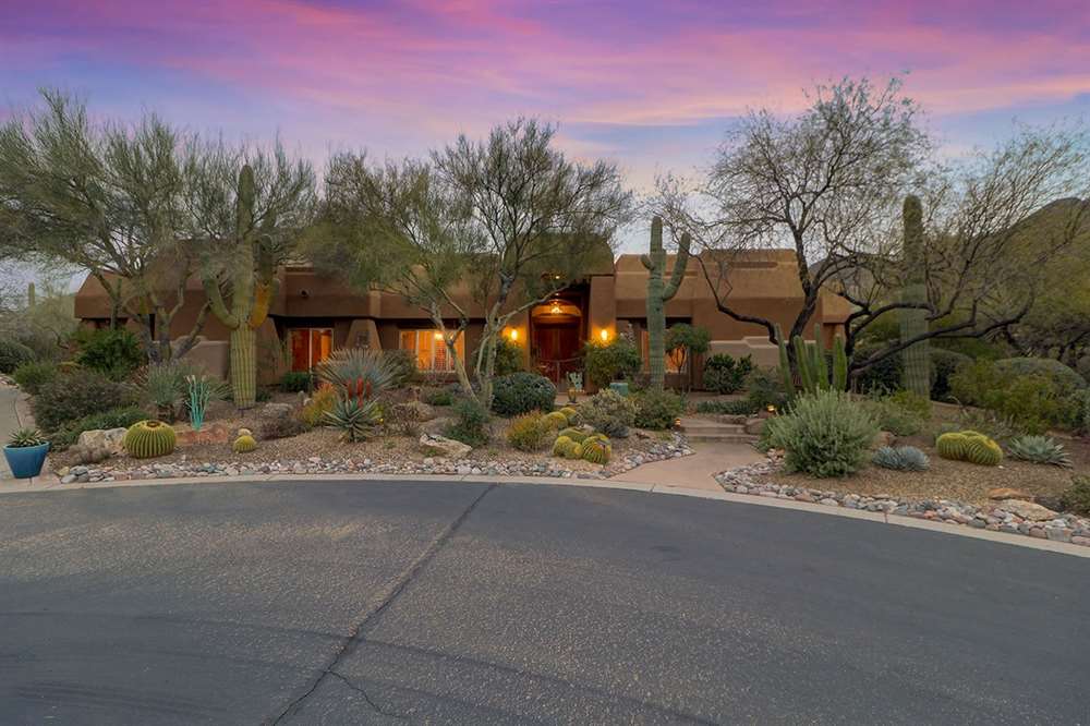 Warmth and charm describe this Southwest inspired home with big views and a one-of-a-kind location! Nestled among the large trees bordering the local landmark wash, this perfectly sized, just under 2,800 SF home sits in a private cul-de-sac.