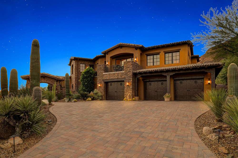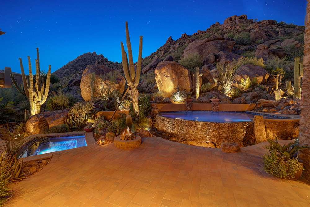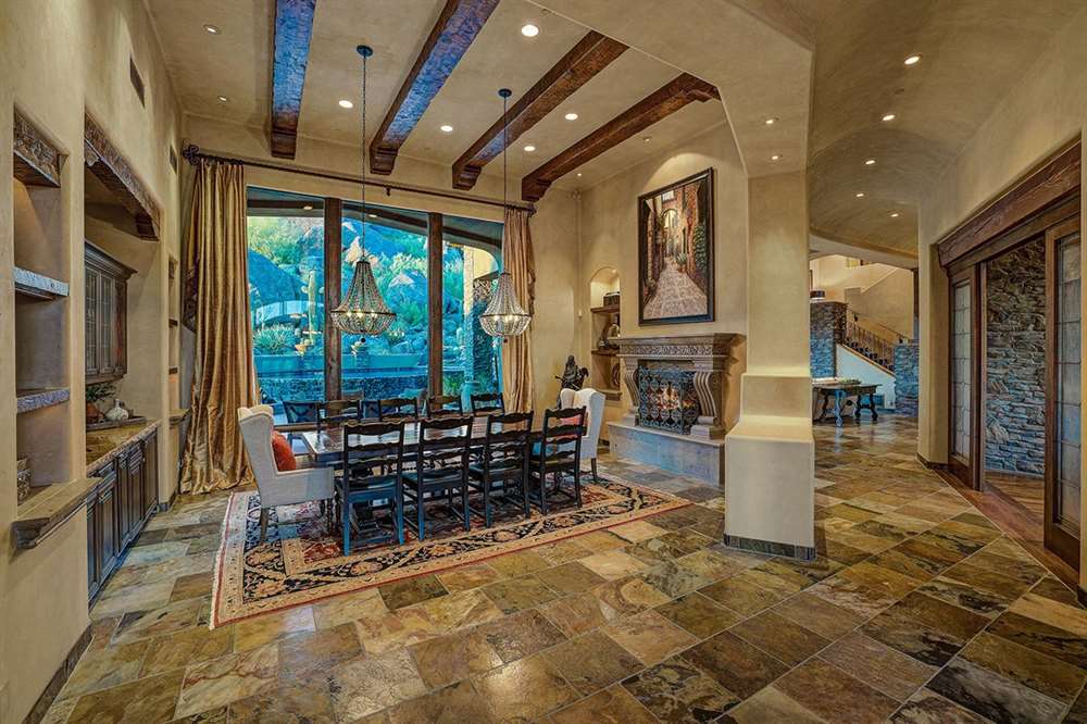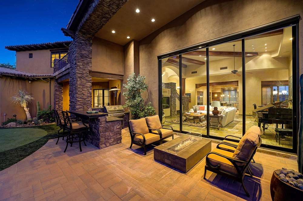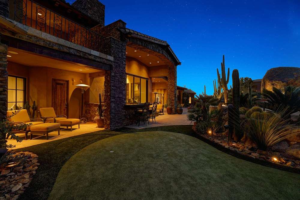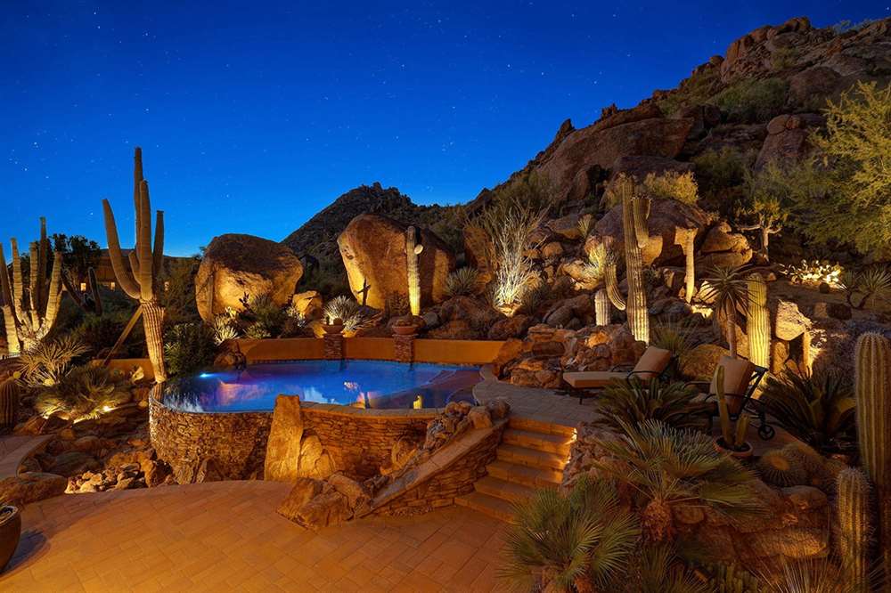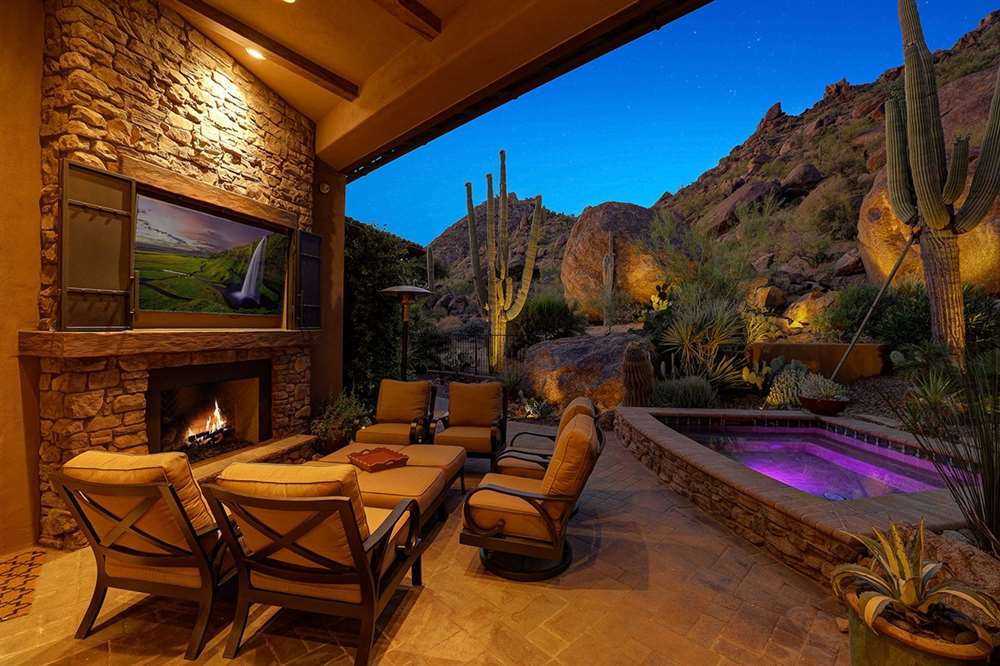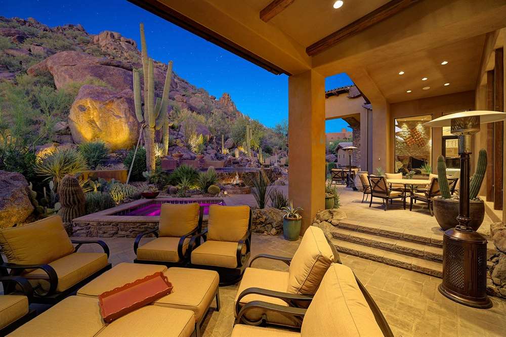 Embrace world-class luxury in this impeccable custom showcase built by RS Homes located in the gated community of Troon Ridge Estates at Troon Village. Delivering indoor-outdoor living through beautiful craftsmanship, this 6,975 square foot home sits on three and half hillside acres backing to Troon Mountain. The home went through an extensive upgrade and renovation in 2018-2019. Fine stone work, wide-plank wood and slate stone floors, wood beam ceilings, custom millwork and cabinetry, and soaring ceilings highlight the Tuscan styling and timeless architecture with views from every single room. A true resort-style yard with ample space for entertaining, has multiple patio and balcony spaces, artificial turf putting green, Whisper Rock Club inspired fireplace setting, negative edge elevated pool, separate heated spa, outdoor bar with built-in barbecue, lush desert landscaping, all set to a dramatic natural boulder and saguaro cacti backdrop.