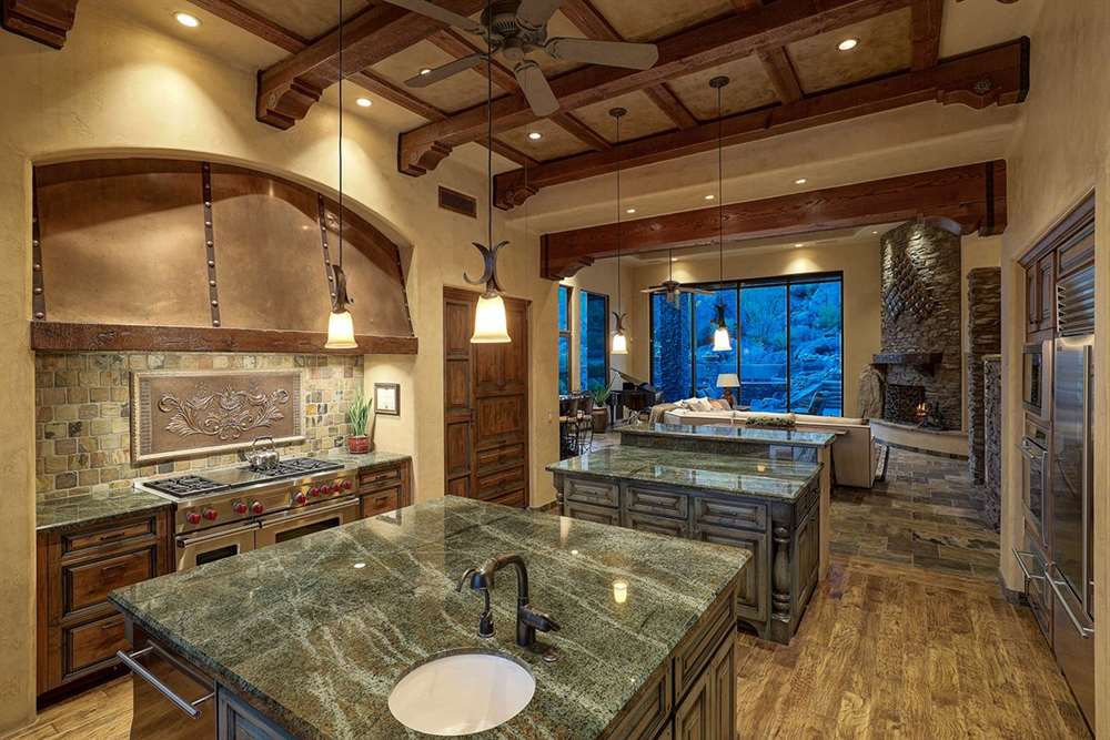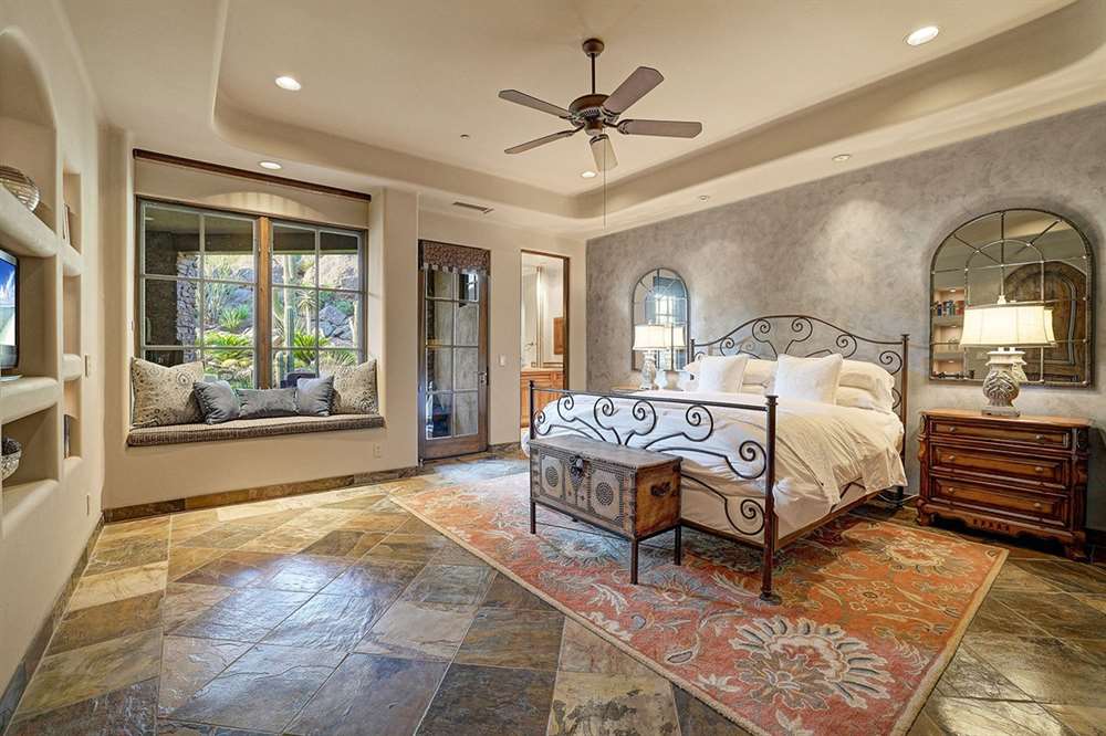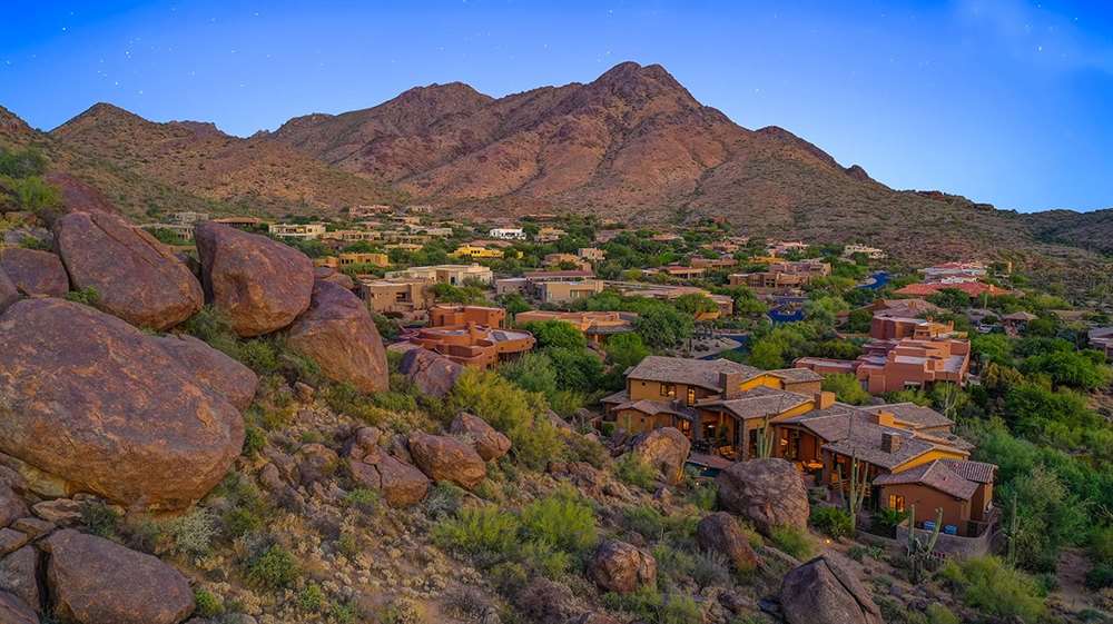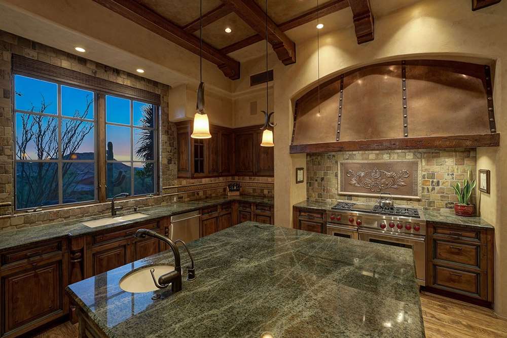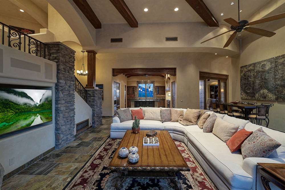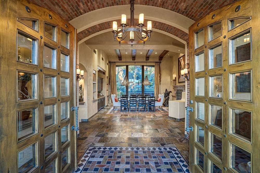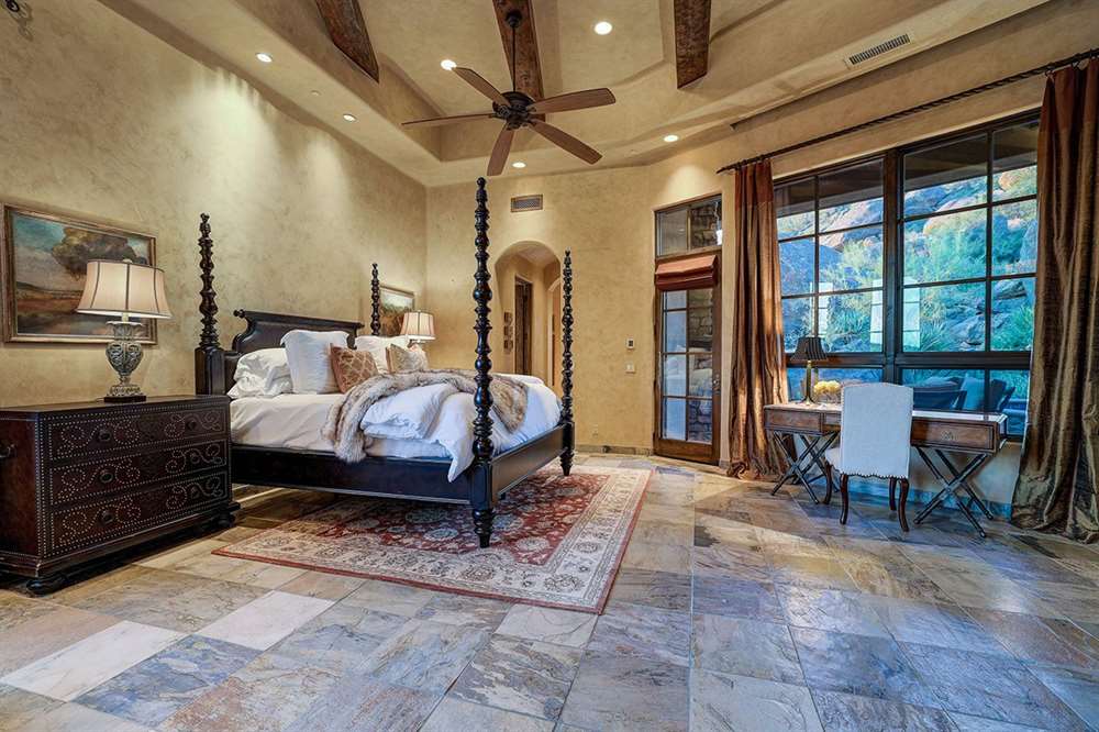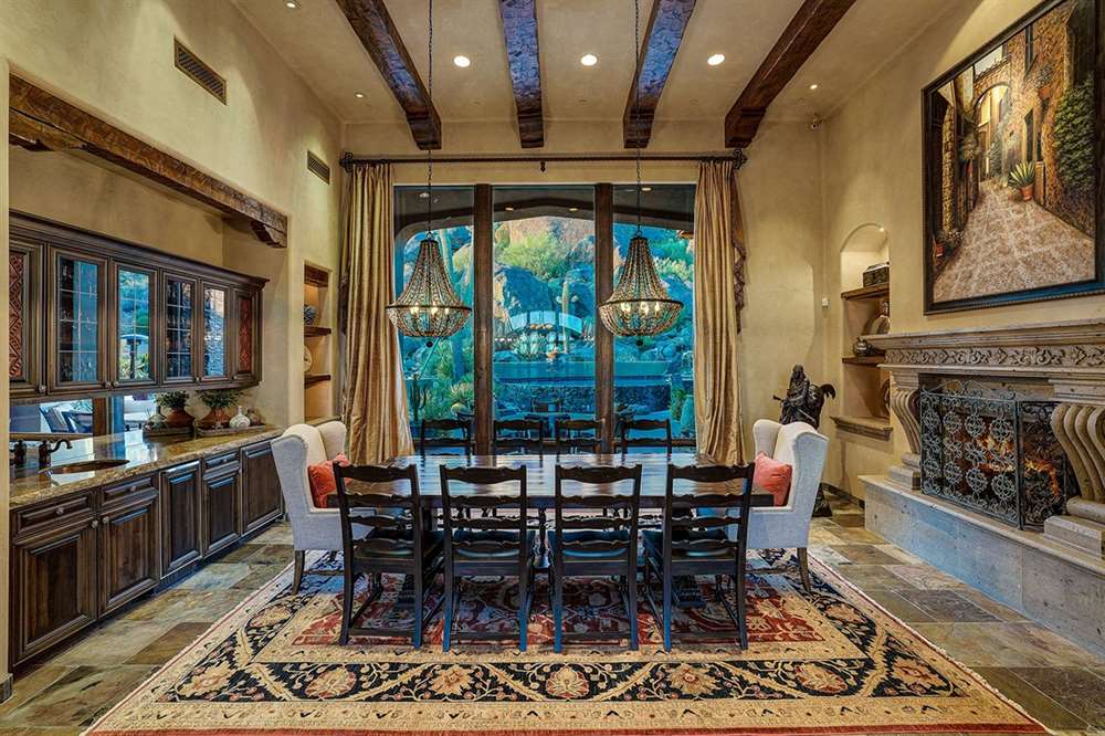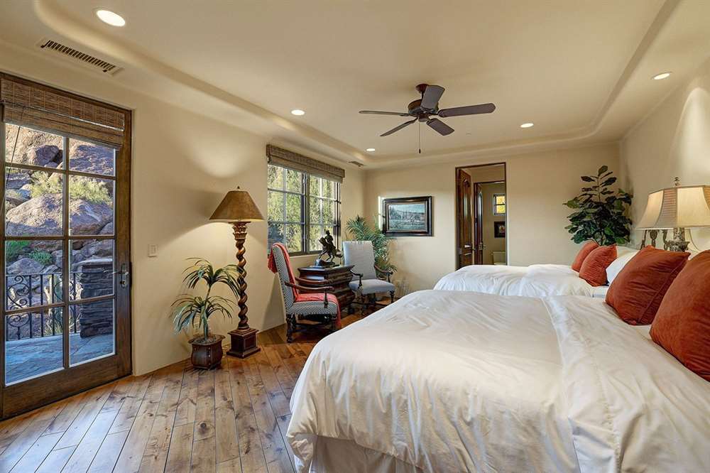 Embrace world-class luxury in this impeccable custom showcase built by RS Homes located in the gated community of Troon Ridge Estates at Troon Village. Delivering indoor-outdoor living through beautiful craftsmanship, this 6,975 square foot home sits on three and half hillside acres backing to Troon Mountain. The home went through an extensive upgrade and renovation in 2018-2019. Fine stone work, wide-plank wood and slate stone floors, wood beam ceilings, custom millwork and cabinetry, and soaring ceilings highlight the Tuscan styling and timeless architecture with views from every single room. A true resort-style yard with ample space for entertaining, has multiple patio and balcony spaces, artificial turf putting green, Whisper Rock Club inspired fireplace setting, negative edge elevated pool, separate heated spa, outdoor bar with built-in barbecue, lush desert landscaping, all set to a dramatic natural boulder and saguaro cacti backdrop.