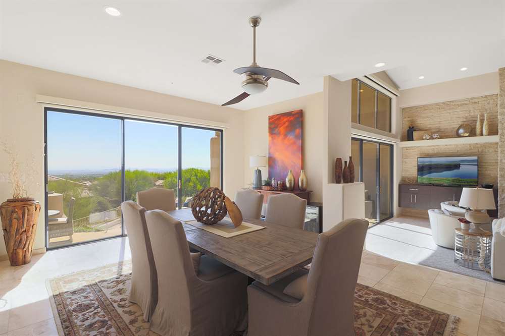 Move-in Ready! Beautifully updated Whispering Ridge at Troon Village home exudes elegance throughout. The panoramic view lot allows for stunning views of the city (including twinkling city lights), Pinnacle Peak, McDowell Mountains, Troon Mountain, and Arizona sunsets.