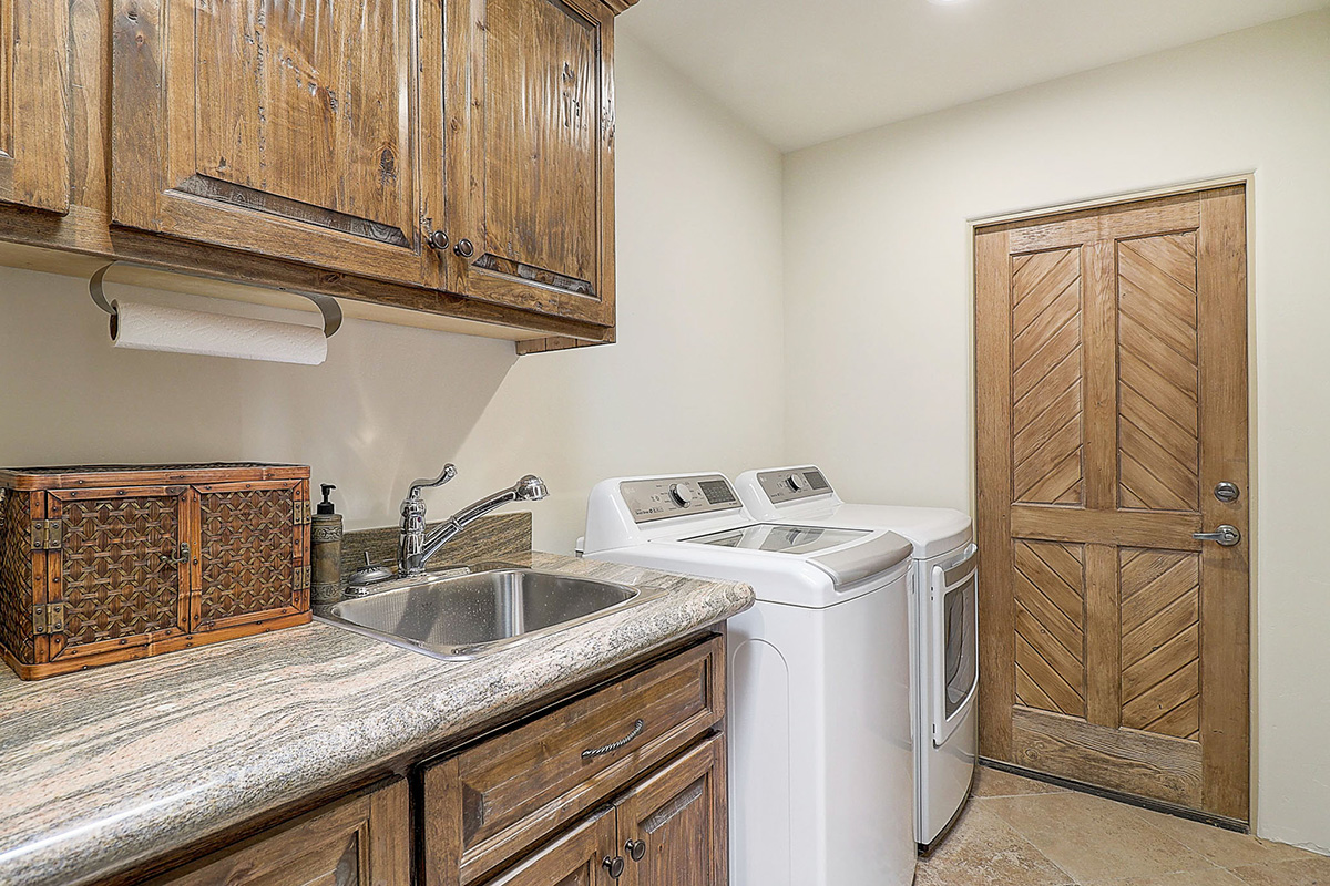 Outside is perfect for entertaining with a large covered patio, built-in barbecue, sparkling heated pool and spa, cascading rock waterfall, mature landscaping and endless sunset views. A full-sized laundry and side-entry three car garage round out this beautiful custom home.