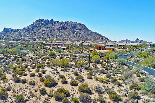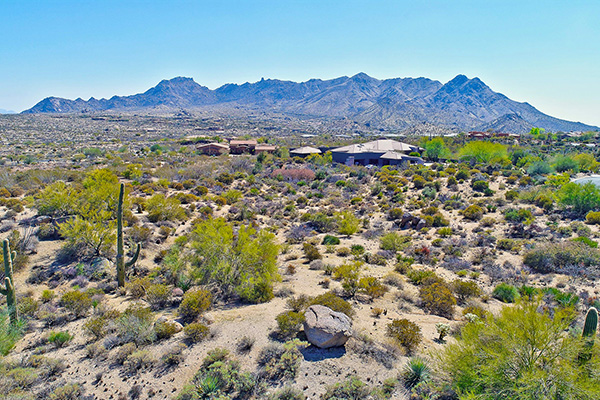 Signature homesite in gated Yearling Estates is one of only 15 lots in this private subdivision. Situated on 2 ¾ acres, with commanding views of Troon Mountain, Tom’s Thumb, and the McDowell Mountain range, this lot is ready for you to build your dream home. Natural boulders and mature saguaros dot the lots terrain. Located in close proximity to many trailheads, and surrounded by the beautiful Sonoran desert. Preliminary house plans available with purchase of the lot.