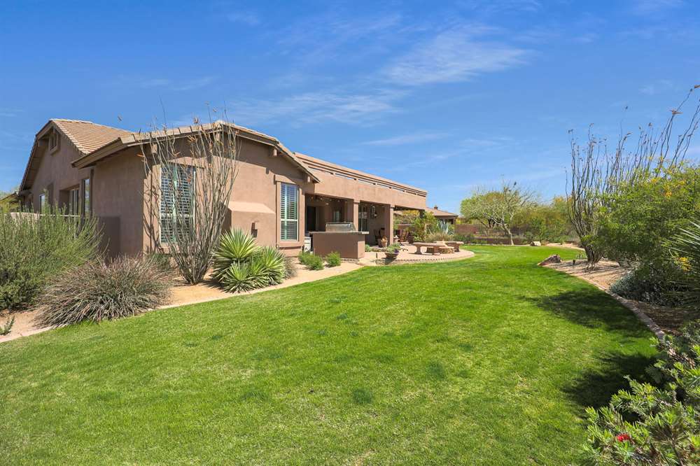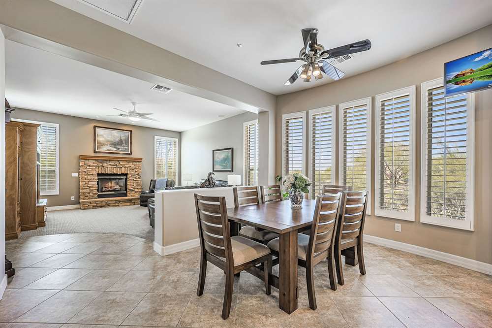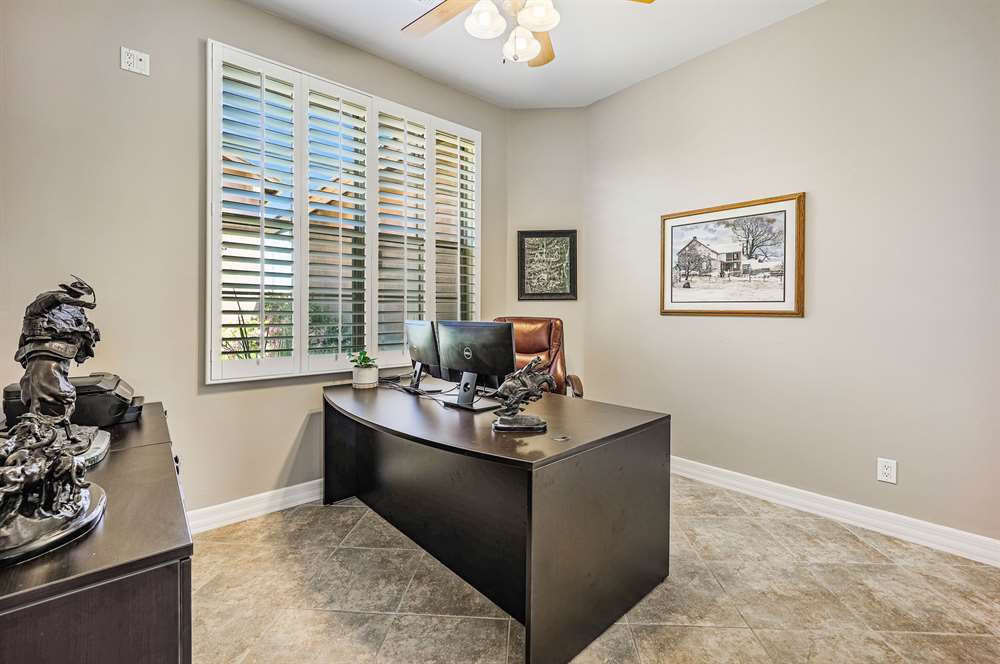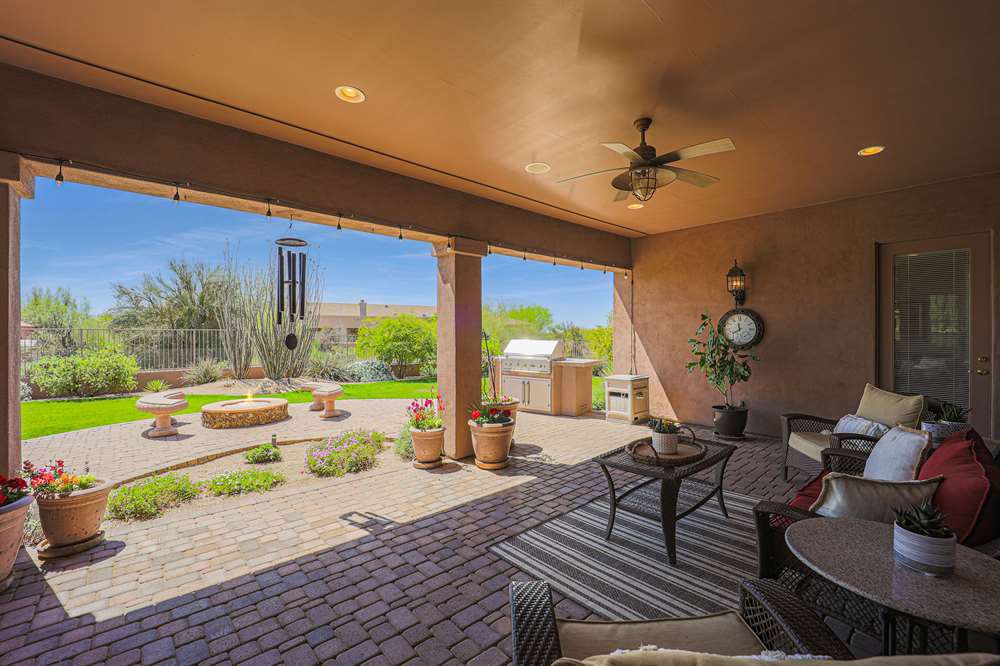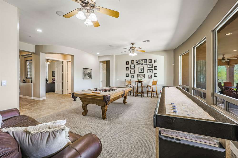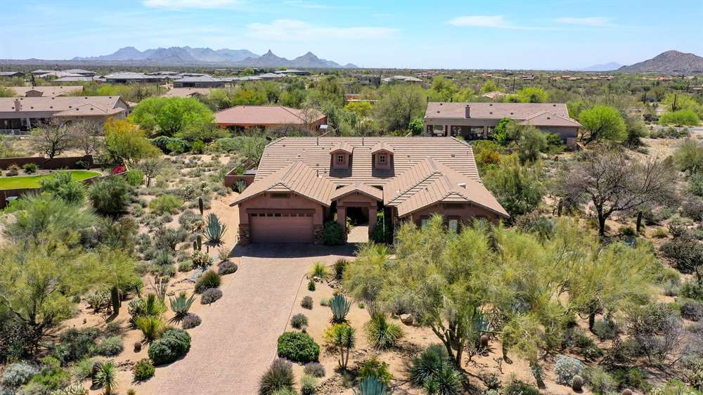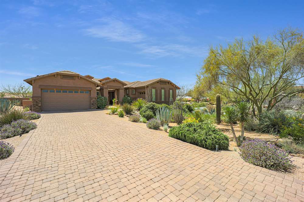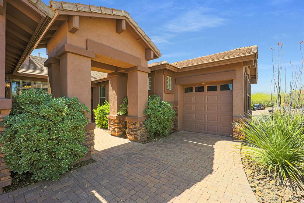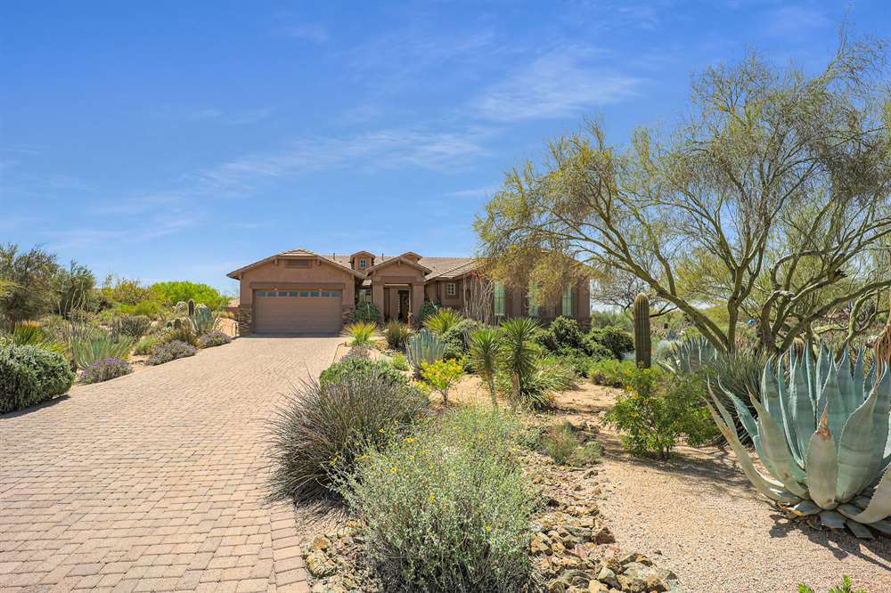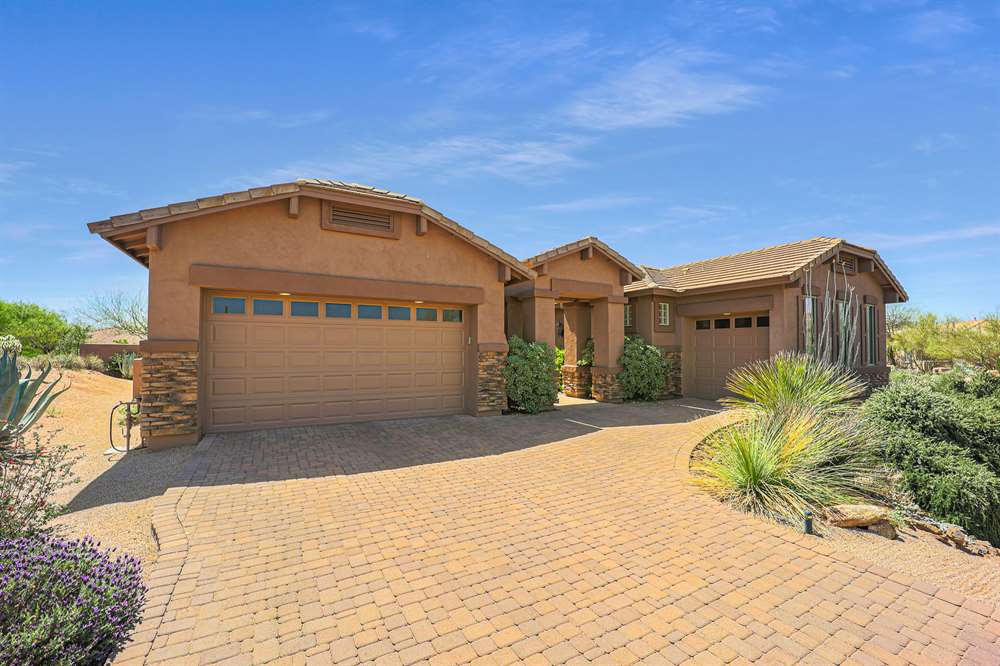 Beautifully maintained, this wonderful 3,157 square foot home features four bedrooms, four bathrooms, and an office that could be used as a fifth bedroom. Located on a corner cul-de-sac lot inside the gated community of Boulder Ridge, enjoy plenty of privacy on the three quarter acre lot. The extended paver drive leads to a two-car main garage with a split one-bay garage for a total of three-car storage. The private entry courtyard with relaxing water feature, ushers you inside to high ceilings, plantation shutters, neutral paint and flooring, formal living and dining spaces, and an open concept family room/kitchen area. The kitchen has a stainless steel appliance package, gas cooktop, center island with prep sink, counter seating, a walk-in pantry, and a breakfast seating area all open to the family room with a stacked stone centerpiece fireplace. The backyard has southern exposure, a large paver covered patio, grassy play area, built-in barbecue, fire pit, above ground spa, and beautiful landscaped grounds in both the rear and front. The master bedroom also has a fireplace along with exterior access, large en-suite bathroom with walk-in closet and large soaking tub. The HVAC was replaced in 2020, new interior paint in 2018, and new carpet in 2018.