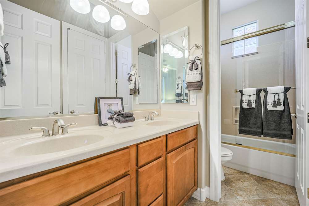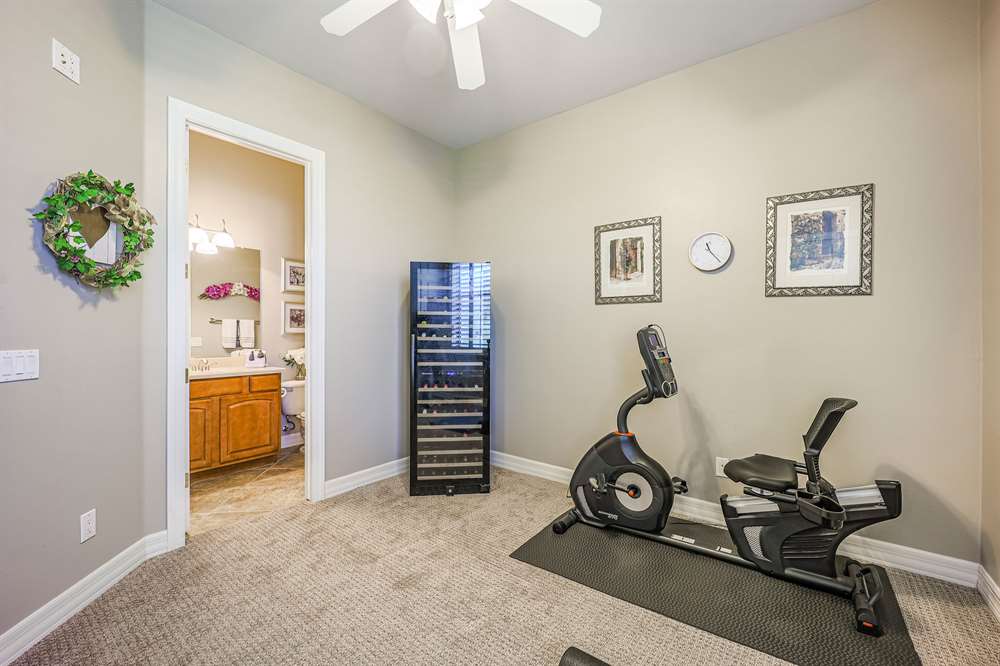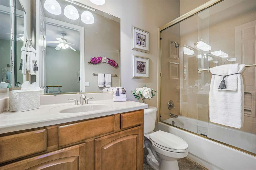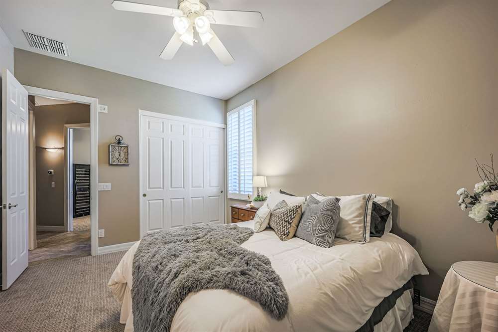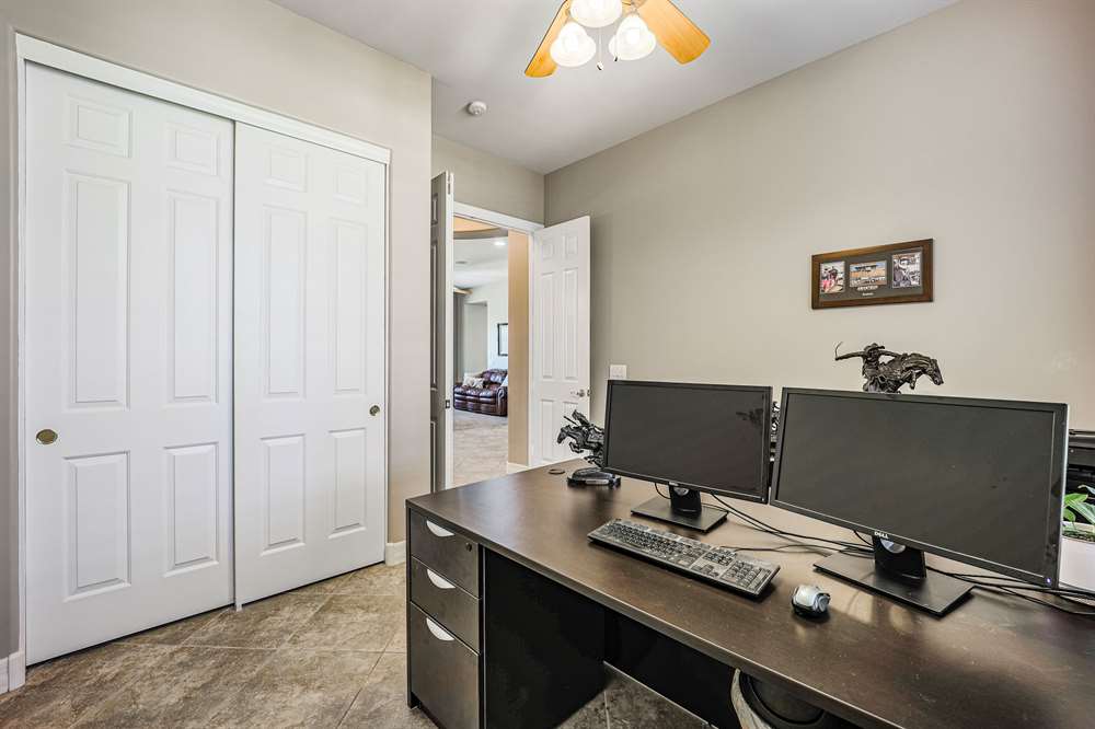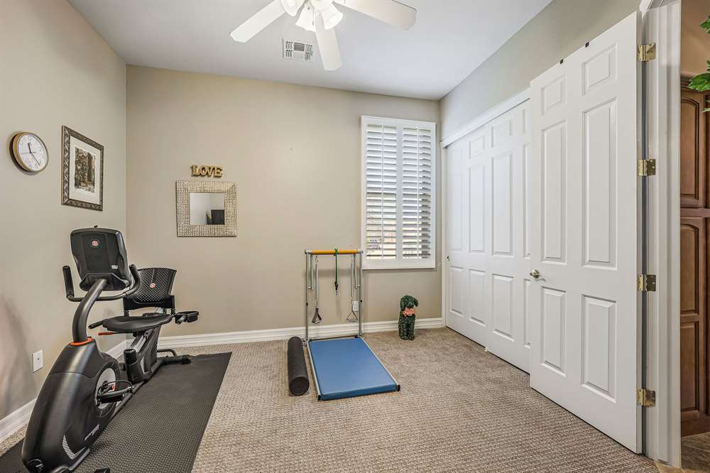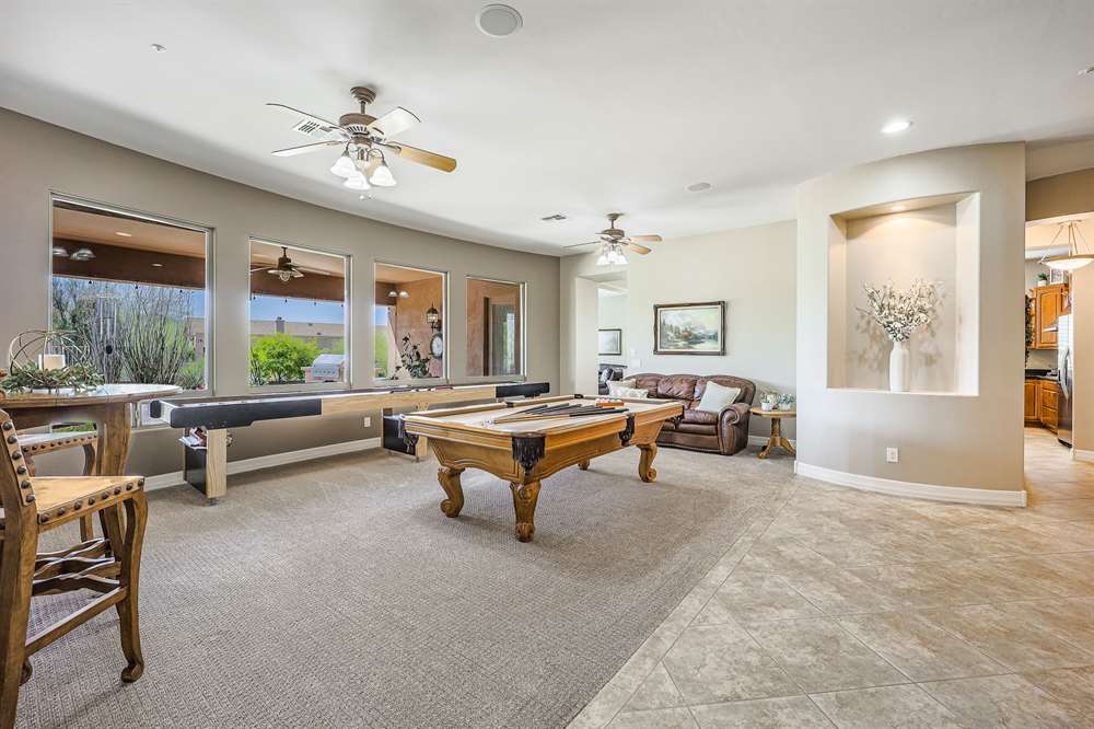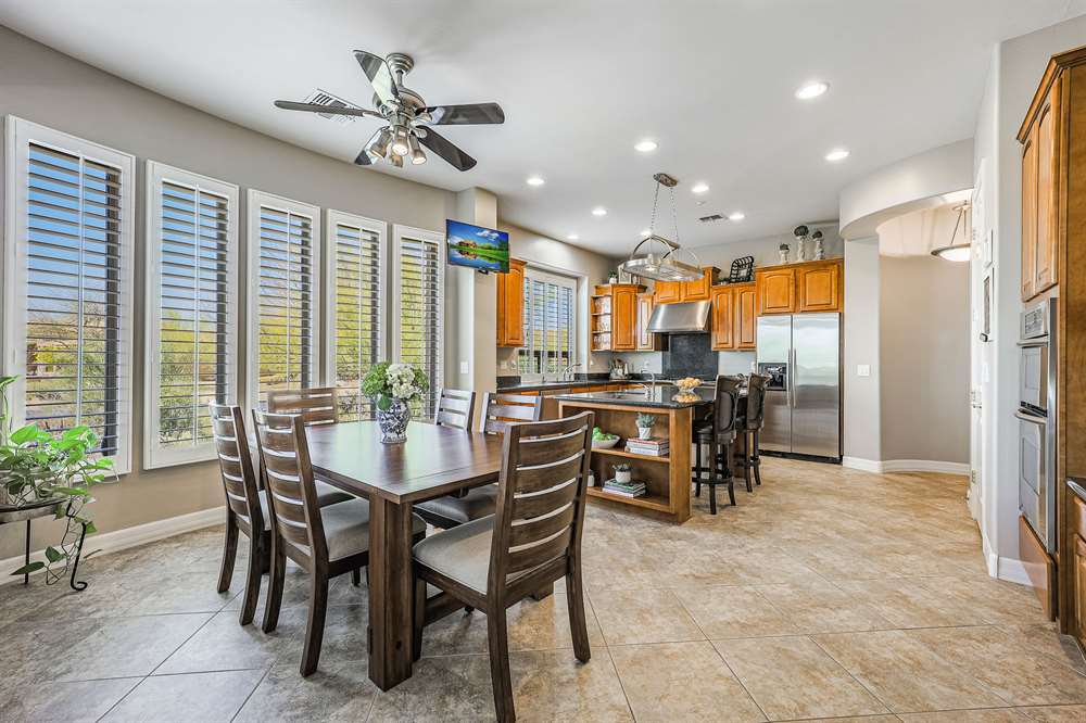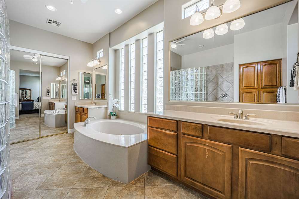 Beautifully maintained, this wonderful 3,157 square foot home features four bedrooms, four bathrooms, and an office that could be used as a fifth bedroom. Located on a corner cul-de-sac lot inside the gated community of Boulder Ridge, enjoy plenty of privacy on the three quarter acre lot. The extended paver drive leads to a two-car main garage with a split one-bay garage for a total of three-car storage. The private entry courtyard with relaxing water feature, ushers you inside to high ceilings, plantation shutters, neutral paint and flooring, formal living and dining spaces, and an open concept family room/kitchen area. The kitchen has a stainless steel appliance package, gas cooktop, center island with prep sink, counter seating, a walk-in pantry, and a breakfast seating area all open to the family room with a stacked stone centerpiece fireplace. The backyard has southern exposure, a large paver covered patio, grassy play area, built-in barbecue, fire pit, above ground spa, and beautiful landscaped grounds in both the rear and front. The master bedroom also has a fireplace along with exterior access, large en-suite bathroom with walk-in closet and large soaking tub. The HVAC was replaced in 2020, new interior paint in 2018, and new carpet in 2018.