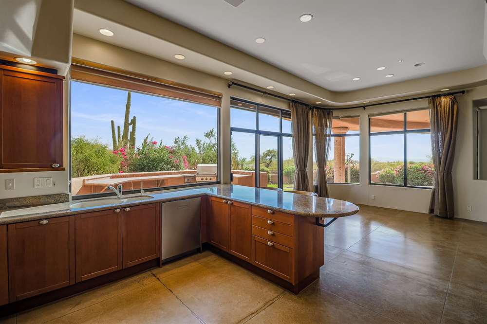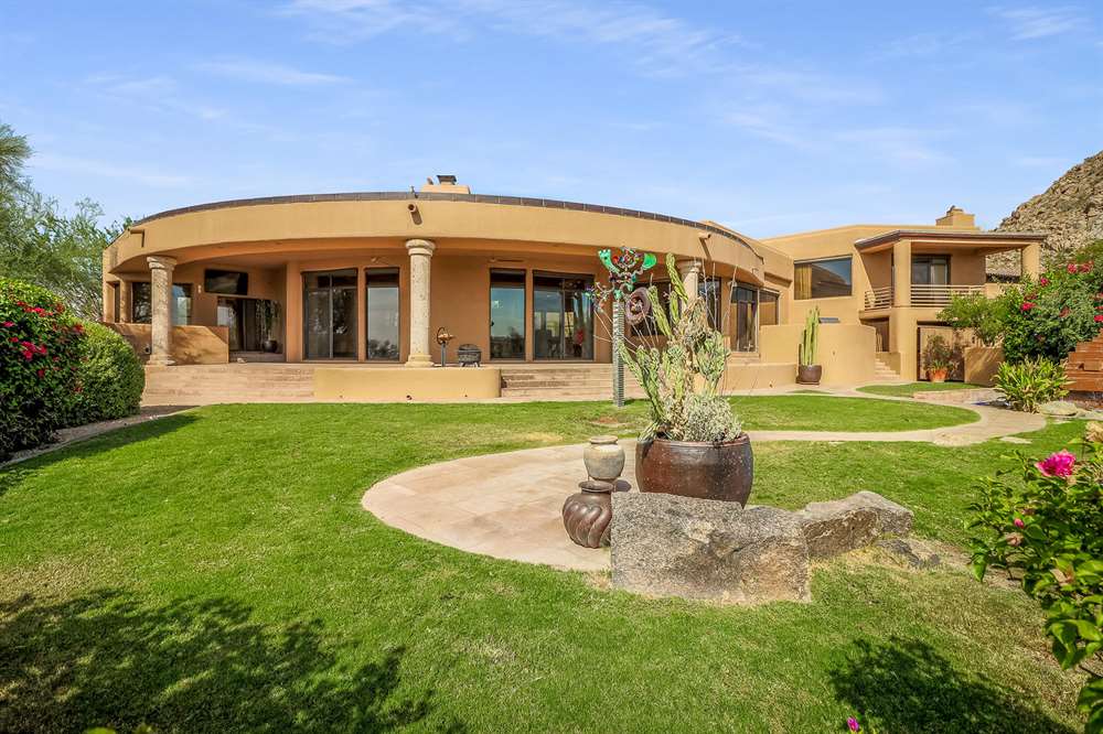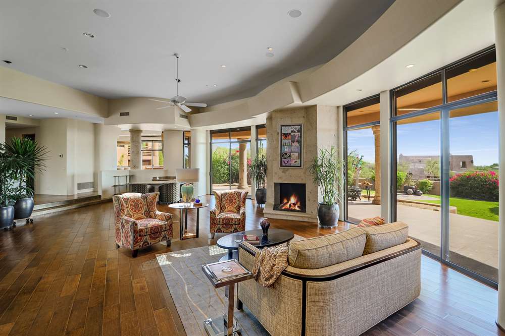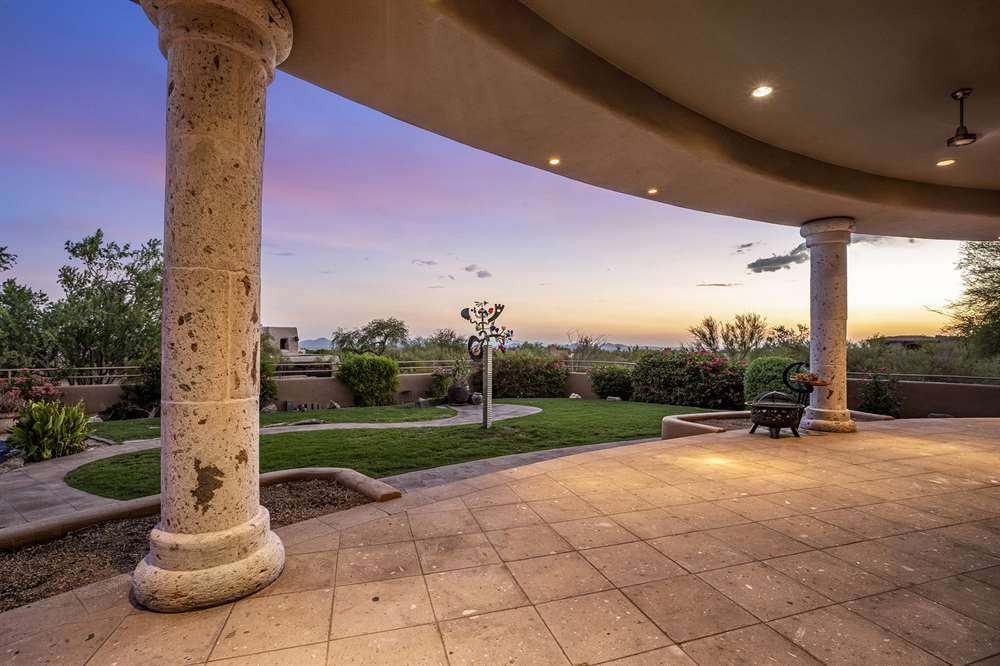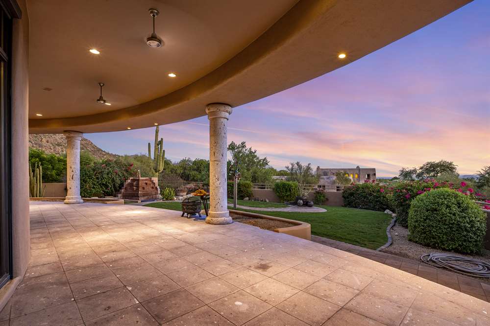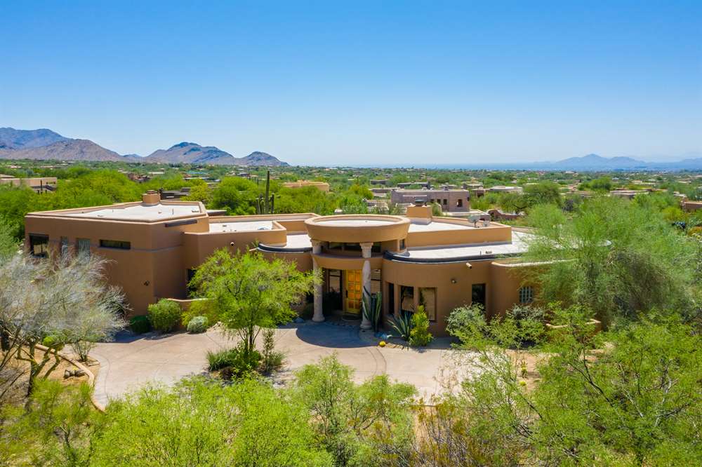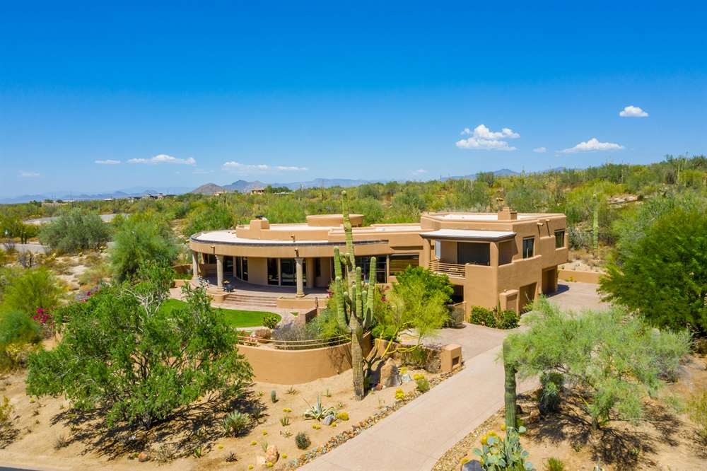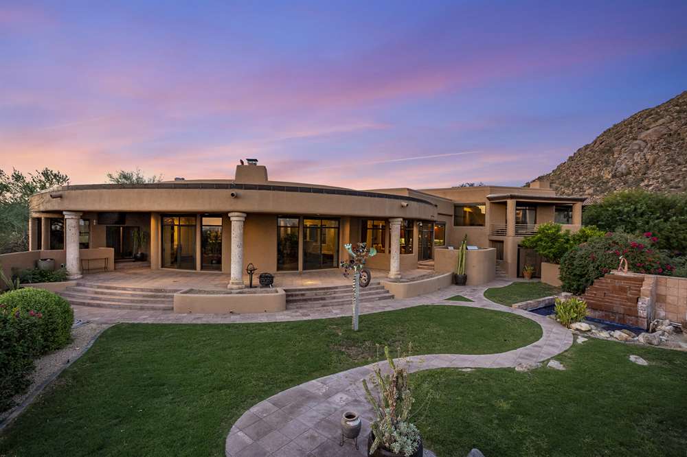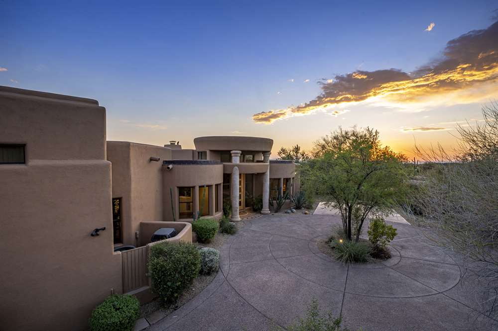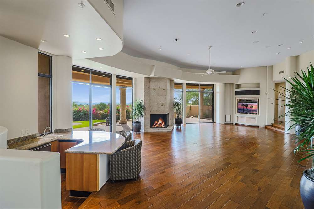 An exceptional view lot sets the backdrop for this soft contemporary desert dwelling located in the guard-gated community of Desert Highlands. Sitting high in elevation within the community, enjoy spectacular views of sparkling city lights and panoramic mountain views.
