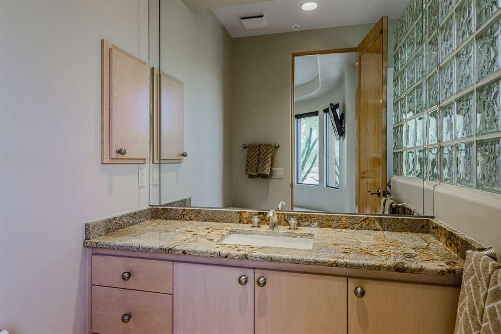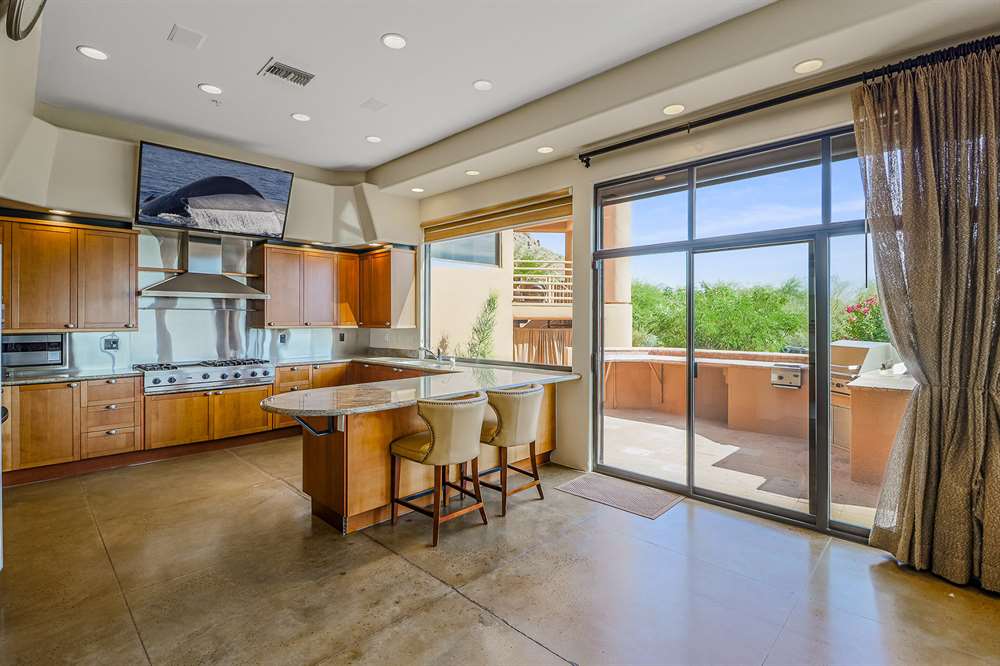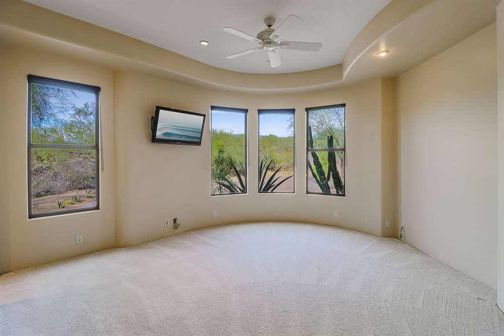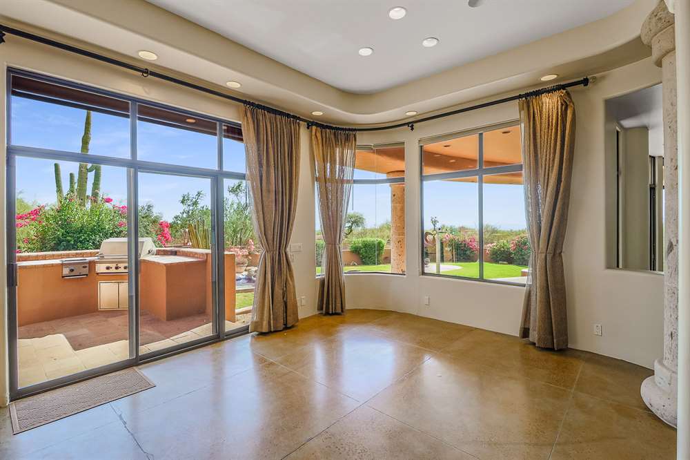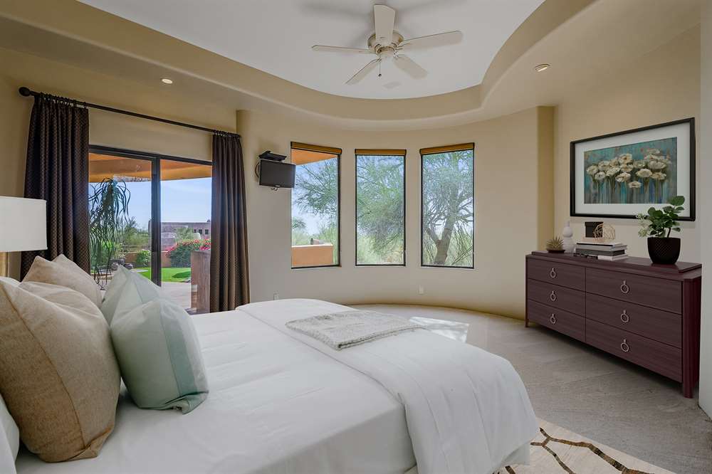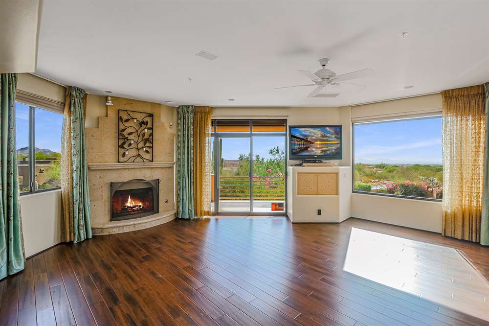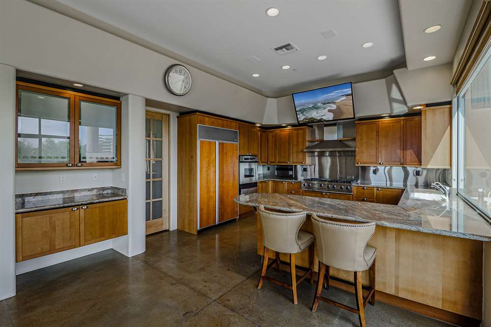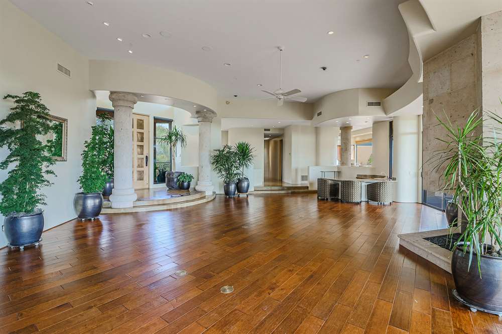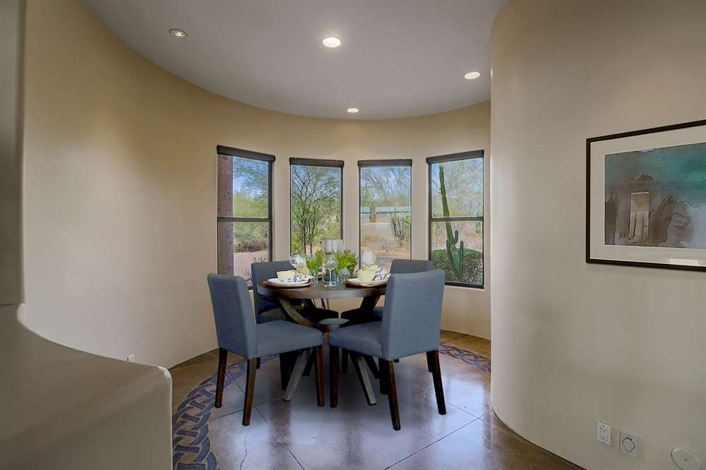 An exceptional view lot sets the backdrop for this soft contemporary desert dwelling located in the guard-gated community of Desert Highlands. Sitting high in elevation within the community, enjoy spectacular views of sparkling city lights and panoramic mountain views.